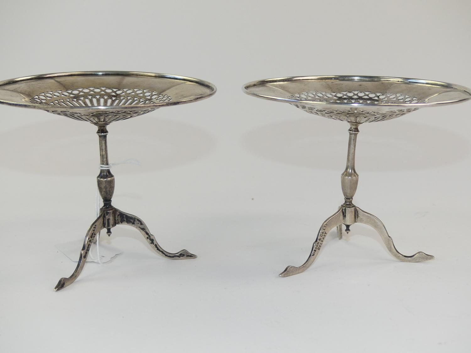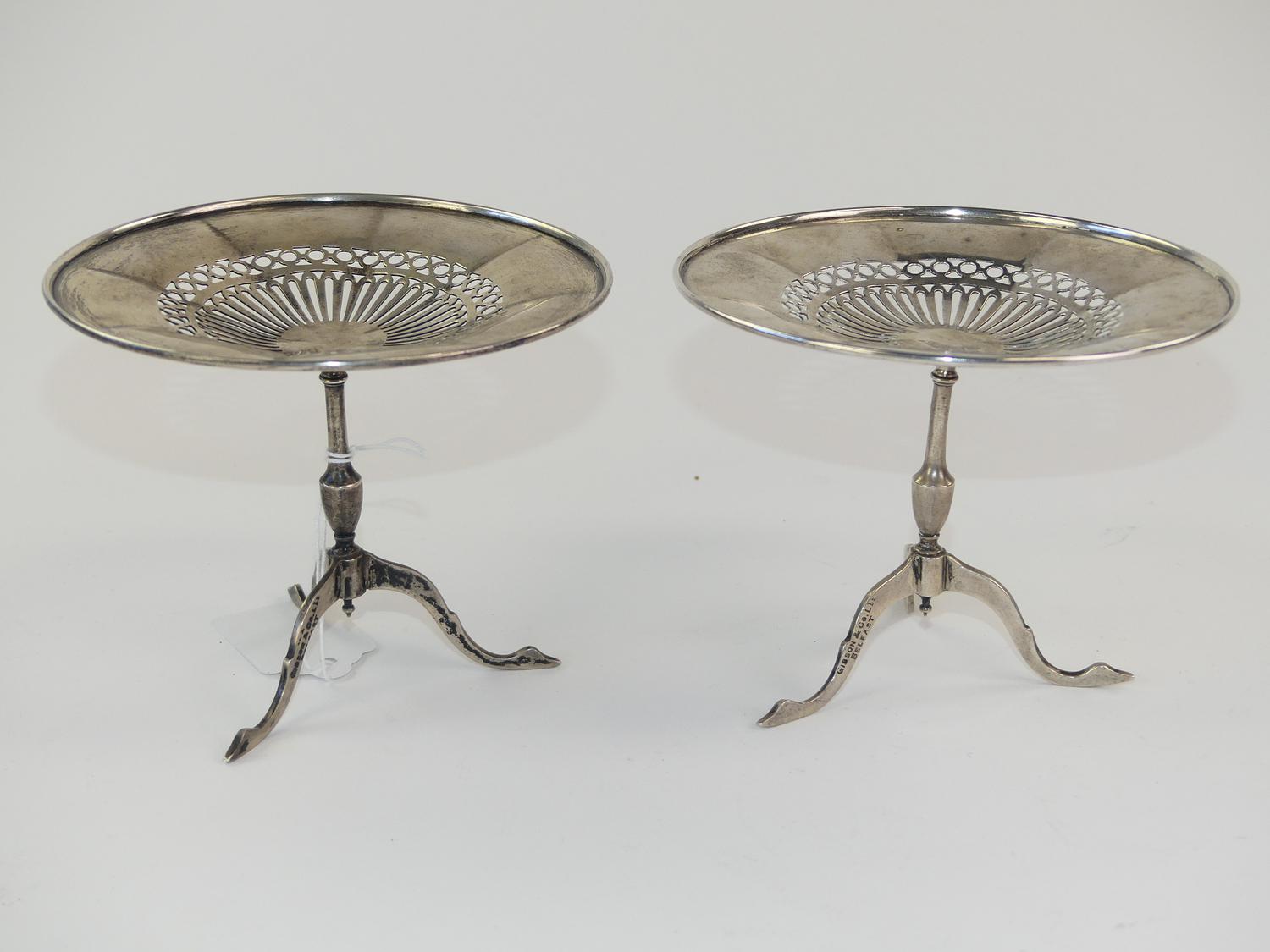 pair of irish silver miniature table, gibson r co. ltd. belfast, 190 grams
