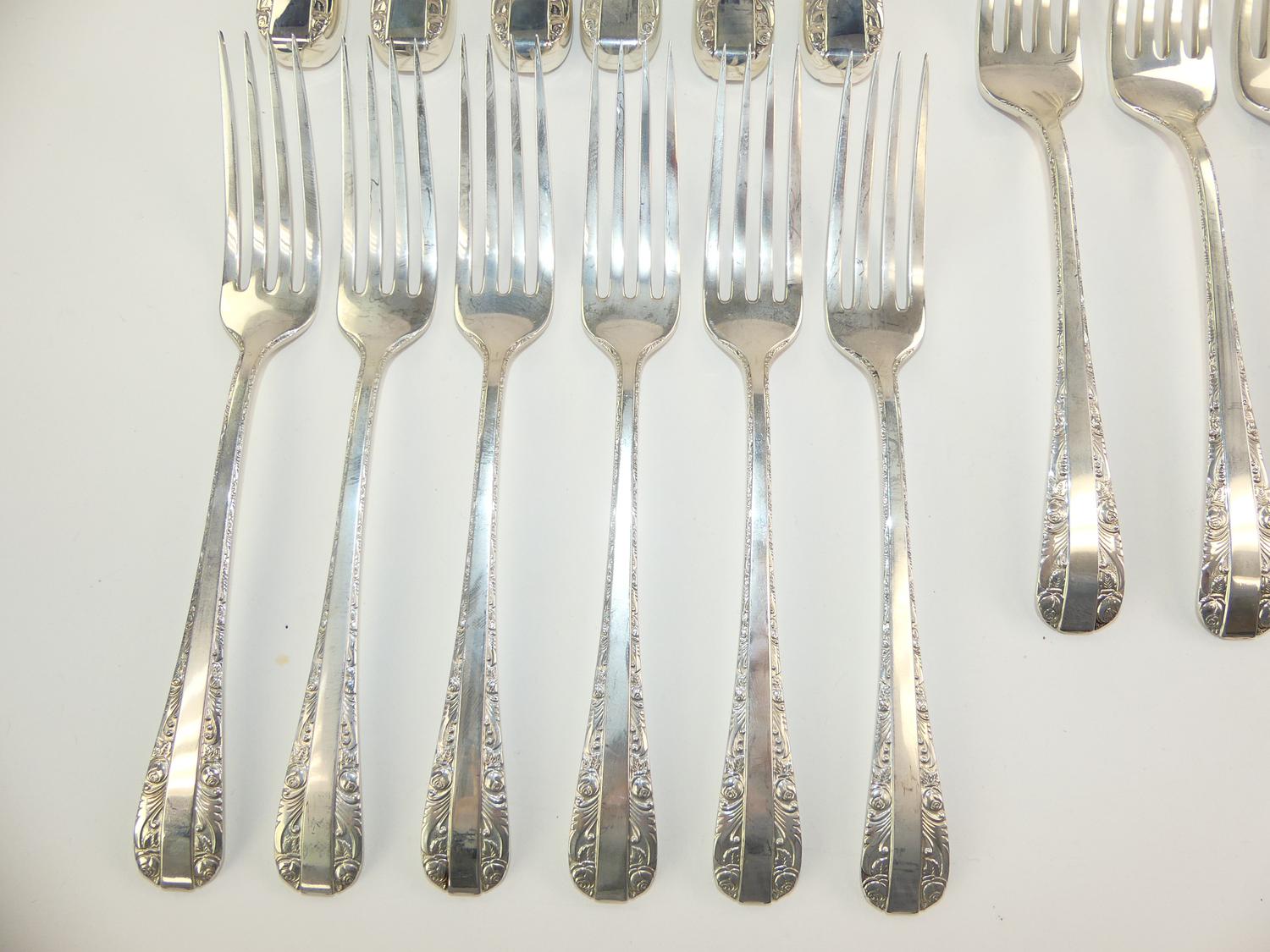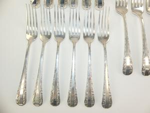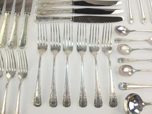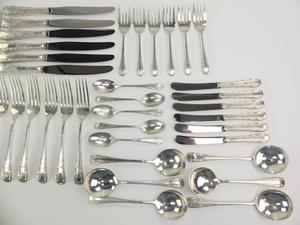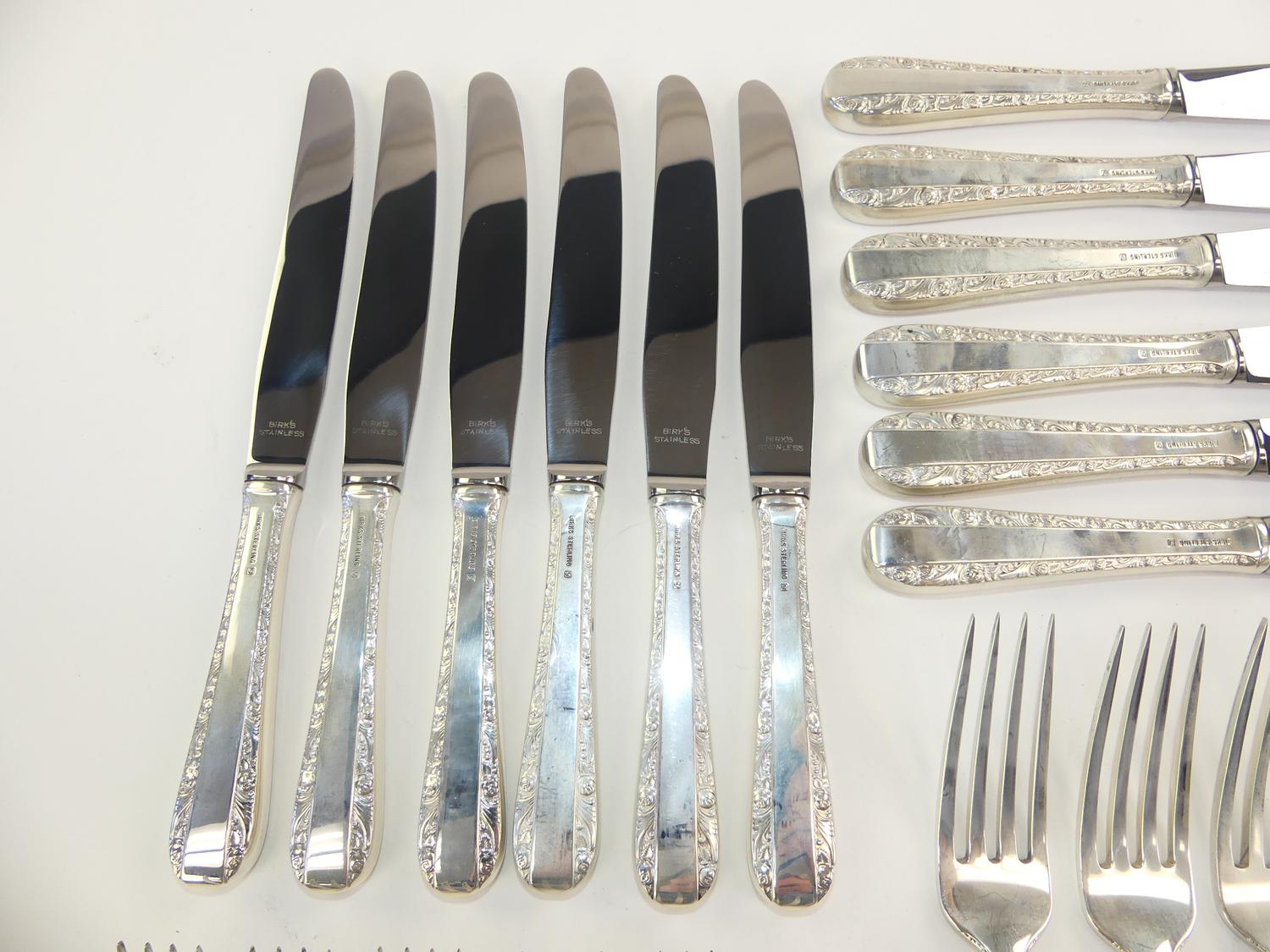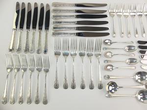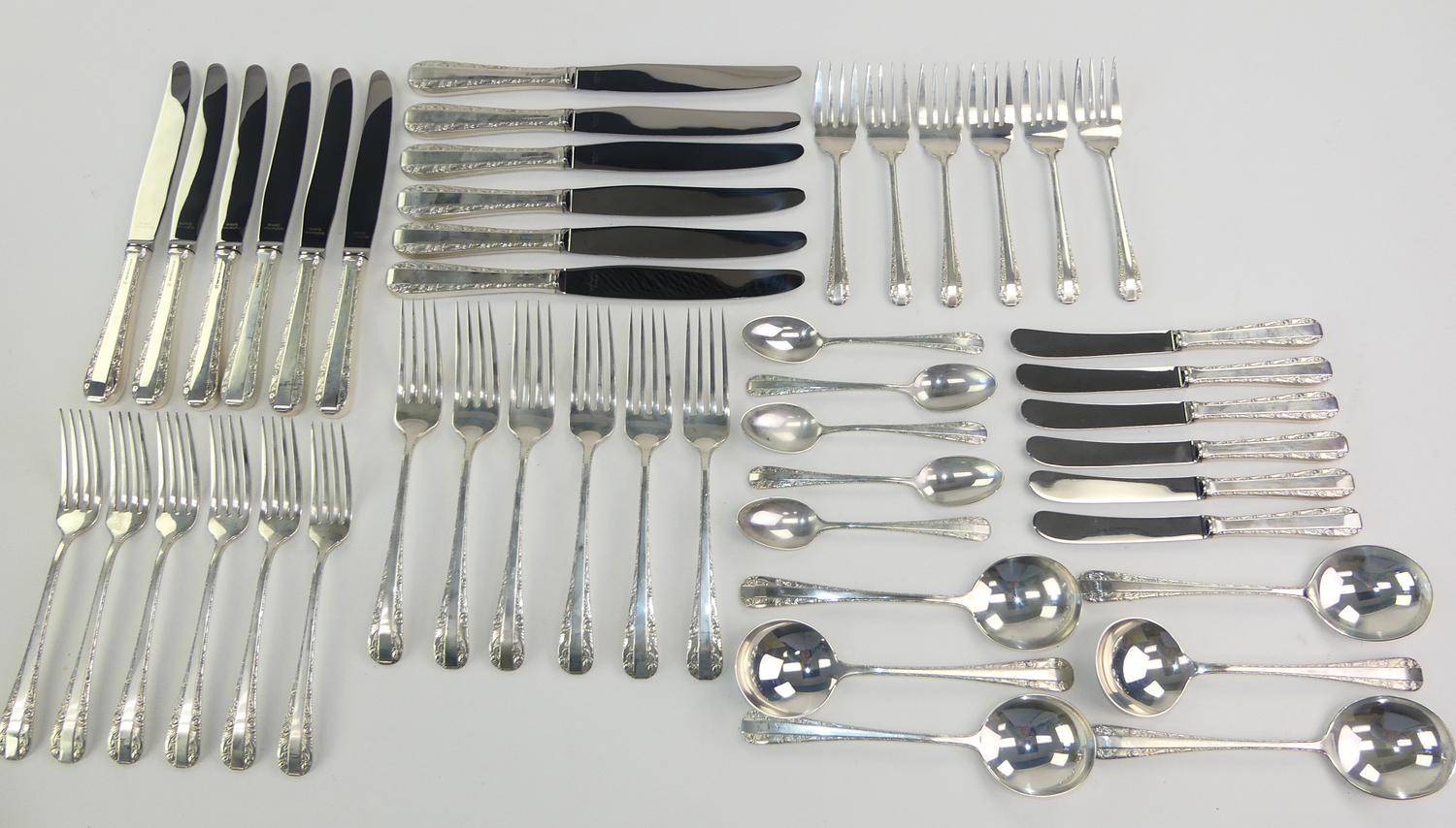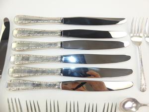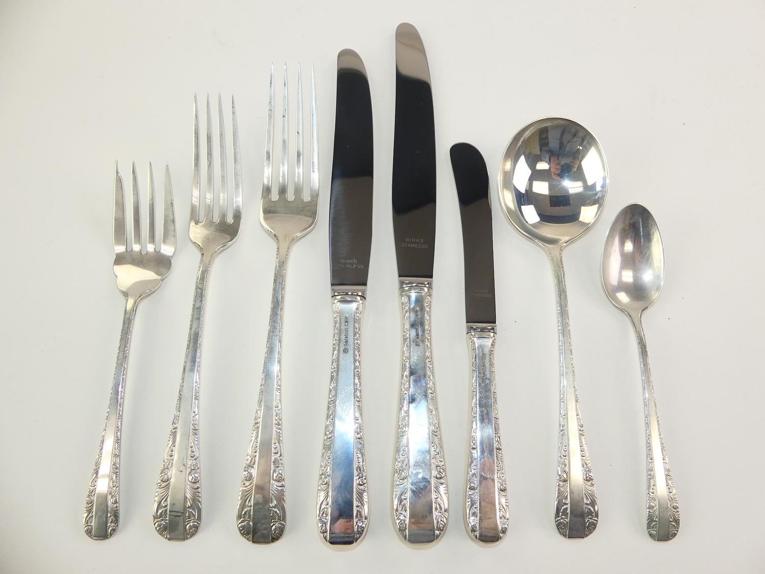 47 pcs birks sterling silver rose bower pattern flatware, 1187 weighable grams plus 6 dinner knives, six luncheon knives and six butter knives