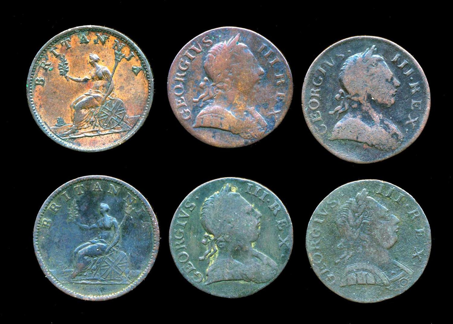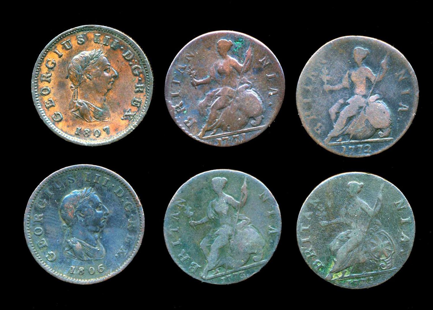 4 x KM# 601 1771 9.04 gms. F, 1772 10.04 gms. VG, 1773 9.56 gms. VG and 1775 8.6 gms. F along with 2 x KM# 662 1806 9.24 gms. 3 berries in F and 1807 9.62 gms. VF+