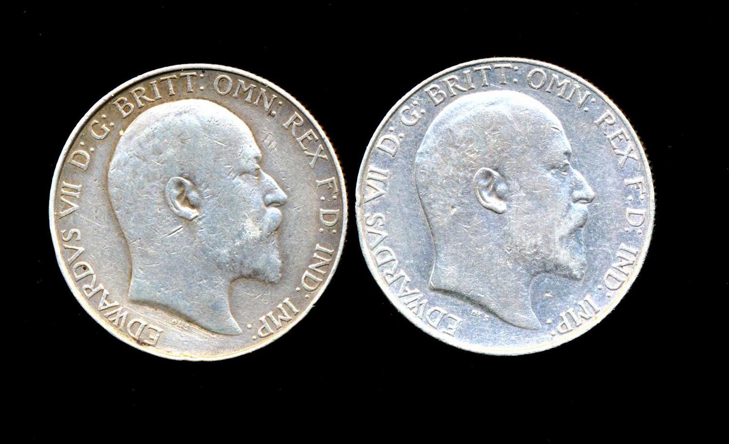great britain florin 1905-1910. a pair of edwad vii silver coiins fine-very fine