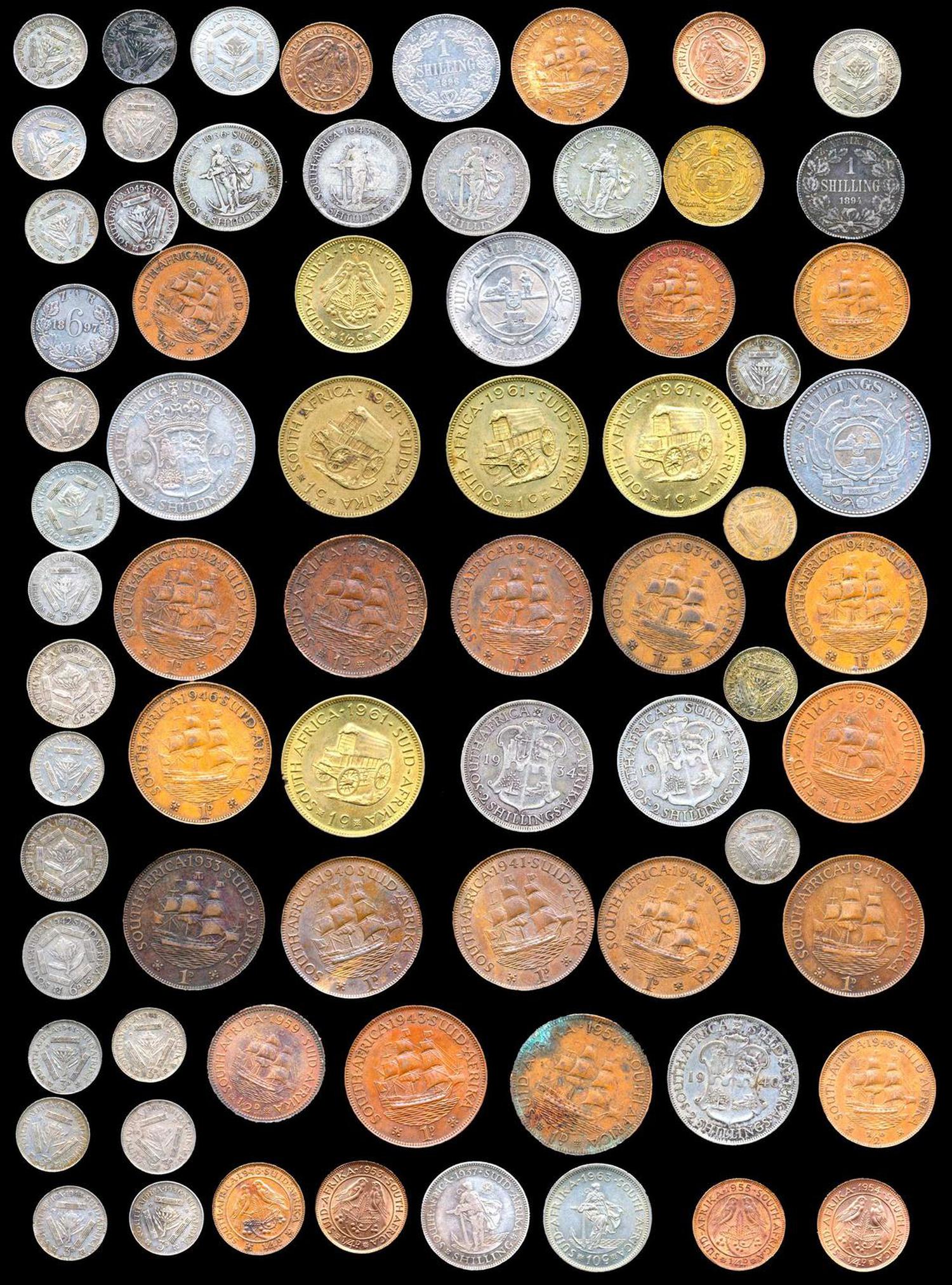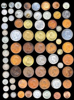 72 coins : 1 pond medal, 6 farthings, 7 halfpennies, 18 pennies, 18 threepence, 7 sixpence, 8 shilling, 4 florin, 2 halfcrown / with 164 grams of silver / Total Weight: 395 grams