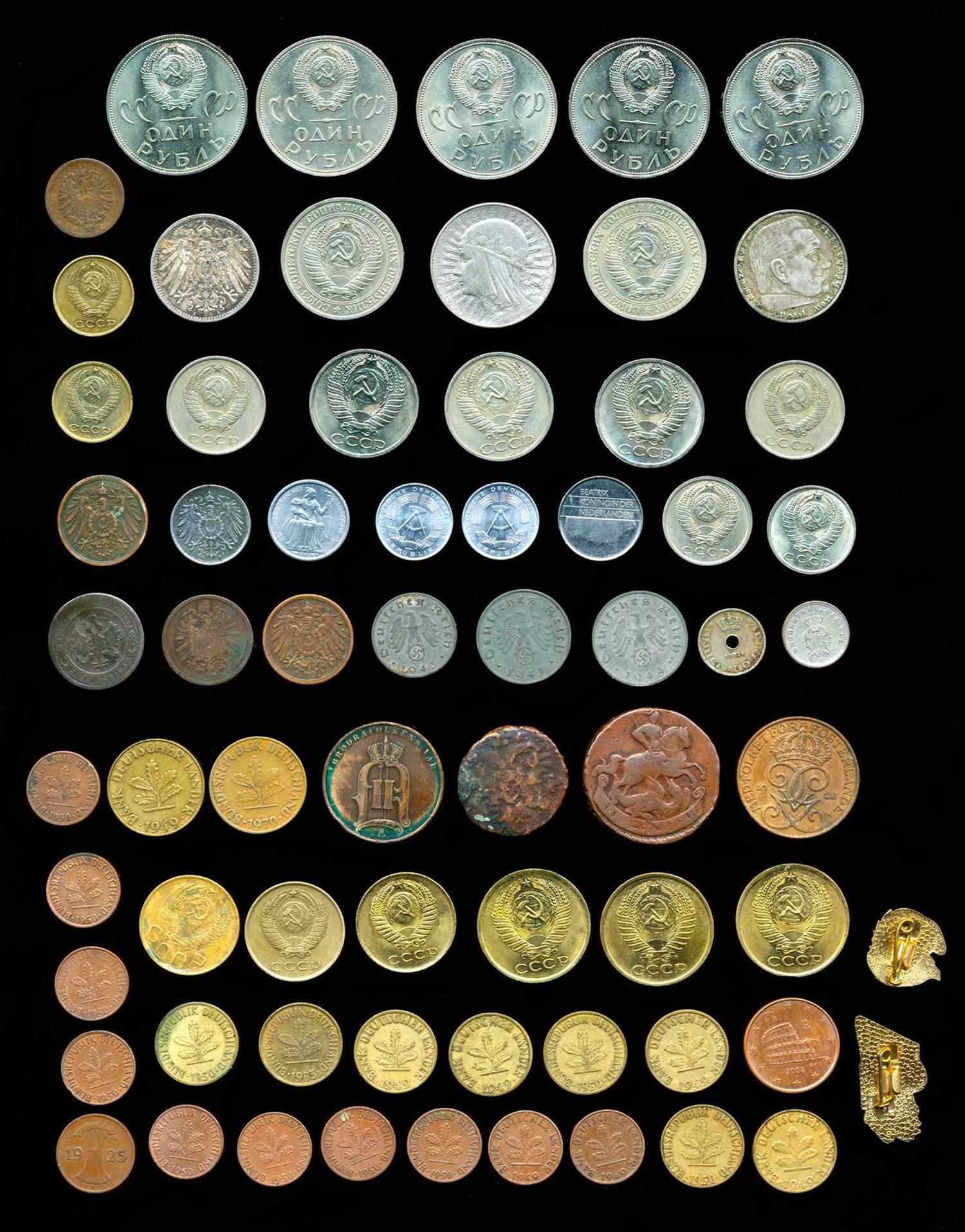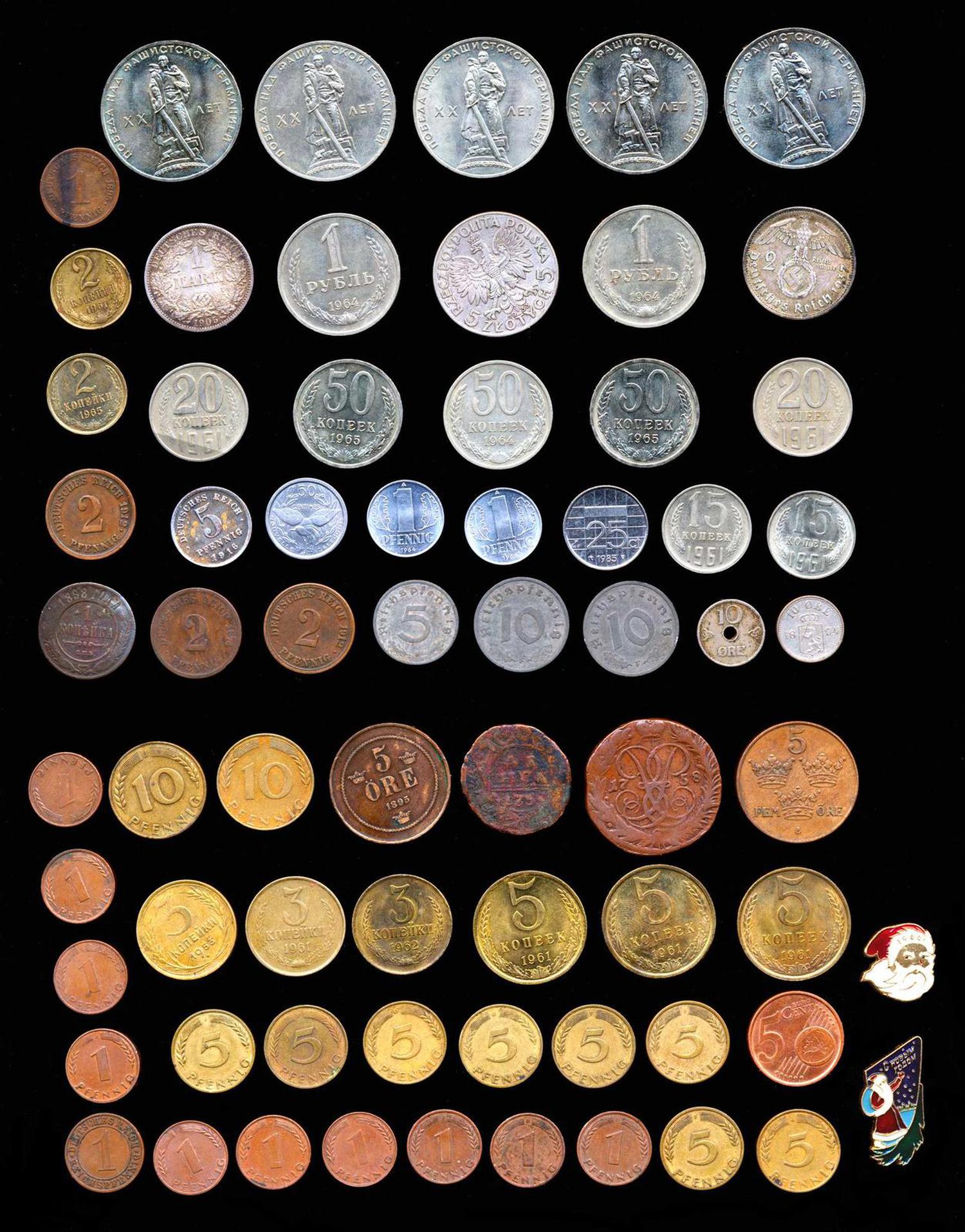 25.77 gms Silver Germany 33 coins , Netherlands 1, Sweden 3, Poland 1, Russia 26, Italy 2008 5 Cents EF, Norway: 1924 10 Ore F and 2 pins.