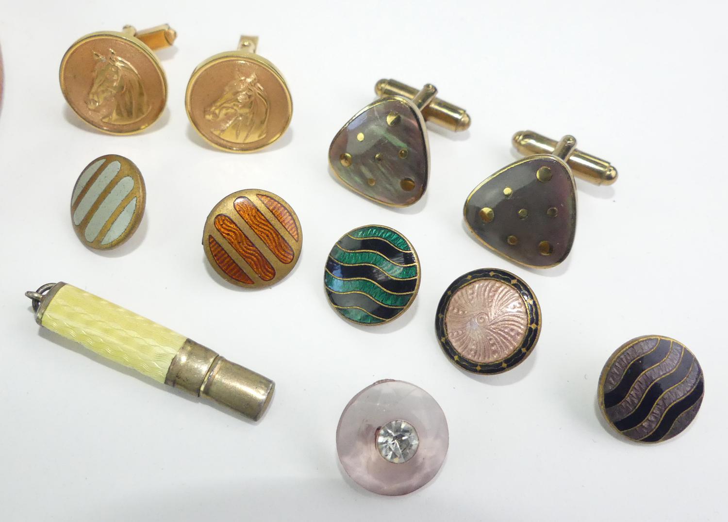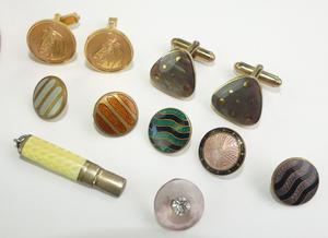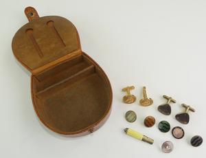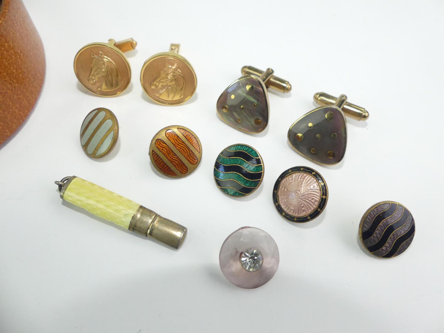 abalone cufflinks, horse cufflinks, enamel buttons, in leather case