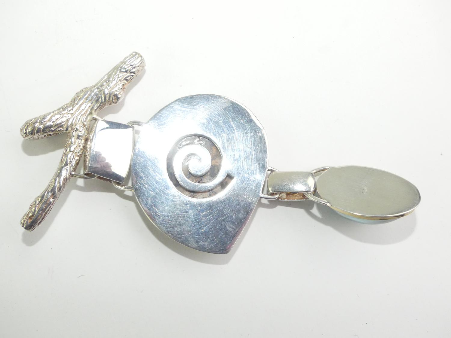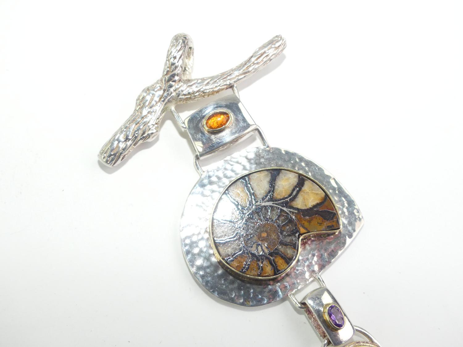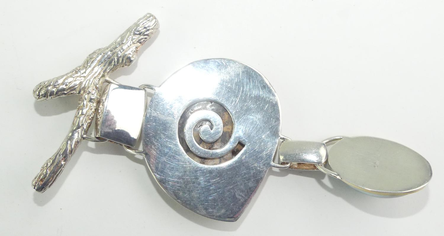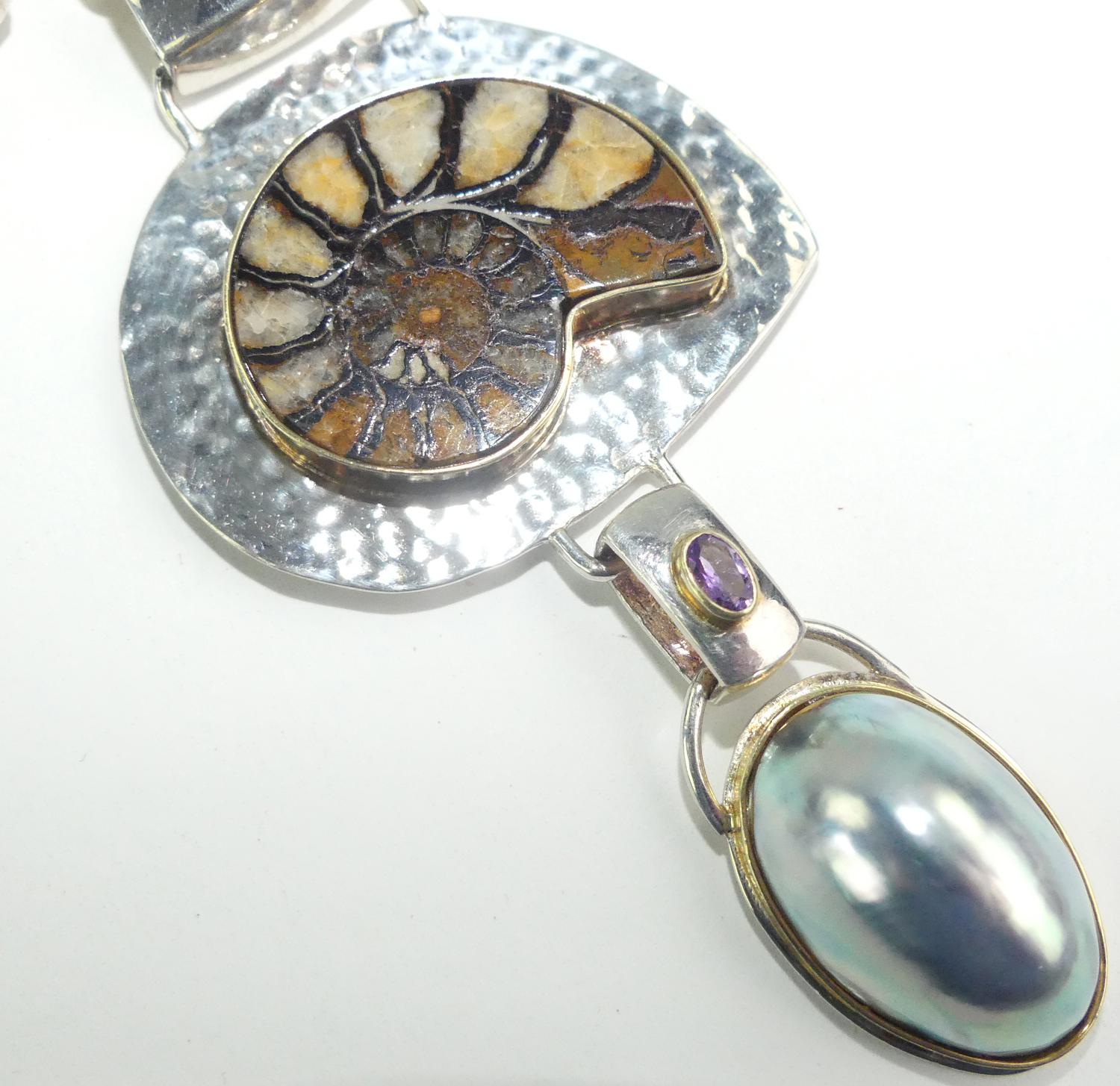 artist signed 30ma sterling silver ammolite, pearl pendant, 4 1/4" in height
