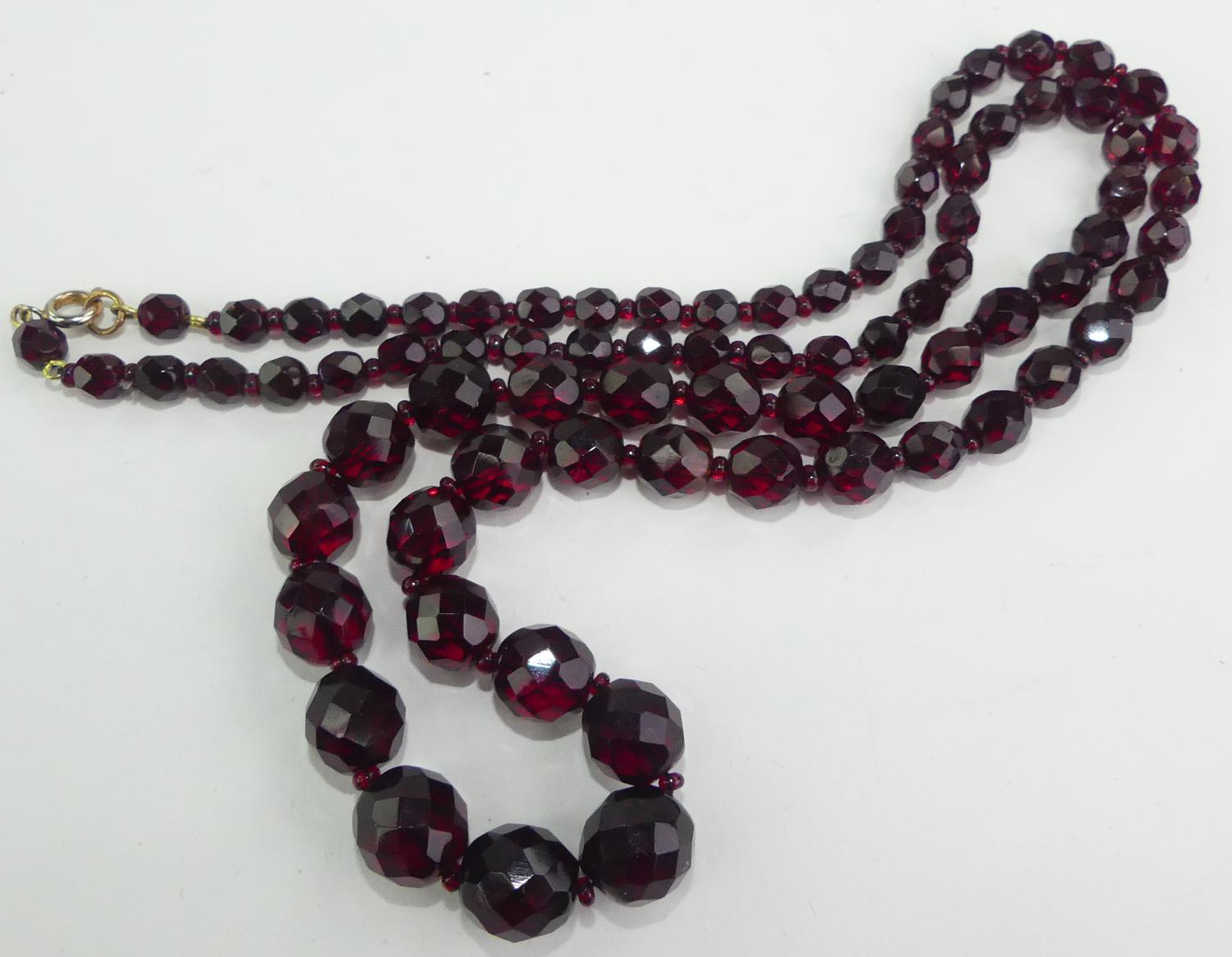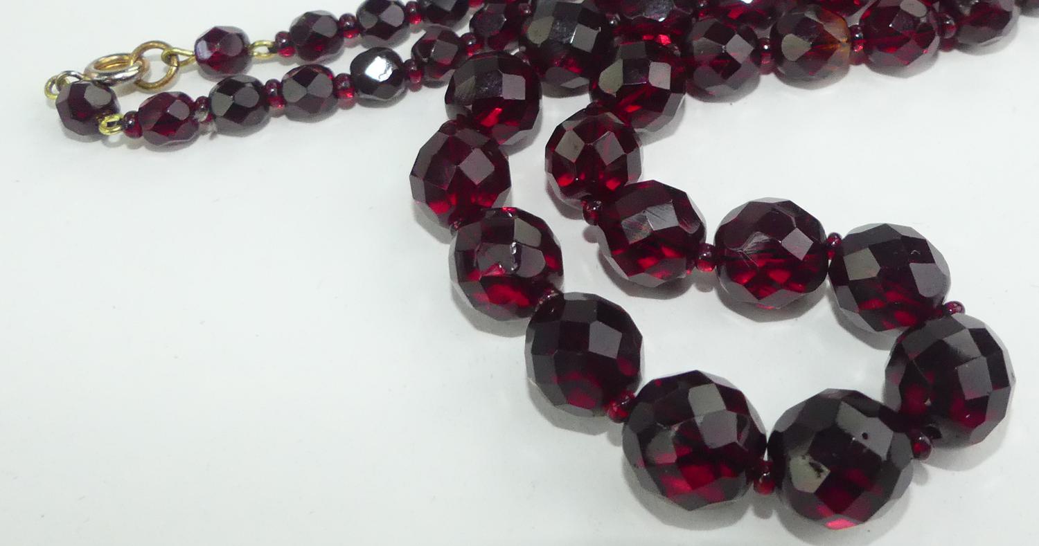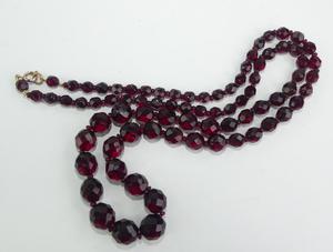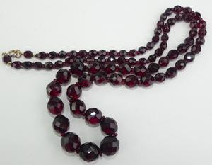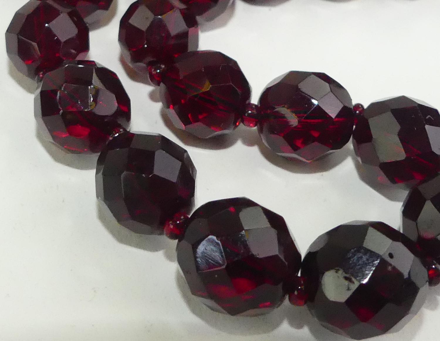 vintage red facetted crystal necklace, length 28"