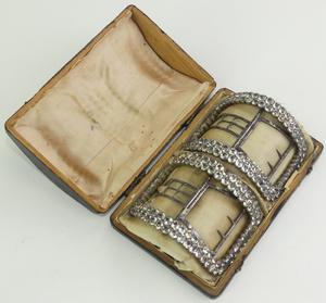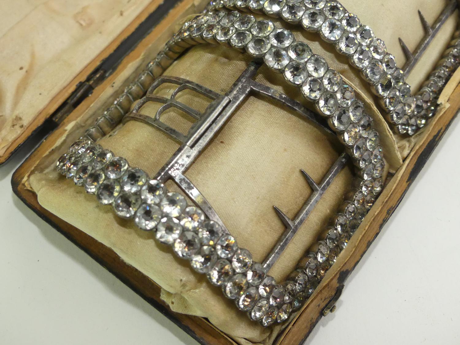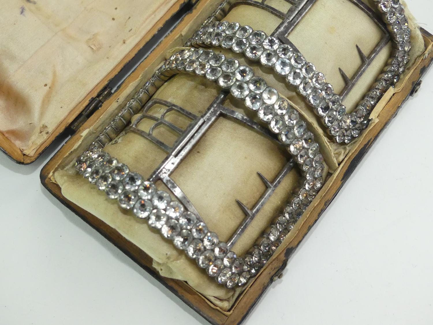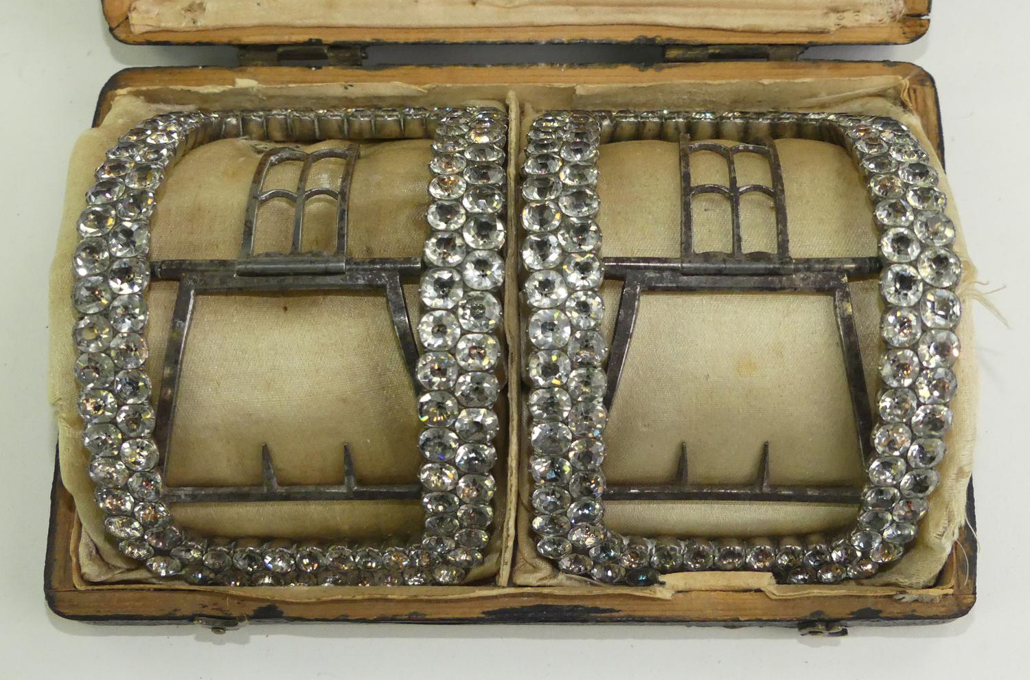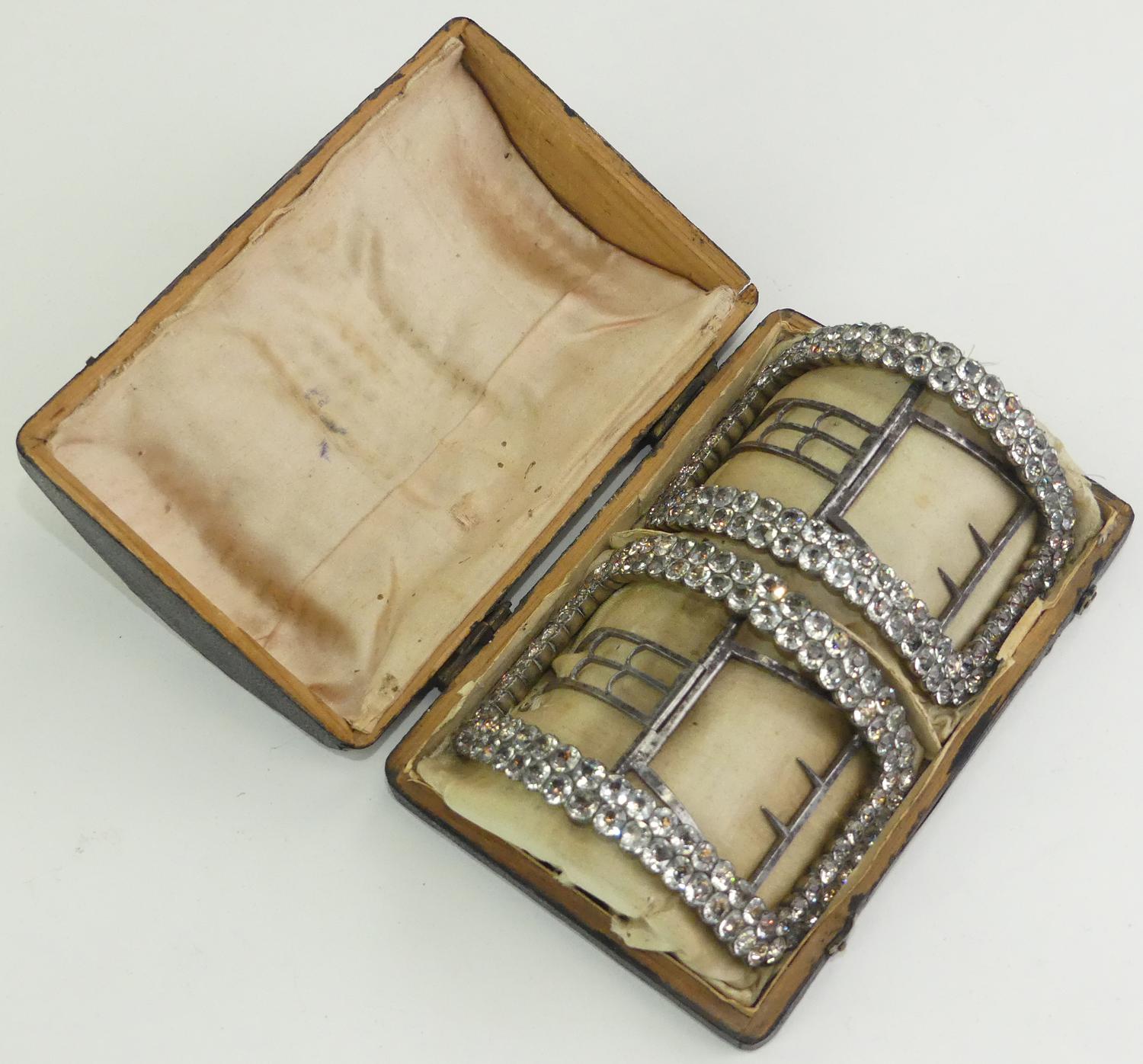 georgian paste silver shoe buckles in original box, 18th century