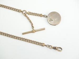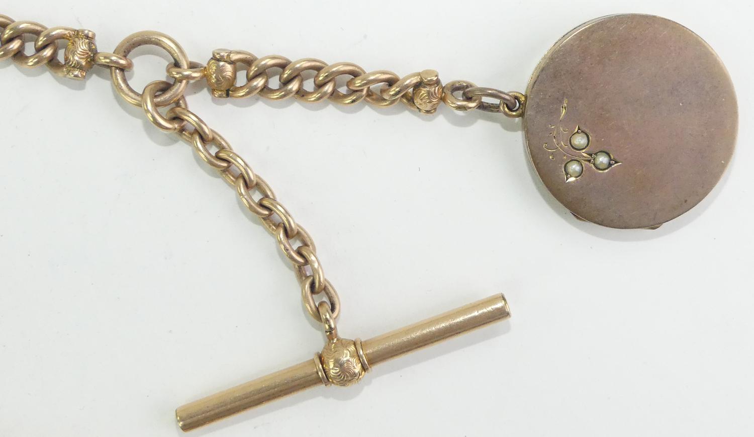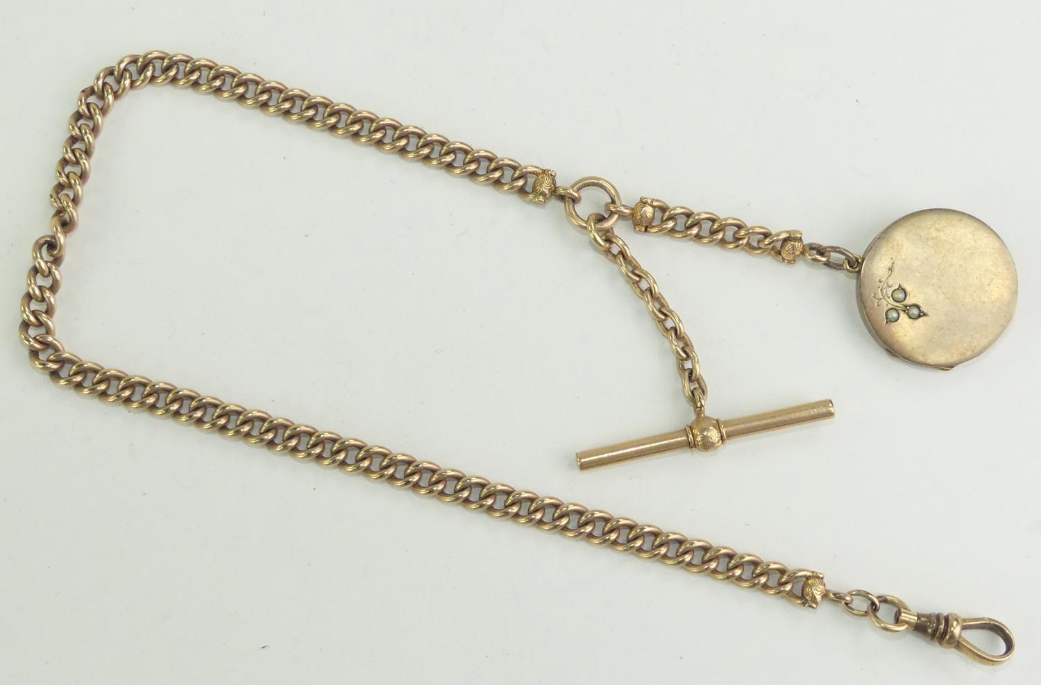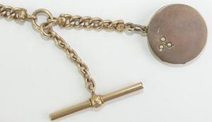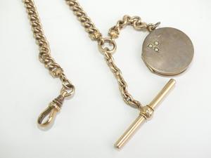 victorian gold filled watch chain with pendant locket fob, length 14 1/2"