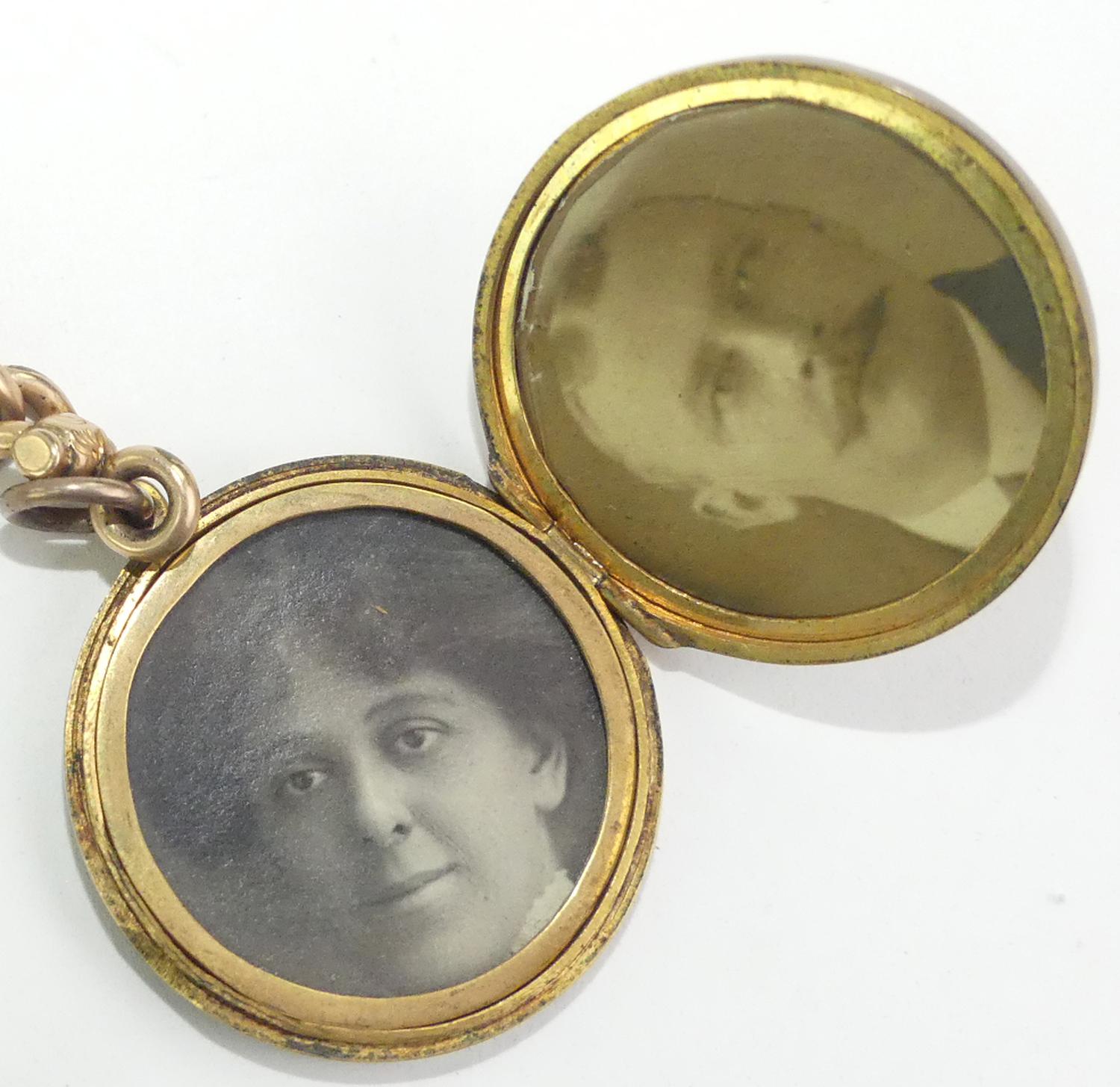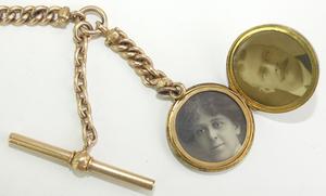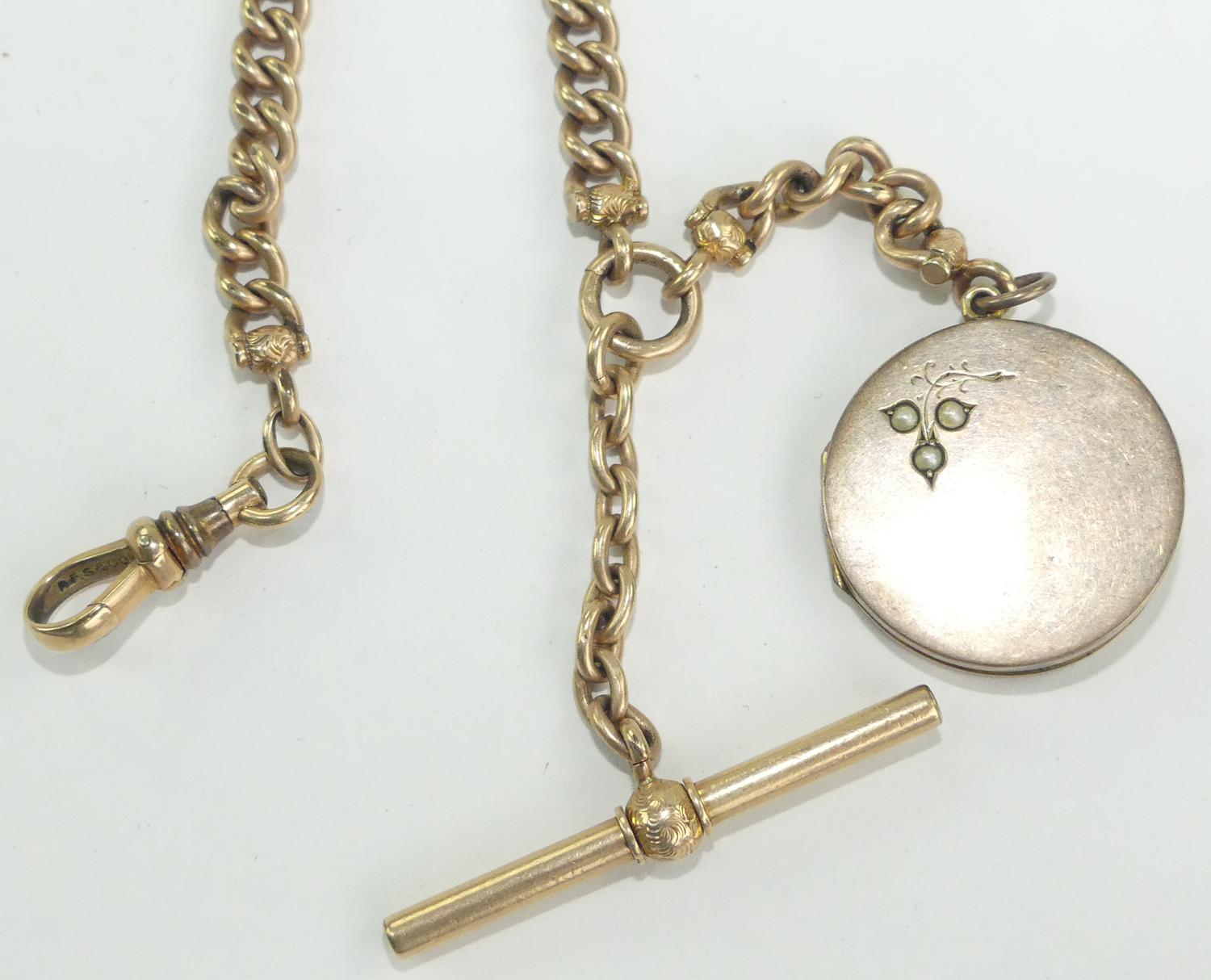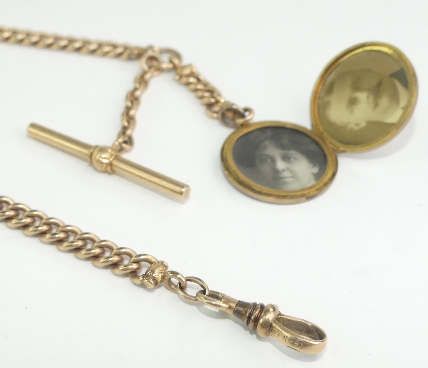 victorian gold filled watch chain with pendant locket fob, length 14 1/2"