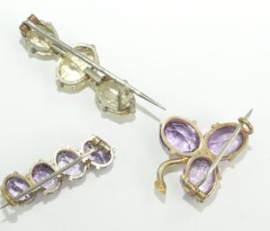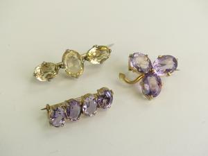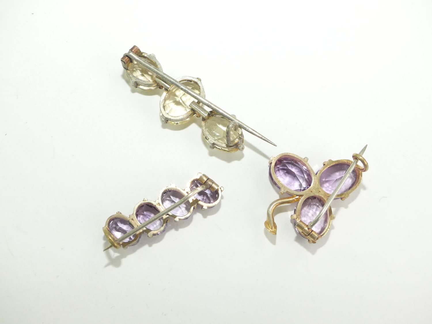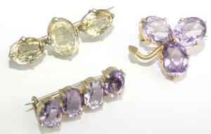 early victorian facetted amethyst and citrine bar brooches, circa 1800s, silver gilt