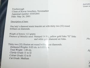 14k diamond tennis bracelet, 6.3grams, 1.00cts, with appraisal