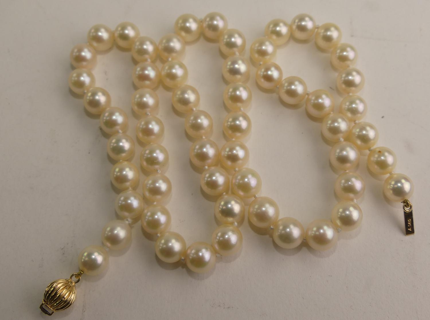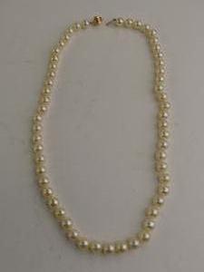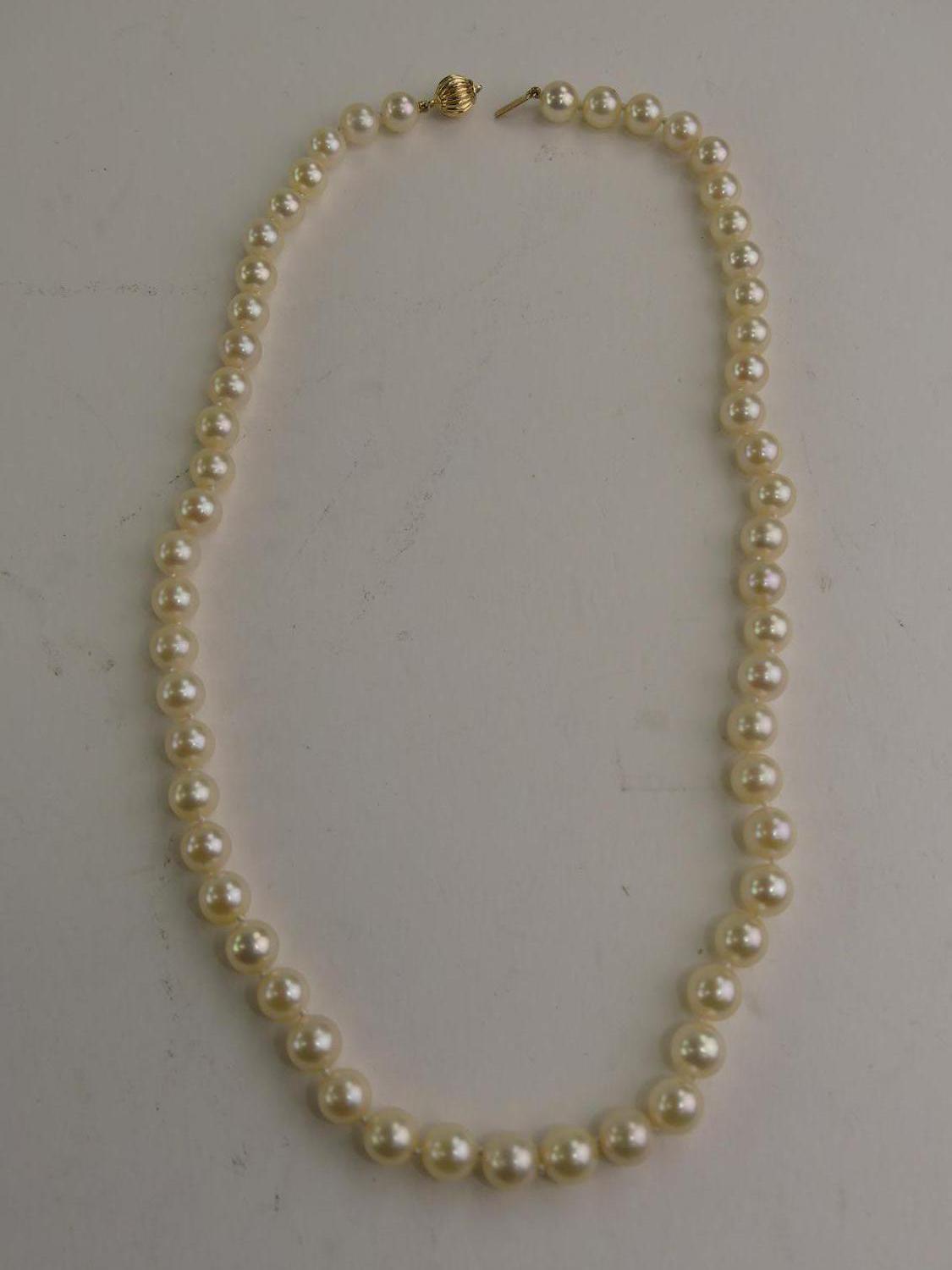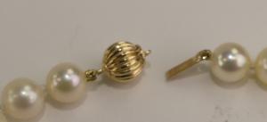 14k ball clasp, 7 - 7.4mm pearl necklace, 18", push clasp broken