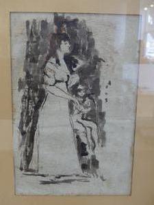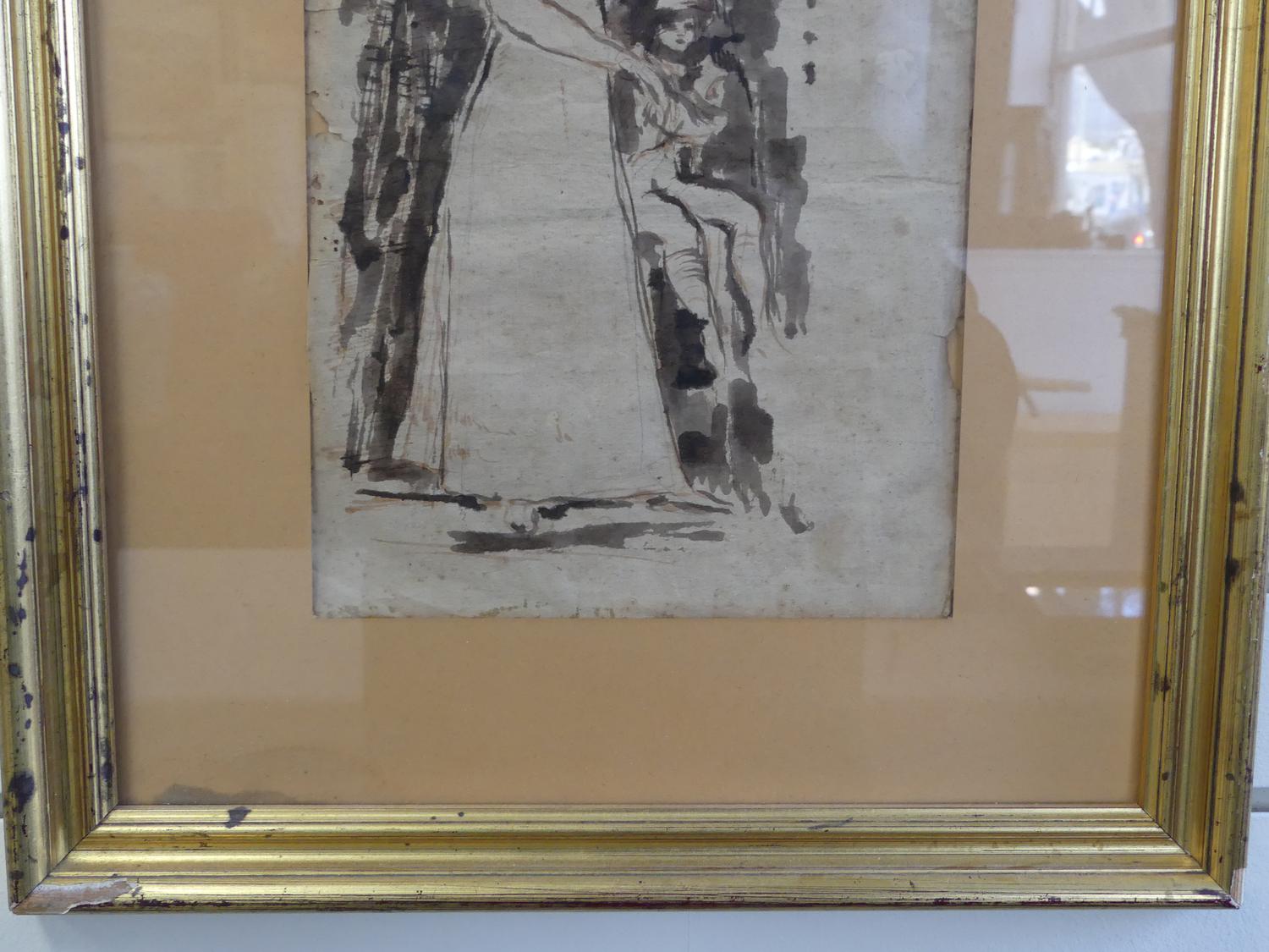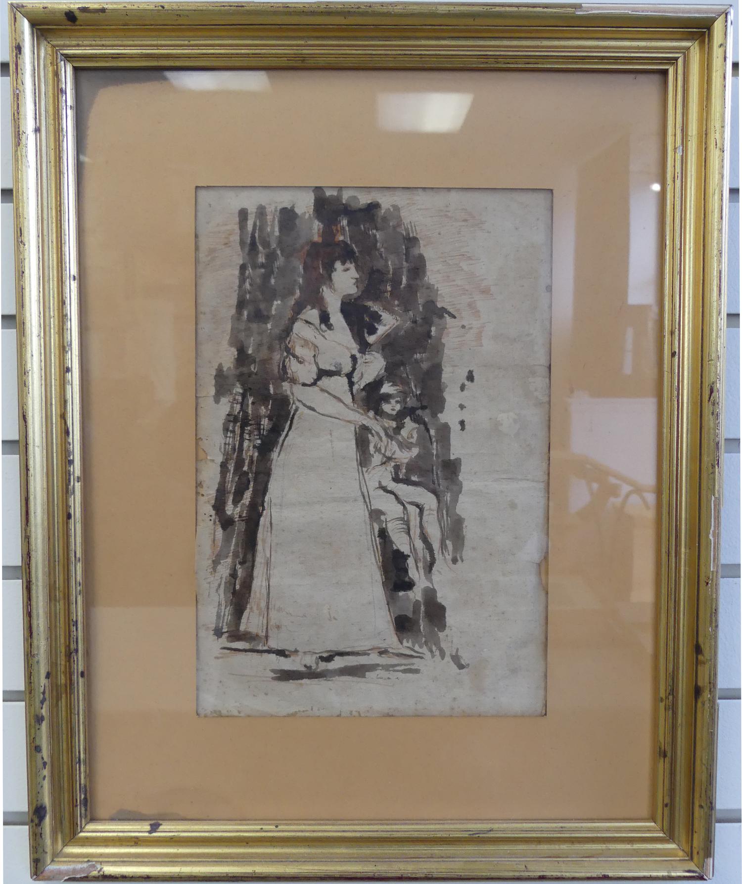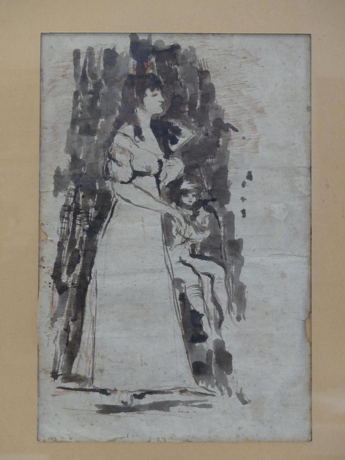18th or early 19th century continental school ink wash and red chalk on paper, 12" x 8", "figural study of a woman and child"