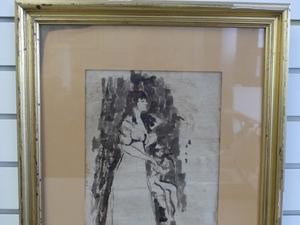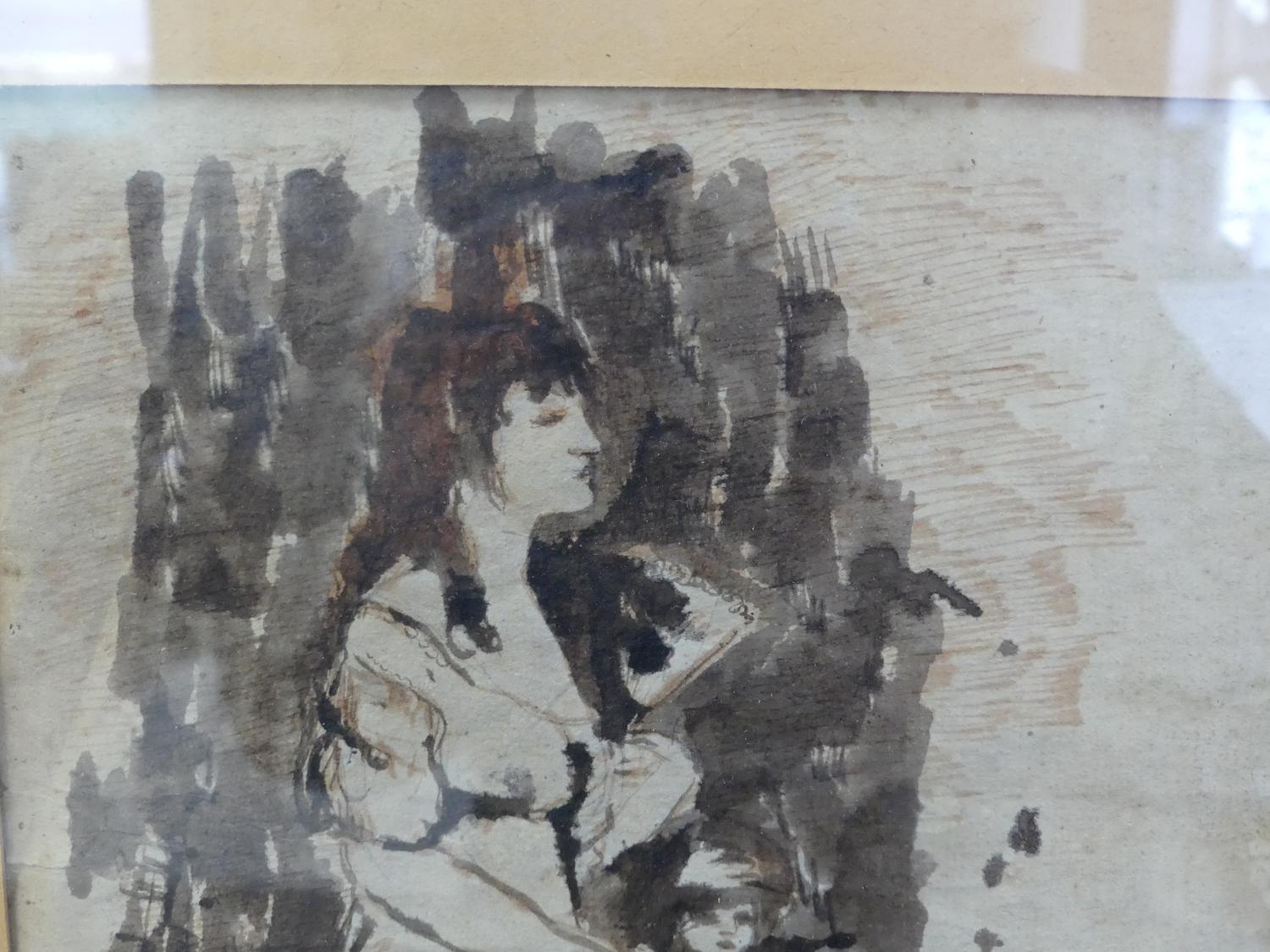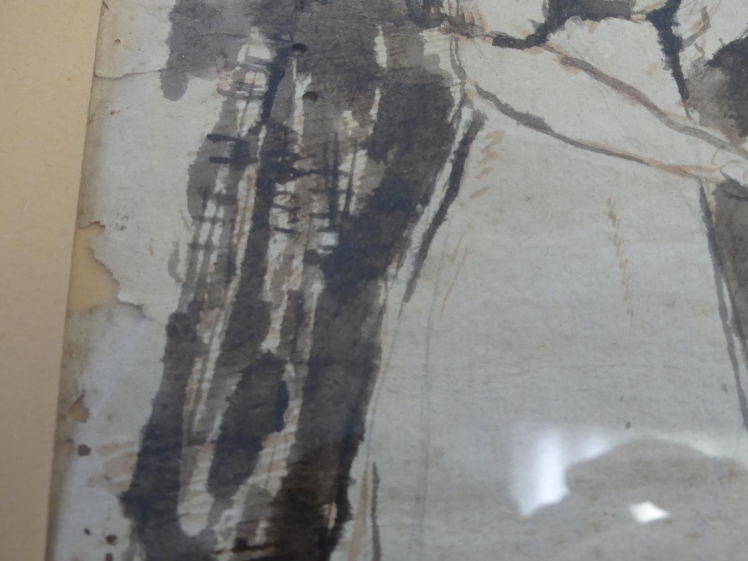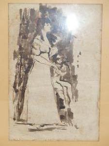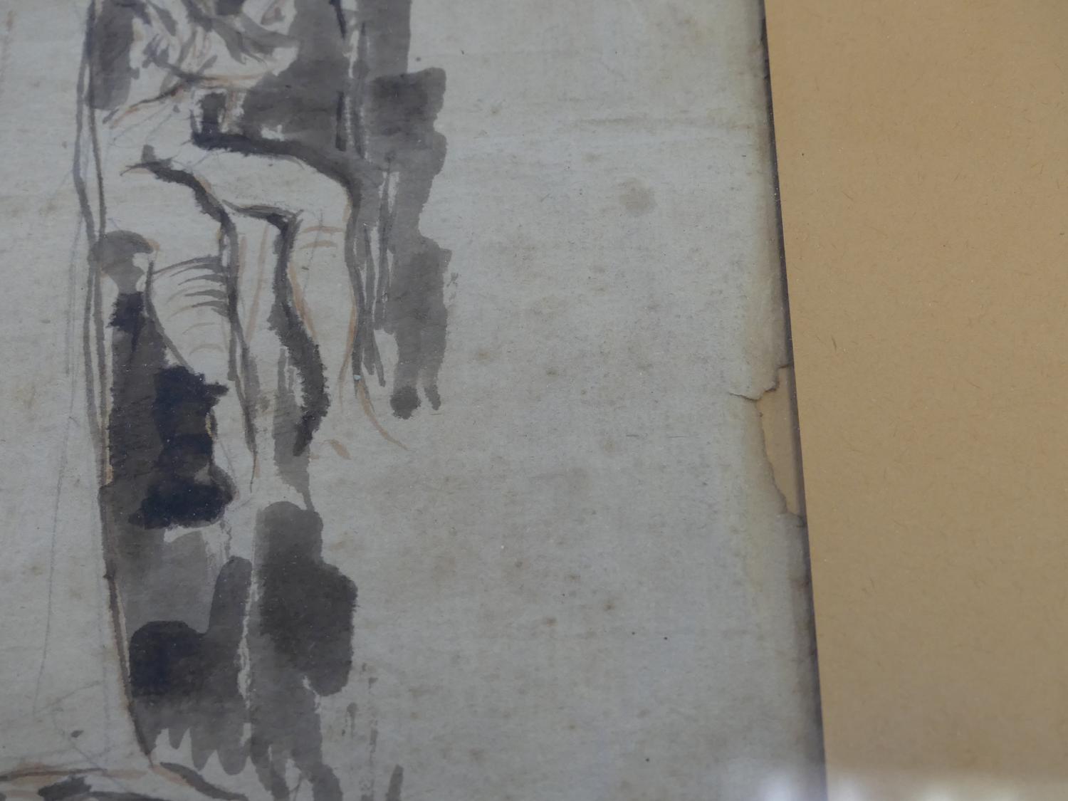 18th or early 19th century continental school ink wash and red chalk on paper, 12" x 8", "figural study of a woman and child"
