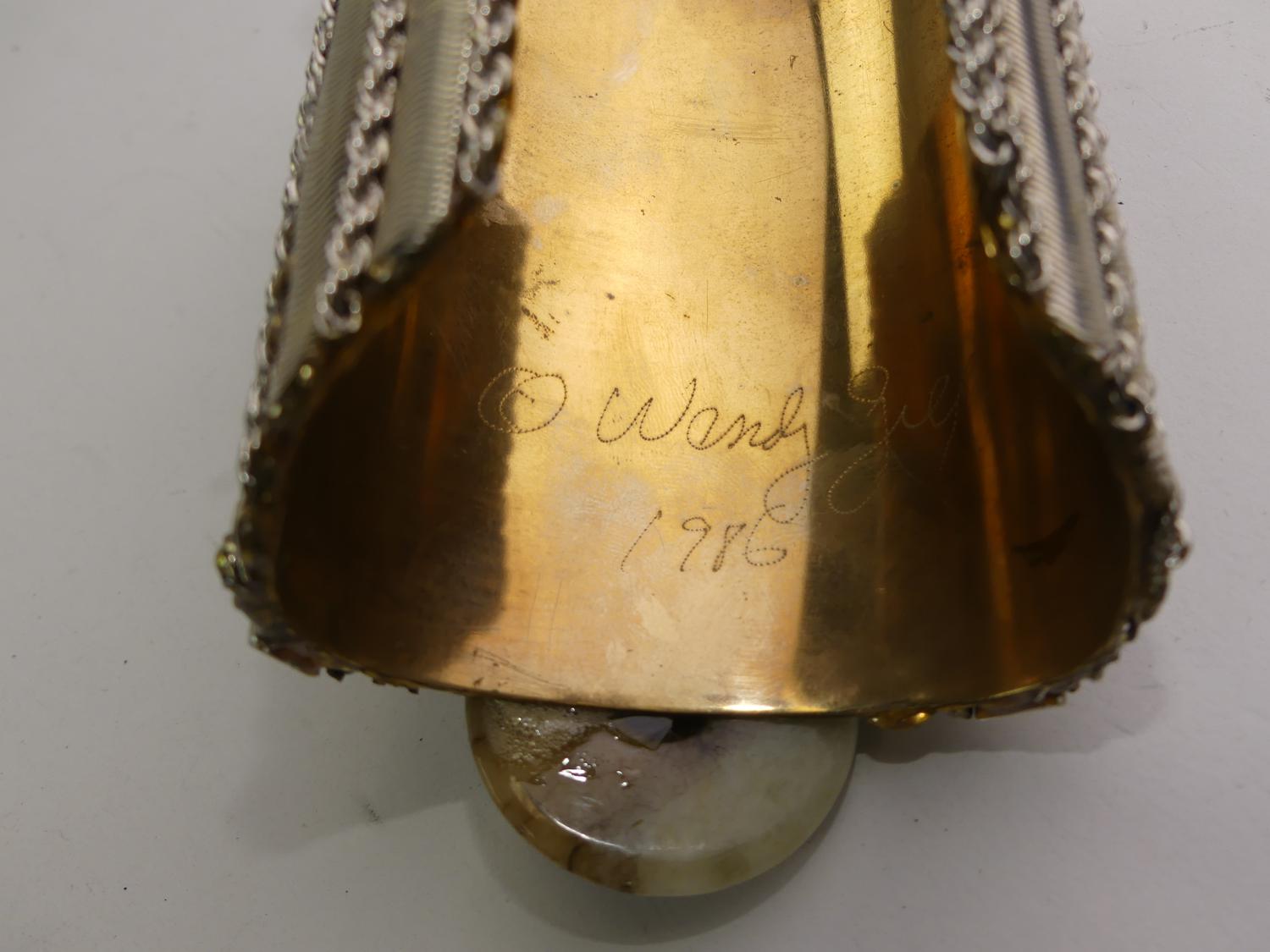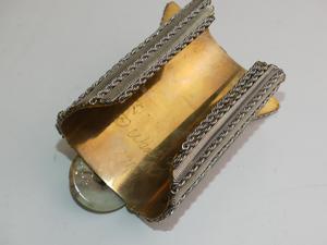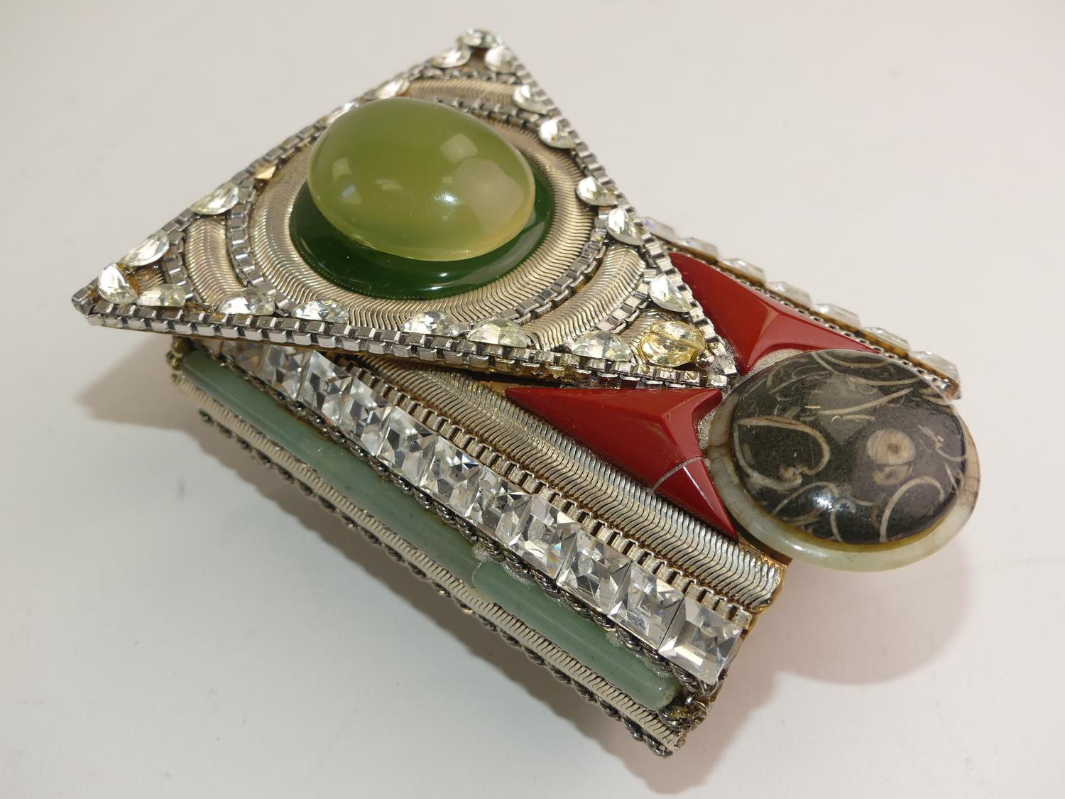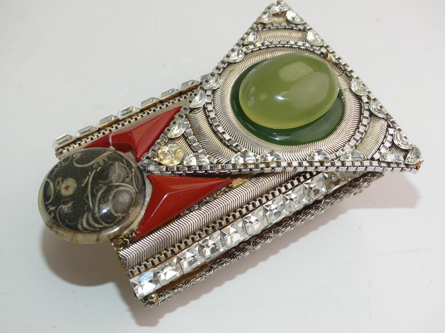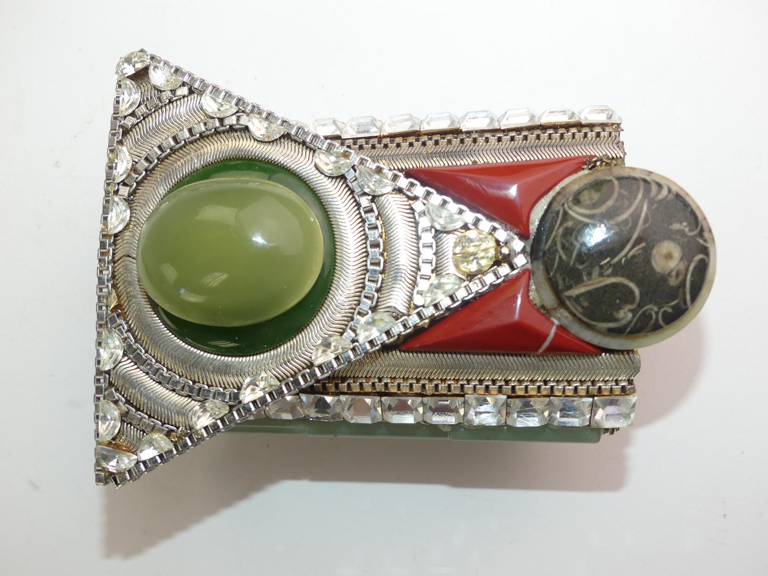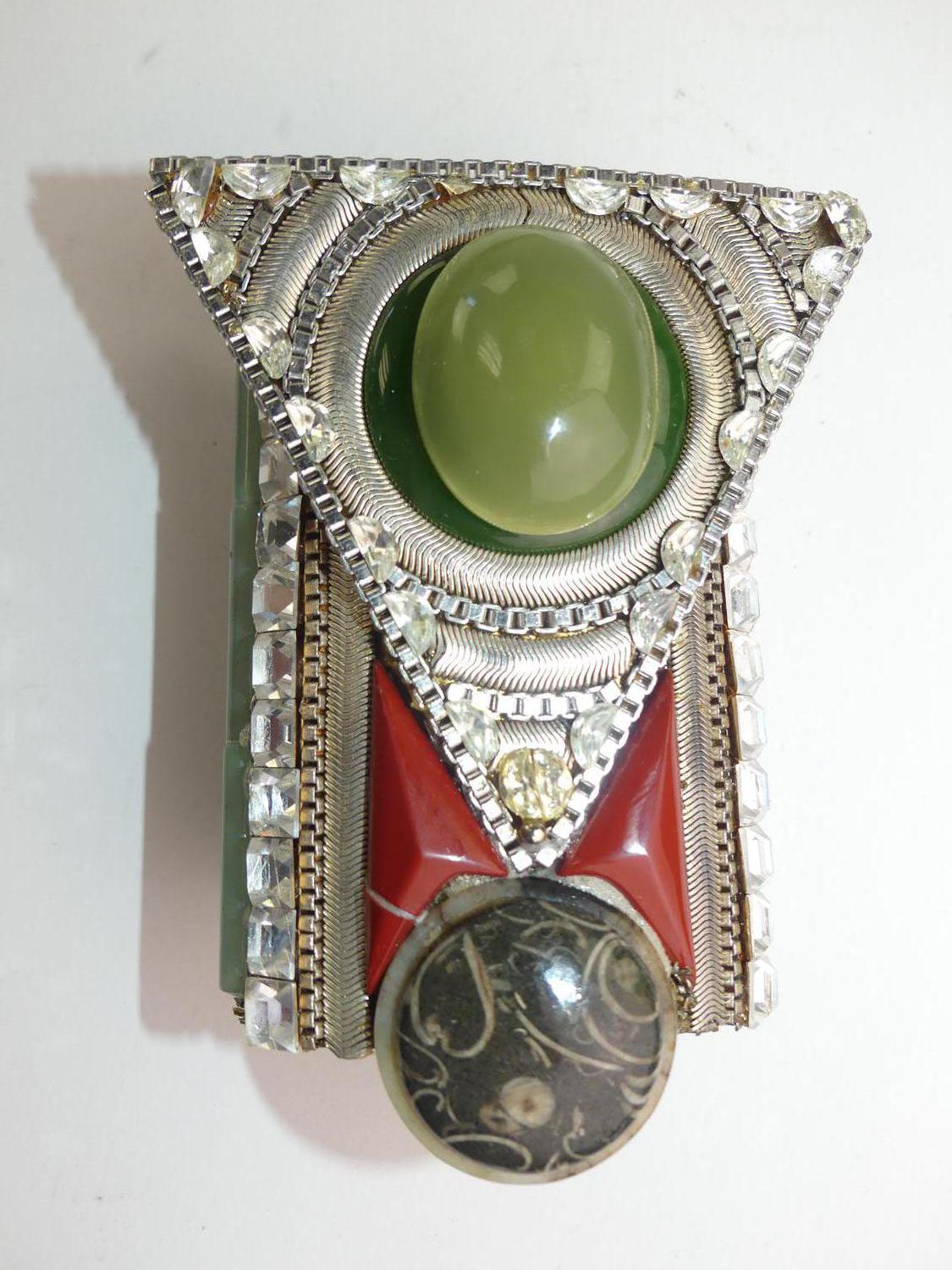 wendy gell jade agate, rhinestone signed cuff bracelet, 1980s