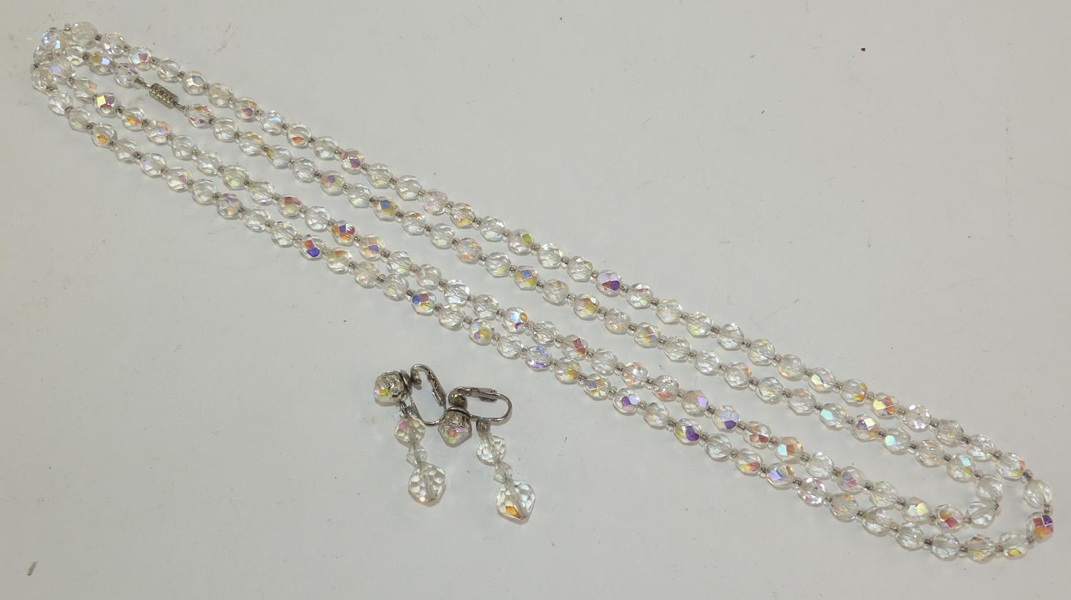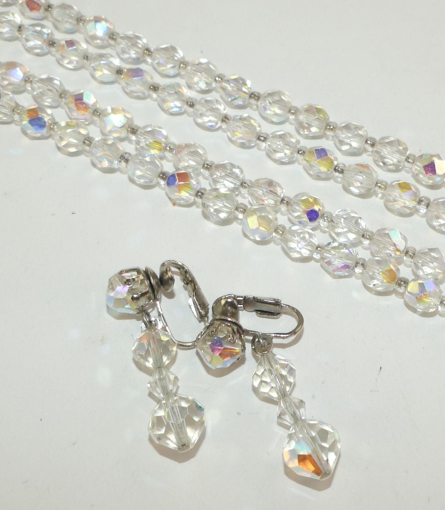 vintage crystal necklace and earrings, 24"