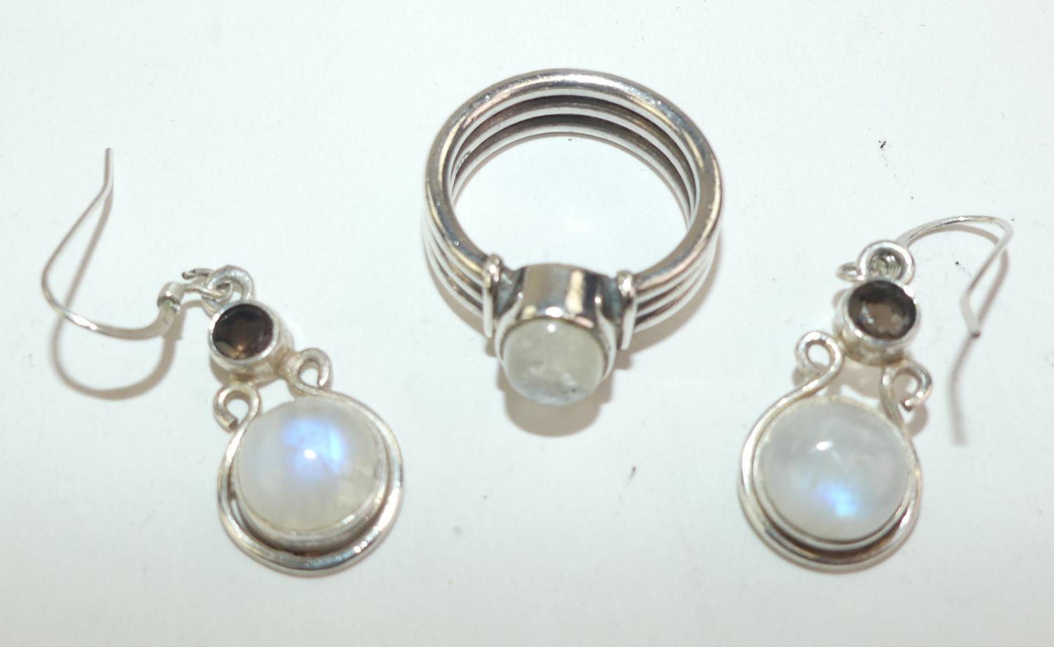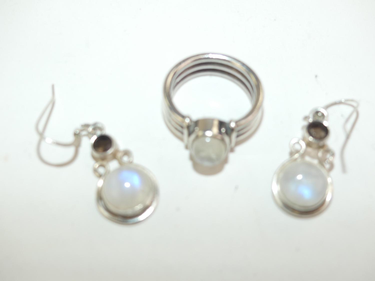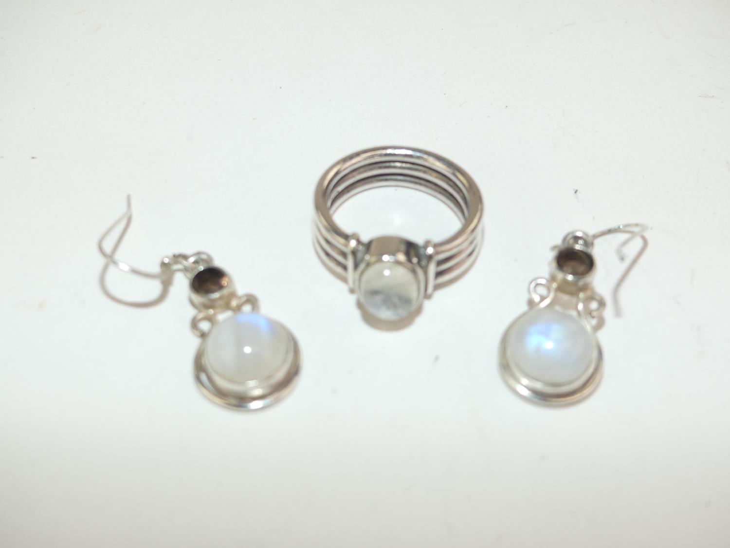 sterling silver moonstone earrings and ring