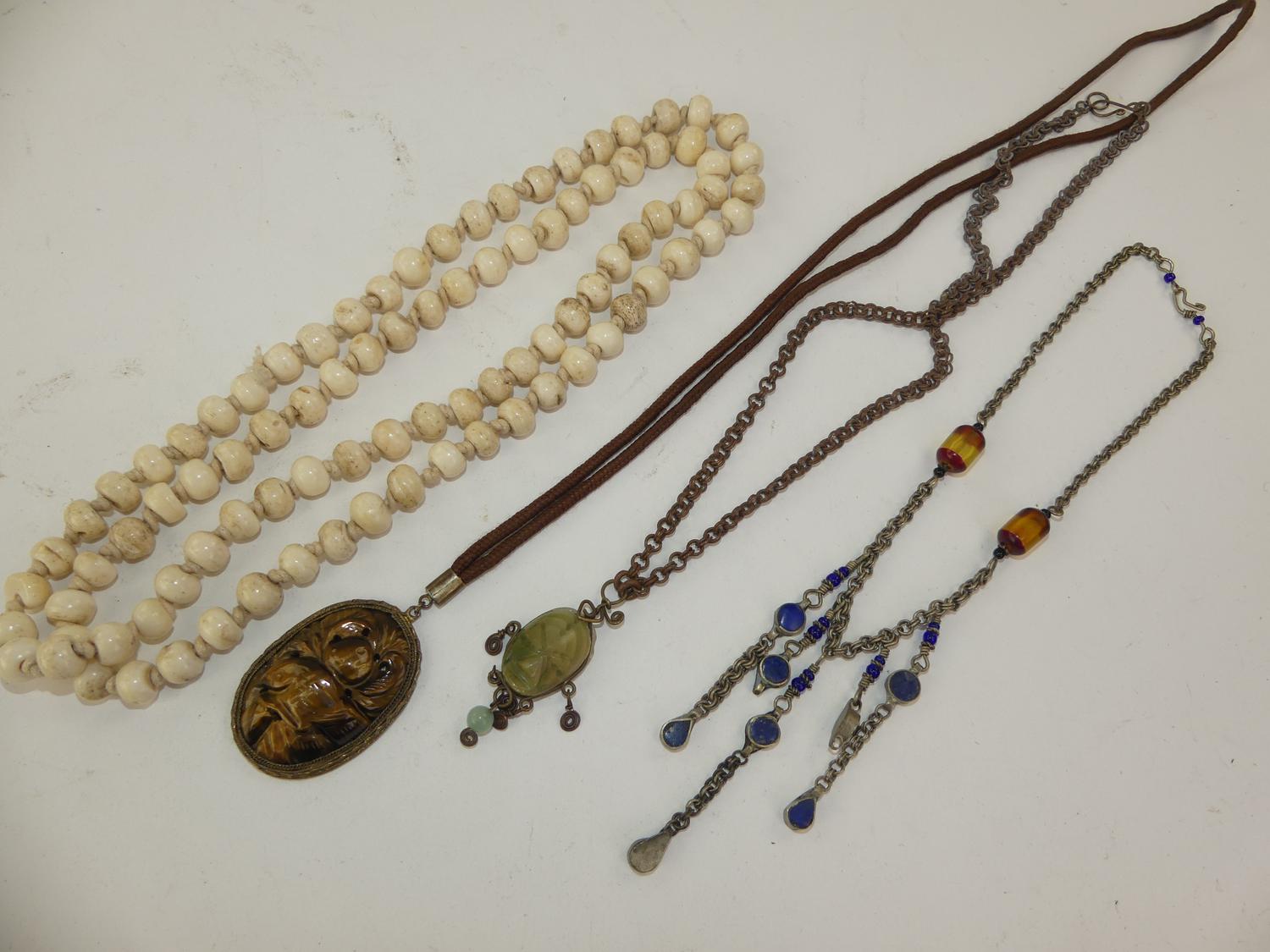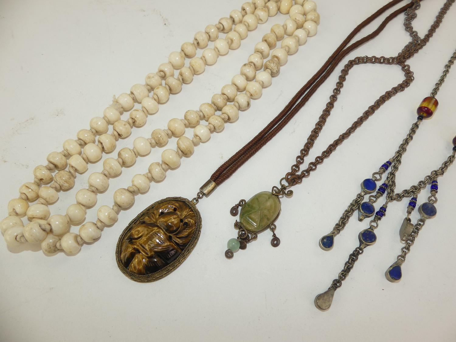 bone, tigers eye, agate, sodalite beaded necklaces(5)