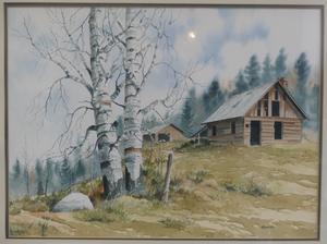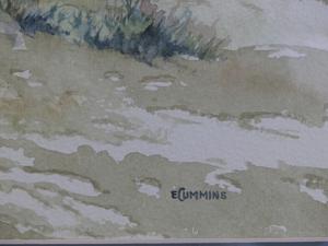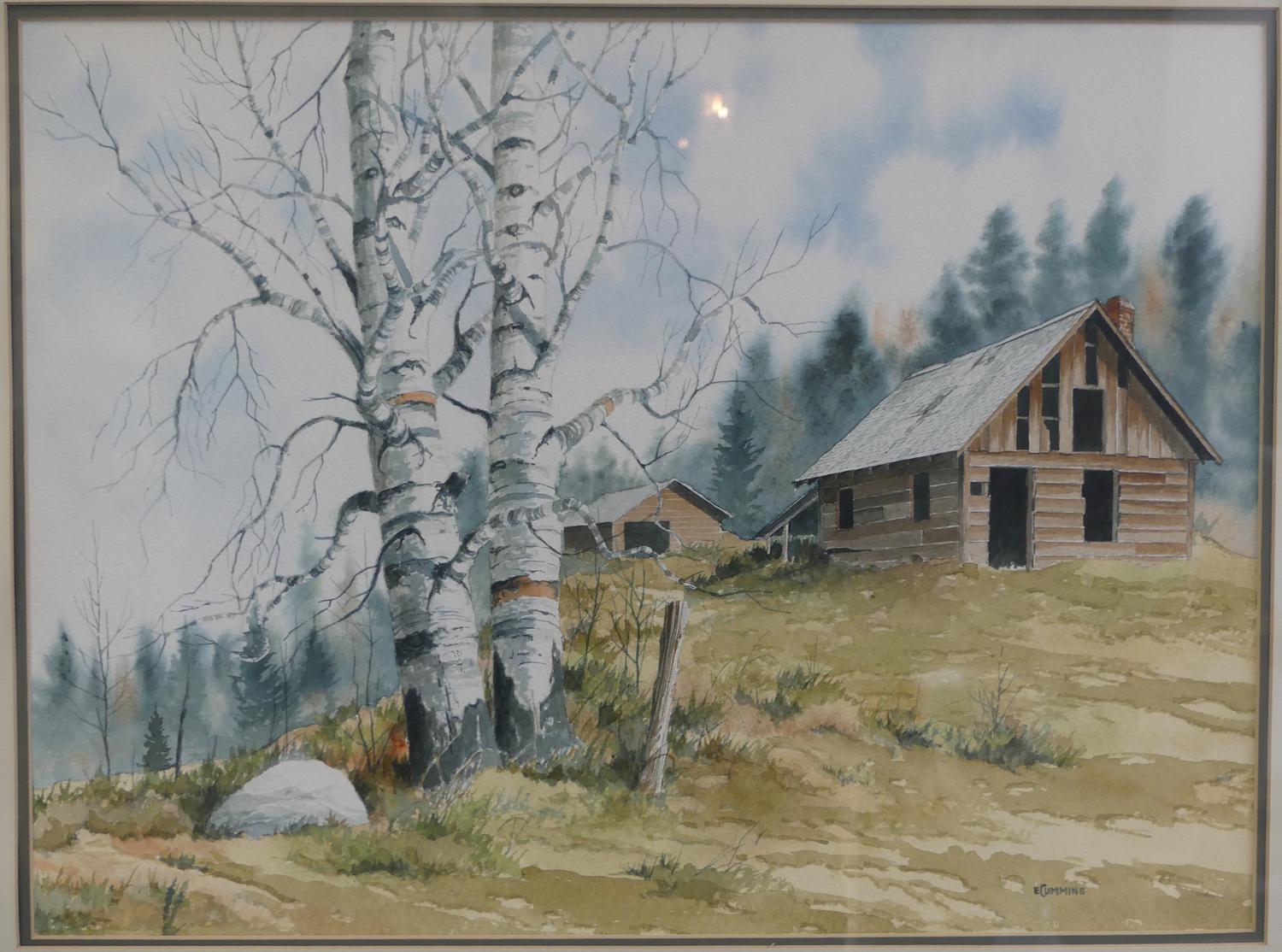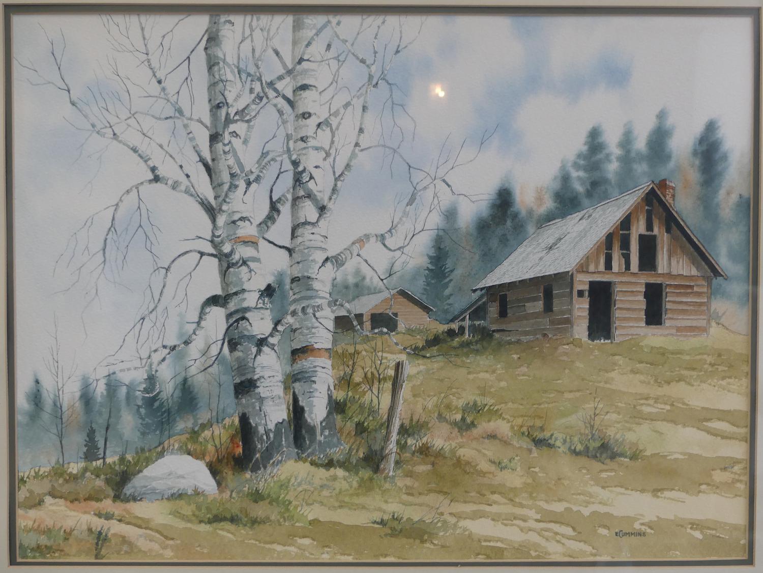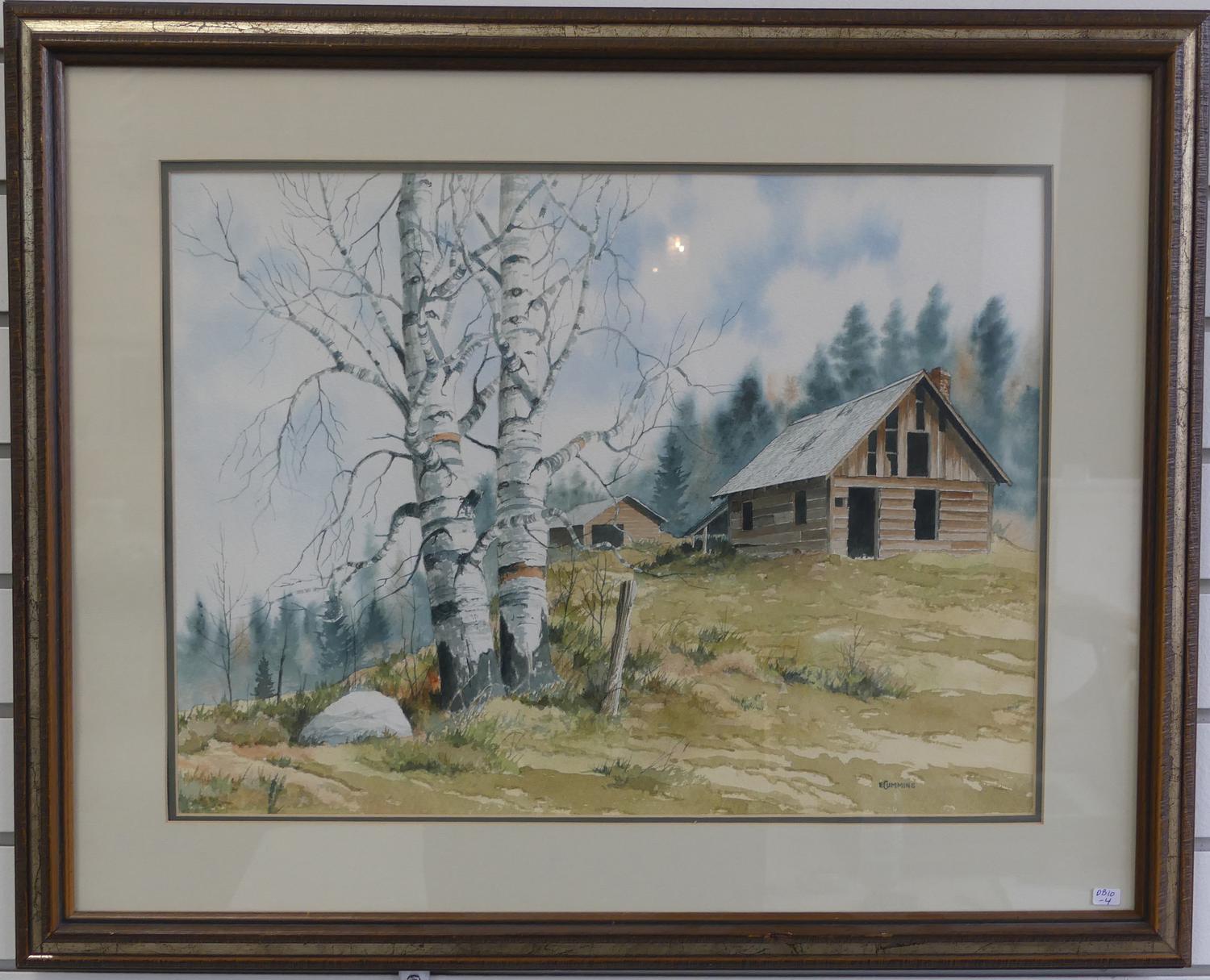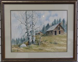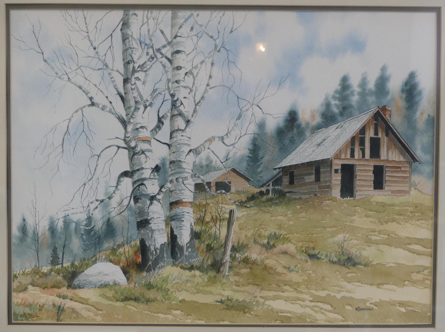 earl porter cummings (b.1922), watercolour, 12" x 16", "winter farm scene"