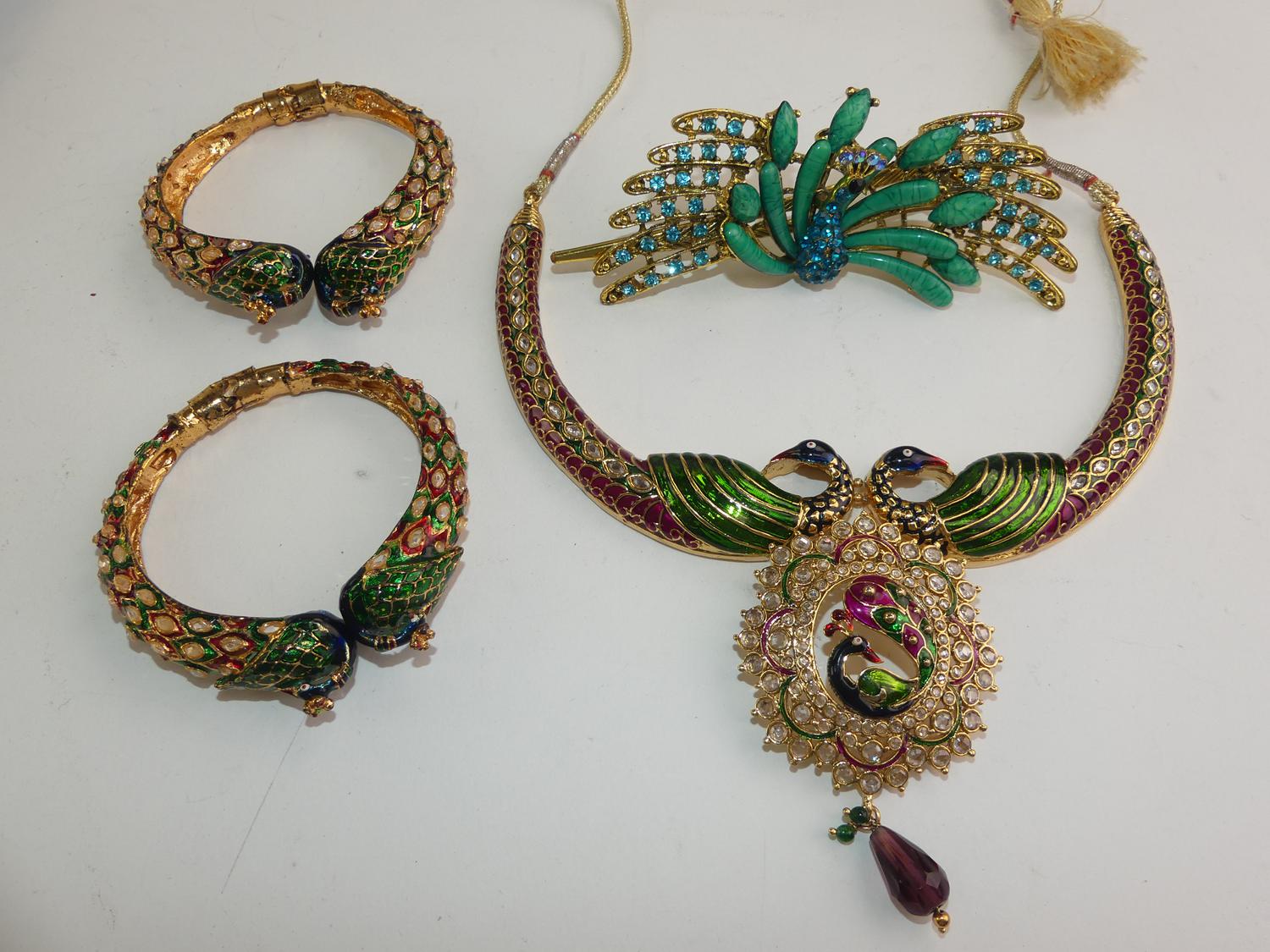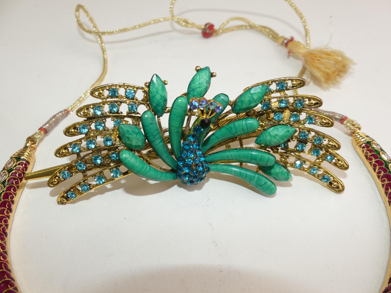 "peacock" motif demi. paure and hair piece