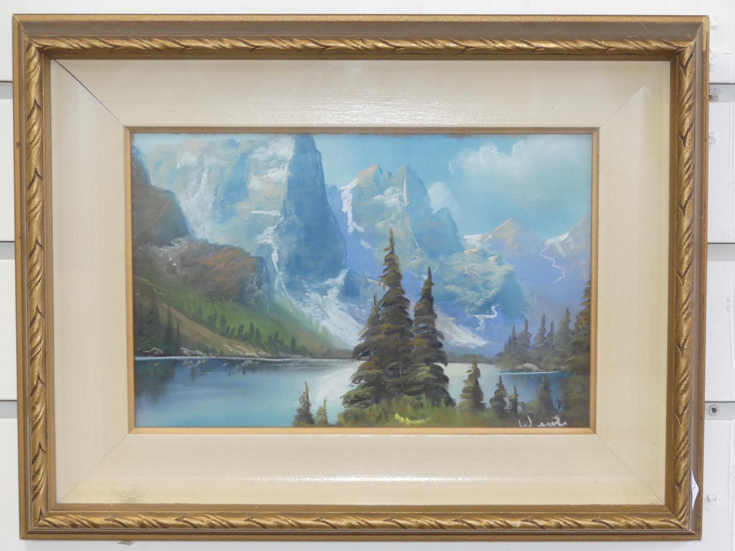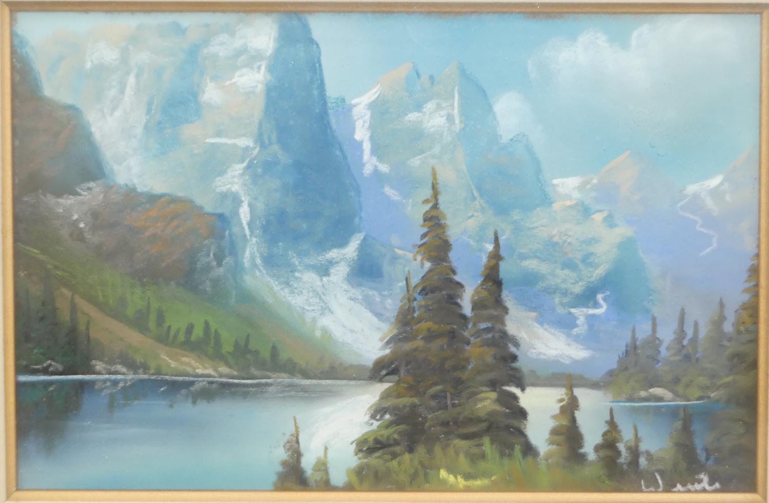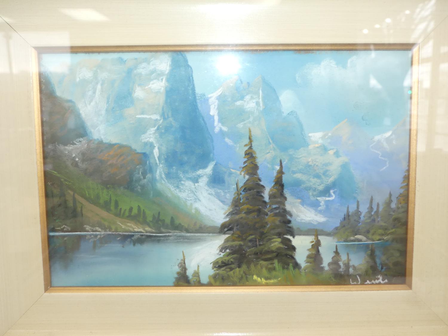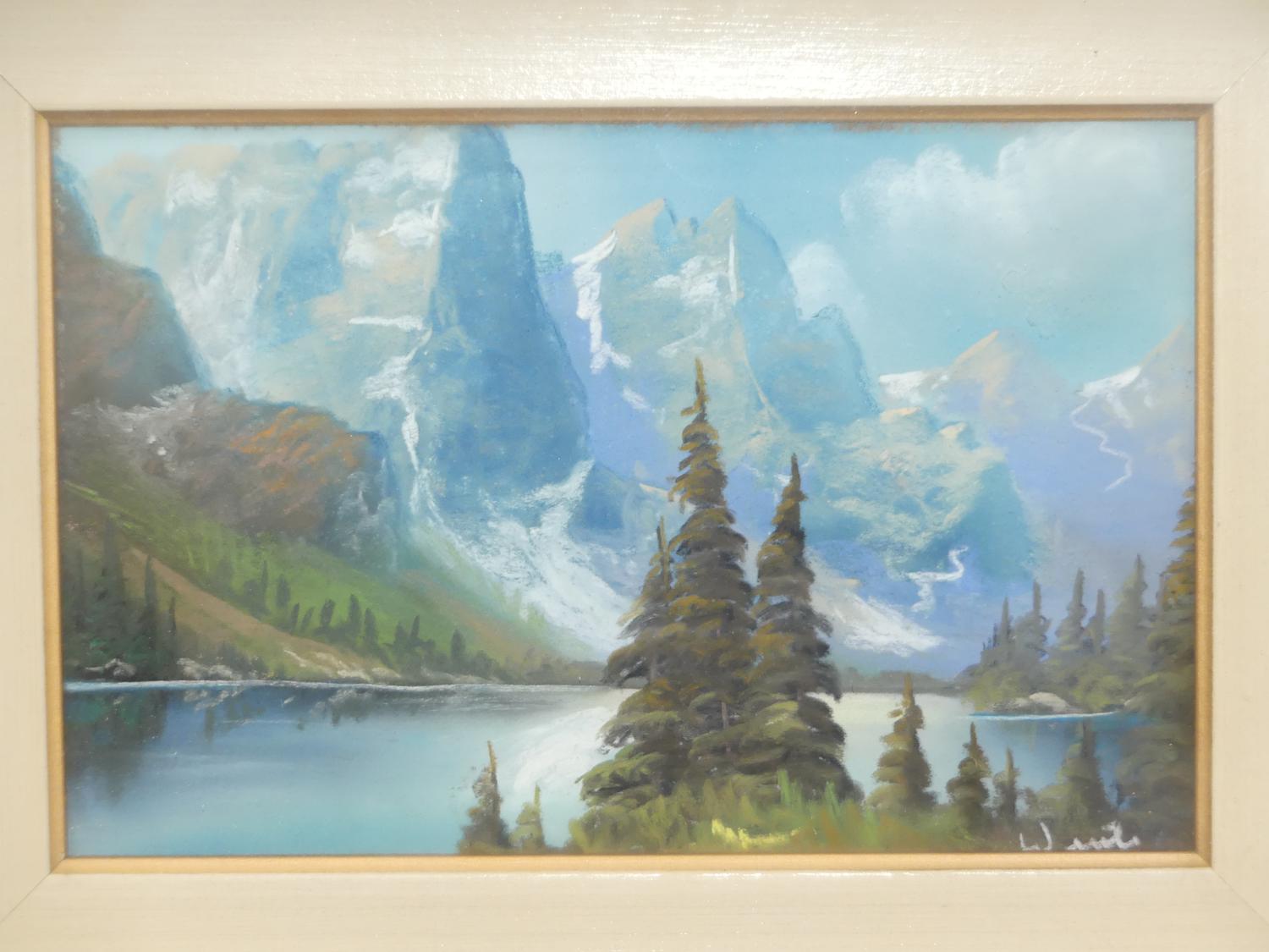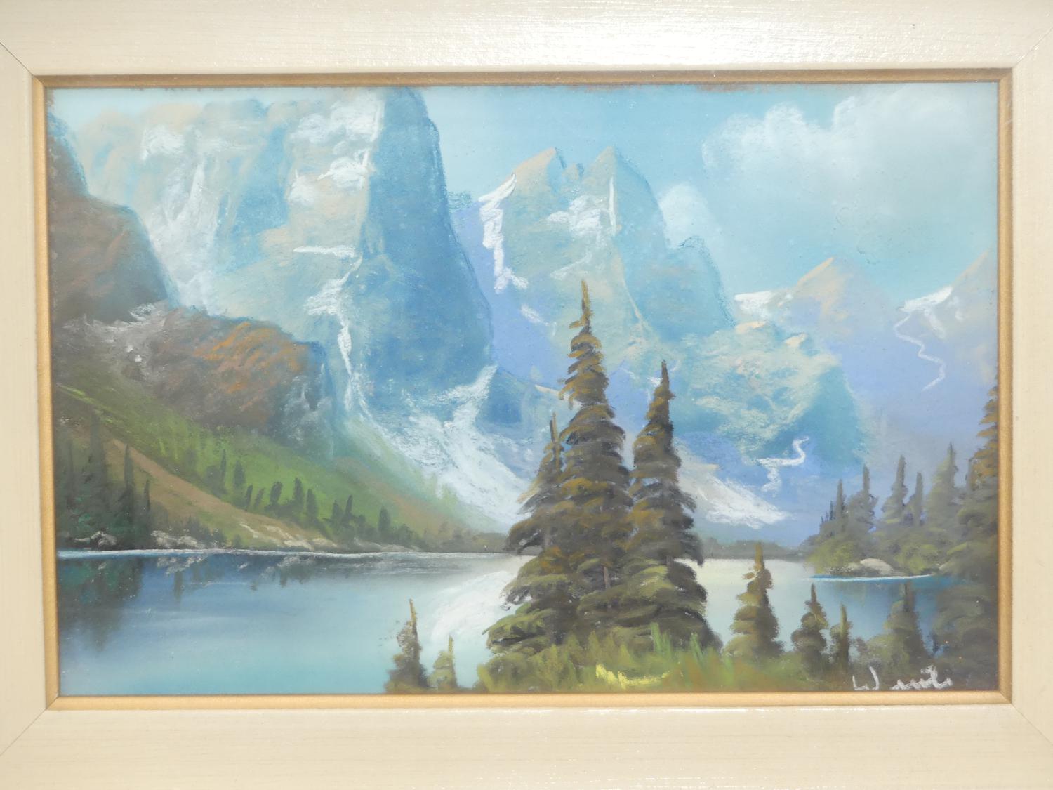 maisie wride (1892-1973), pastel, 5 1/2" x 8 1/2", "morraine lake"