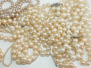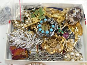 lot of vintage faux pearl necklaces, gp necklaces, limoges pins etc