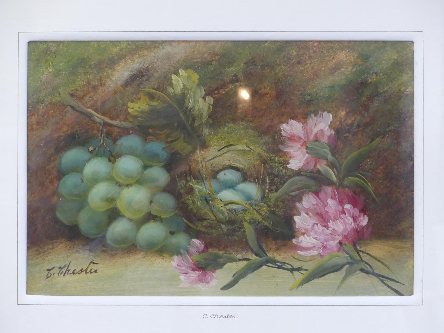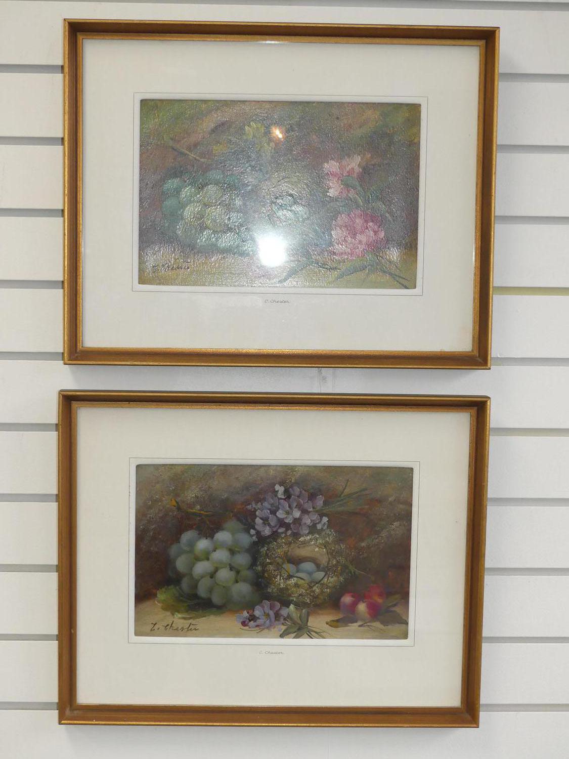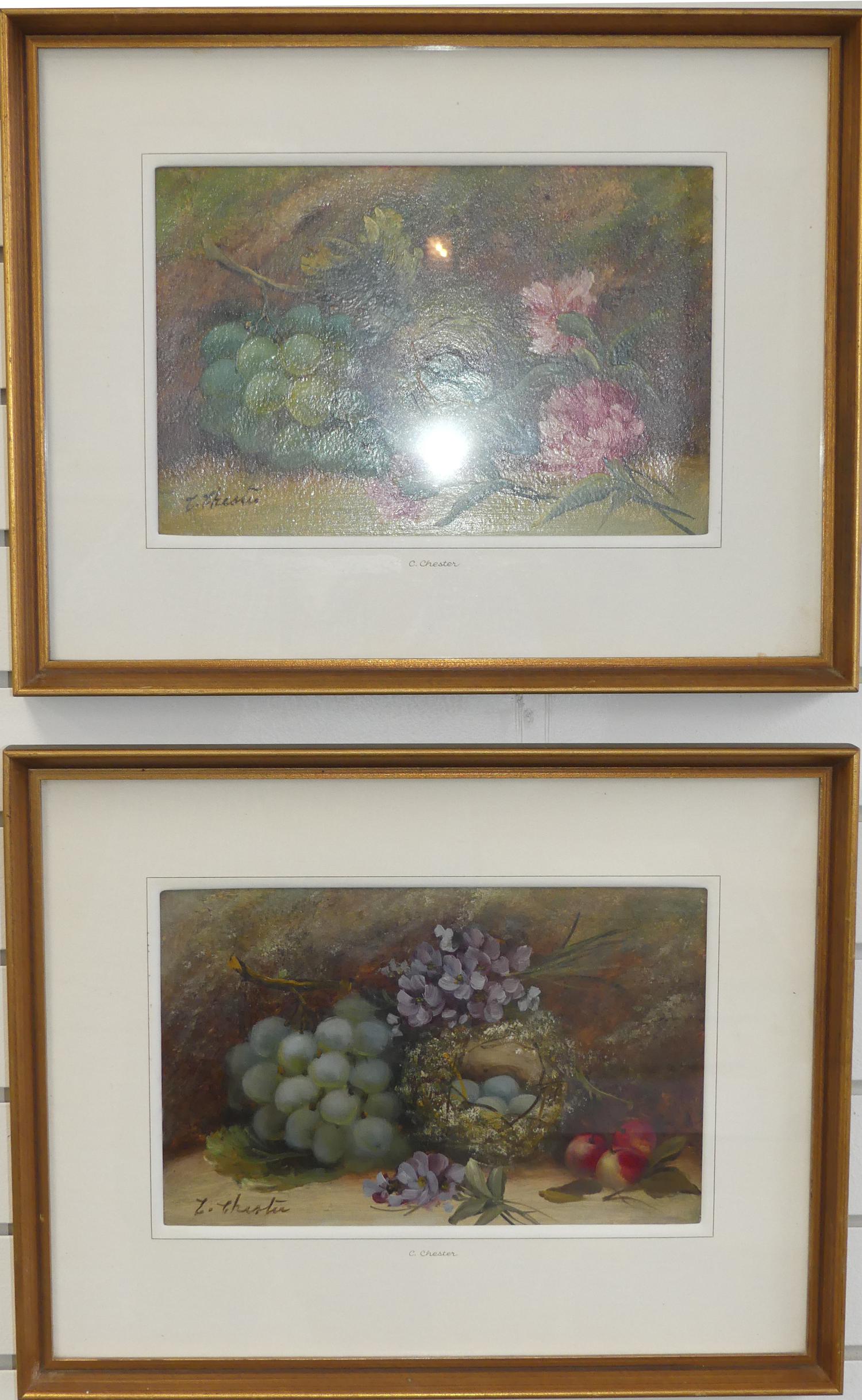 catherine chester, pair of oils on boards, 8" x 11 1/2", "stillifes with birds nests"