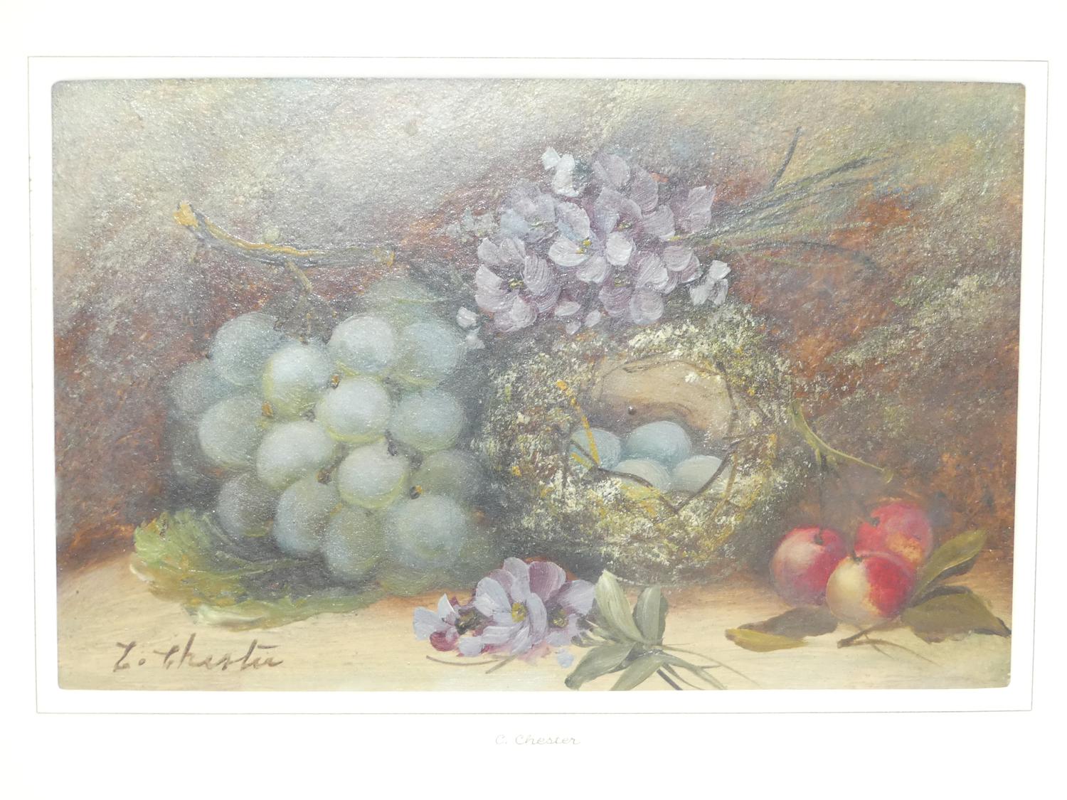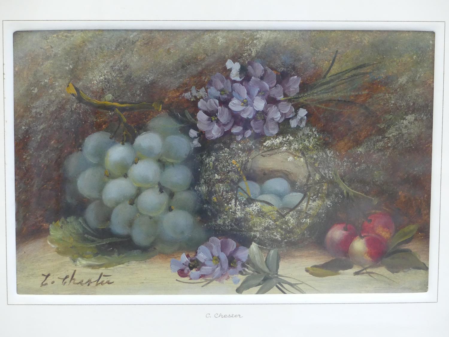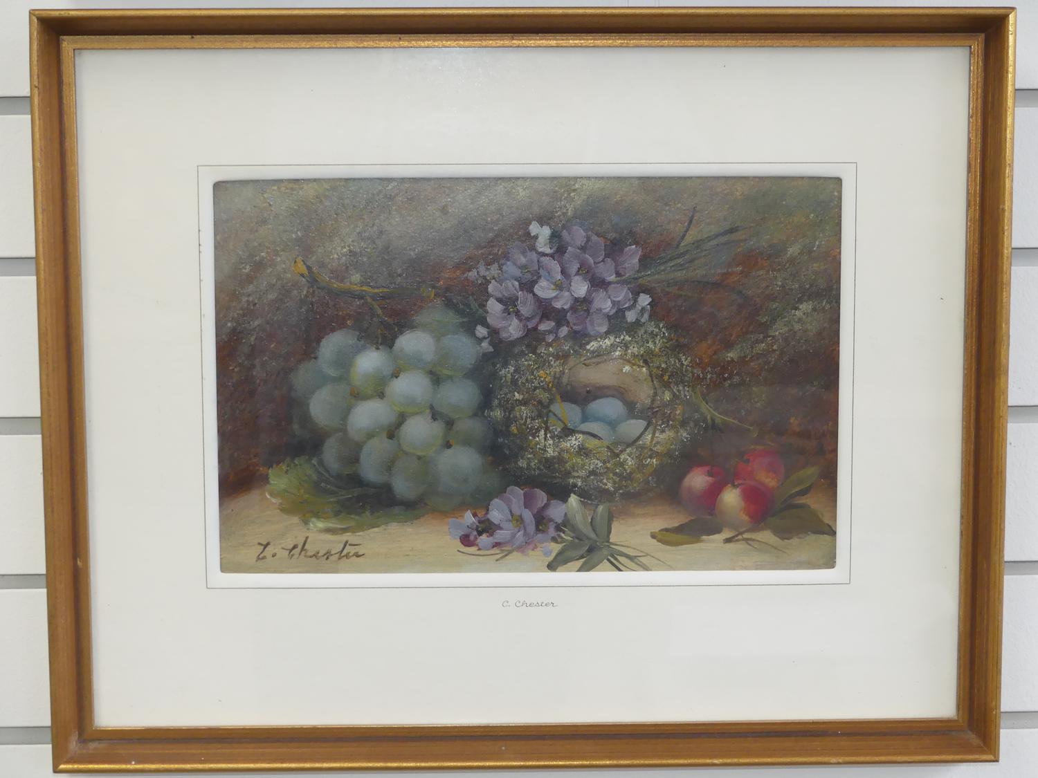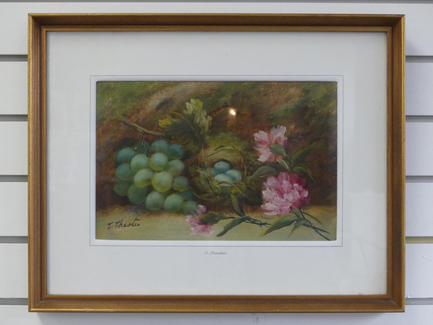 catherine chester, pair of oils on boards, 8" x 11 1/2", "stillifes with birds nests"