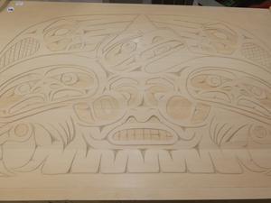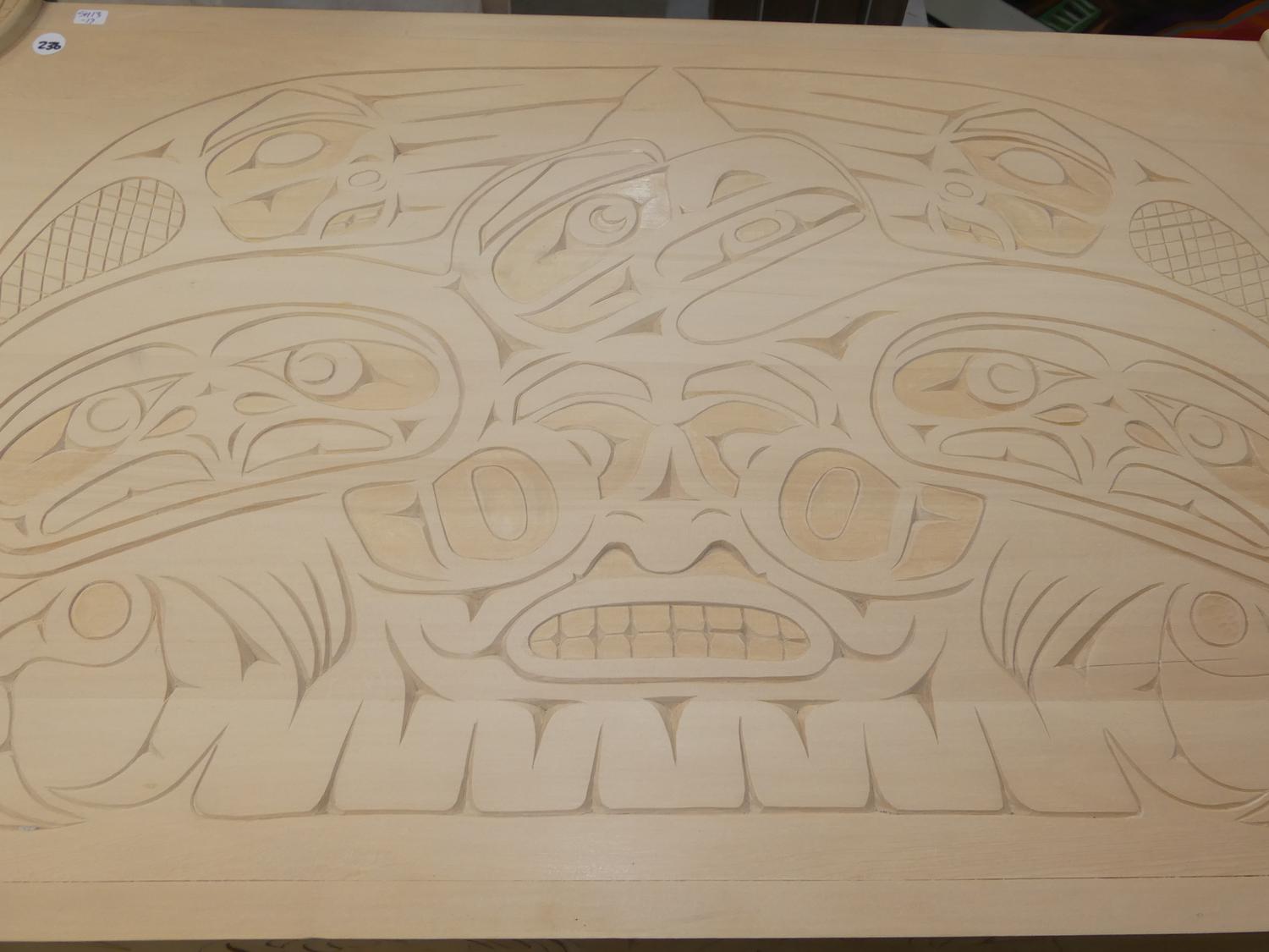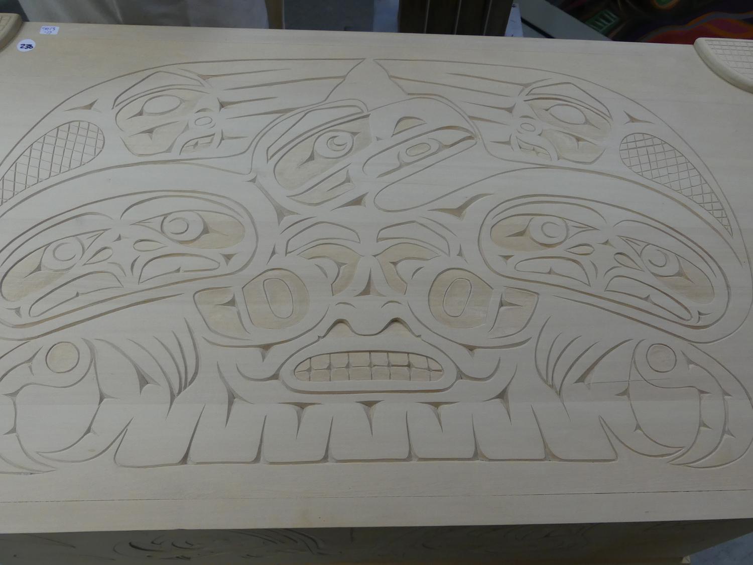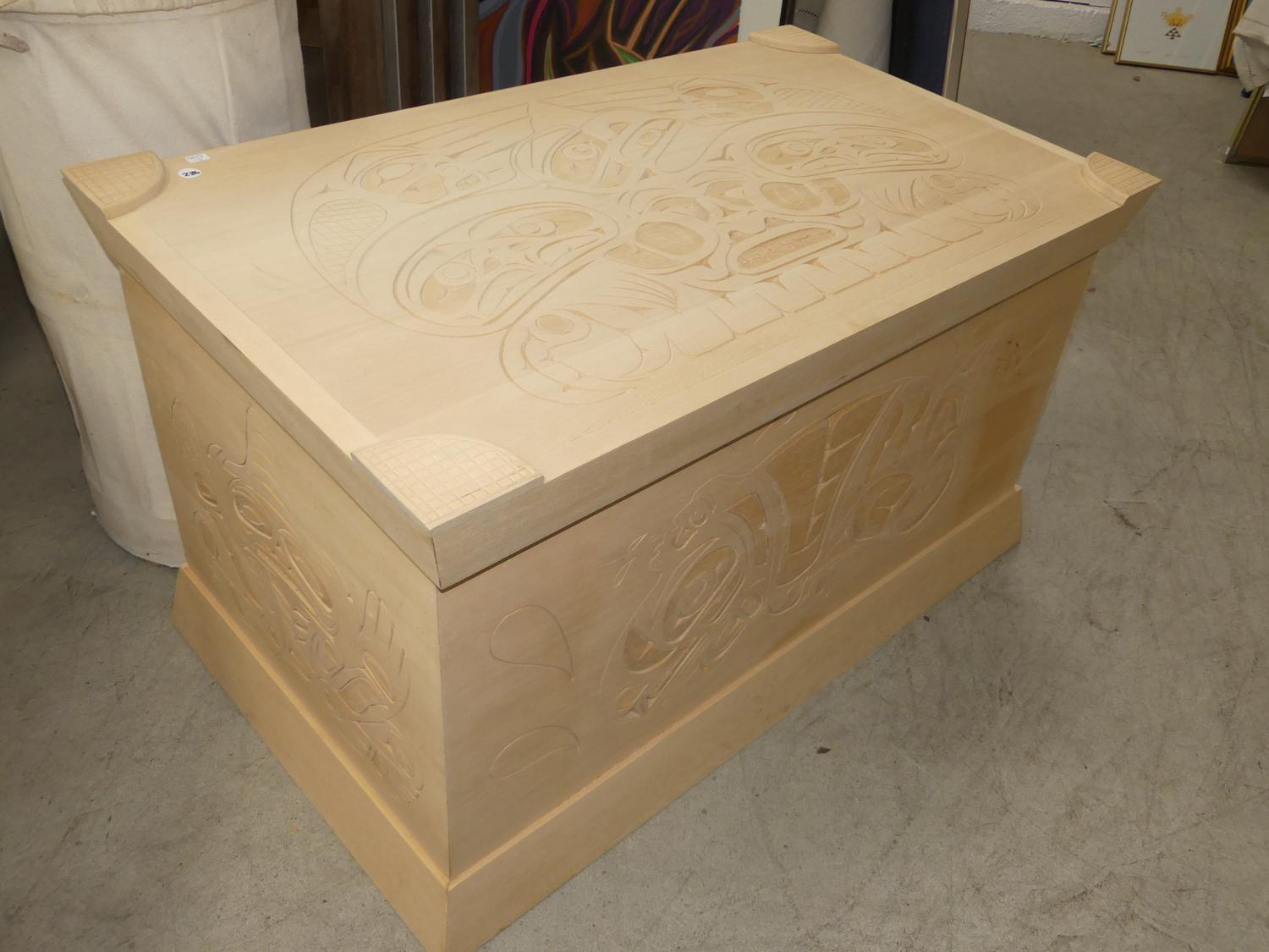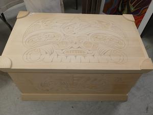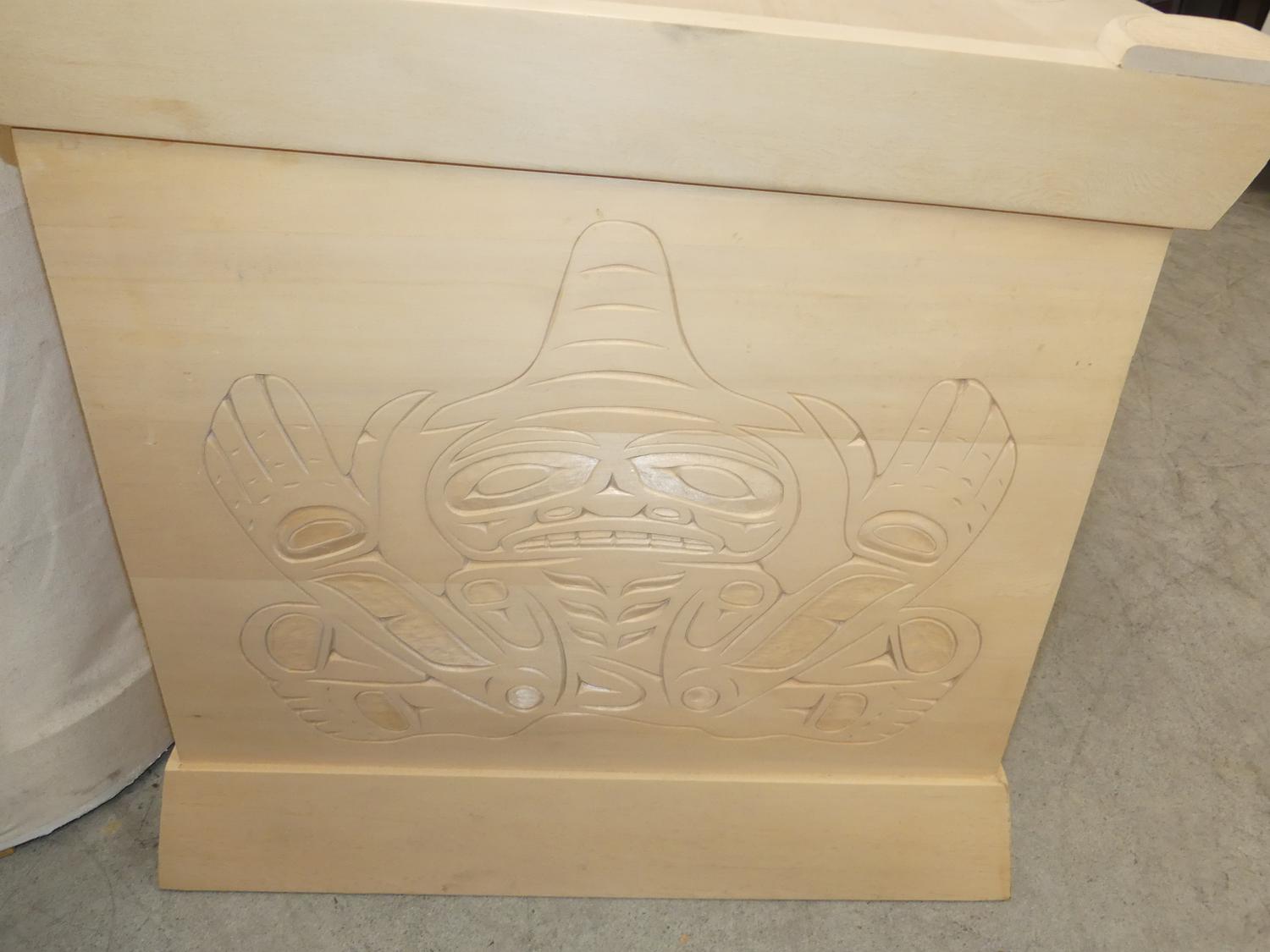 west coast native design carved yellow cedar chest