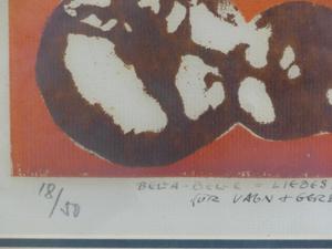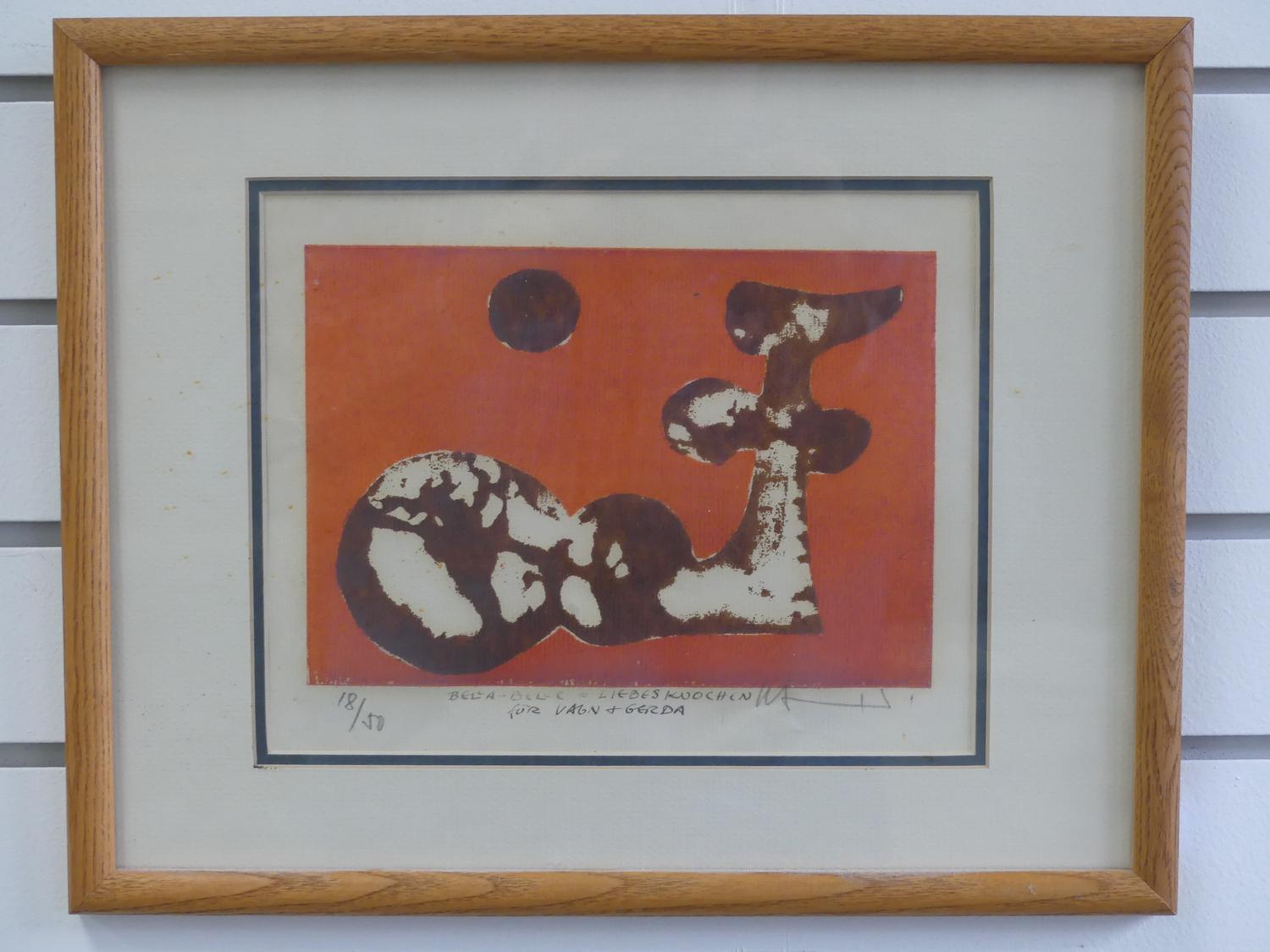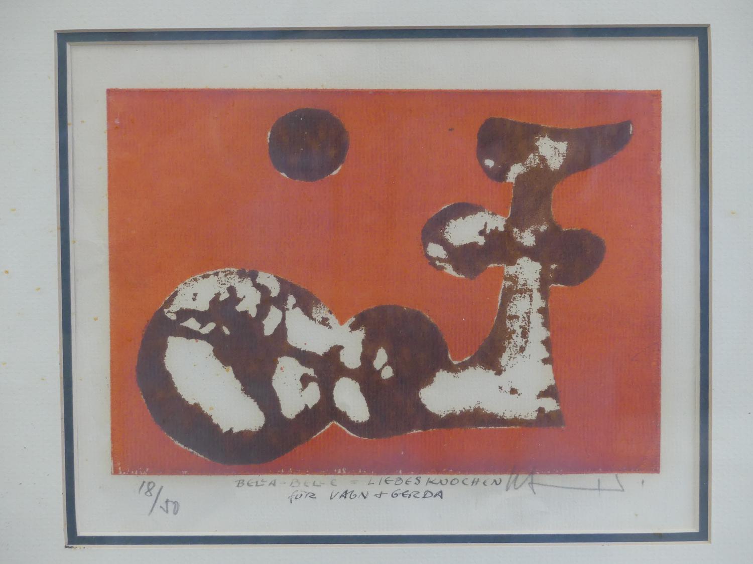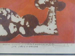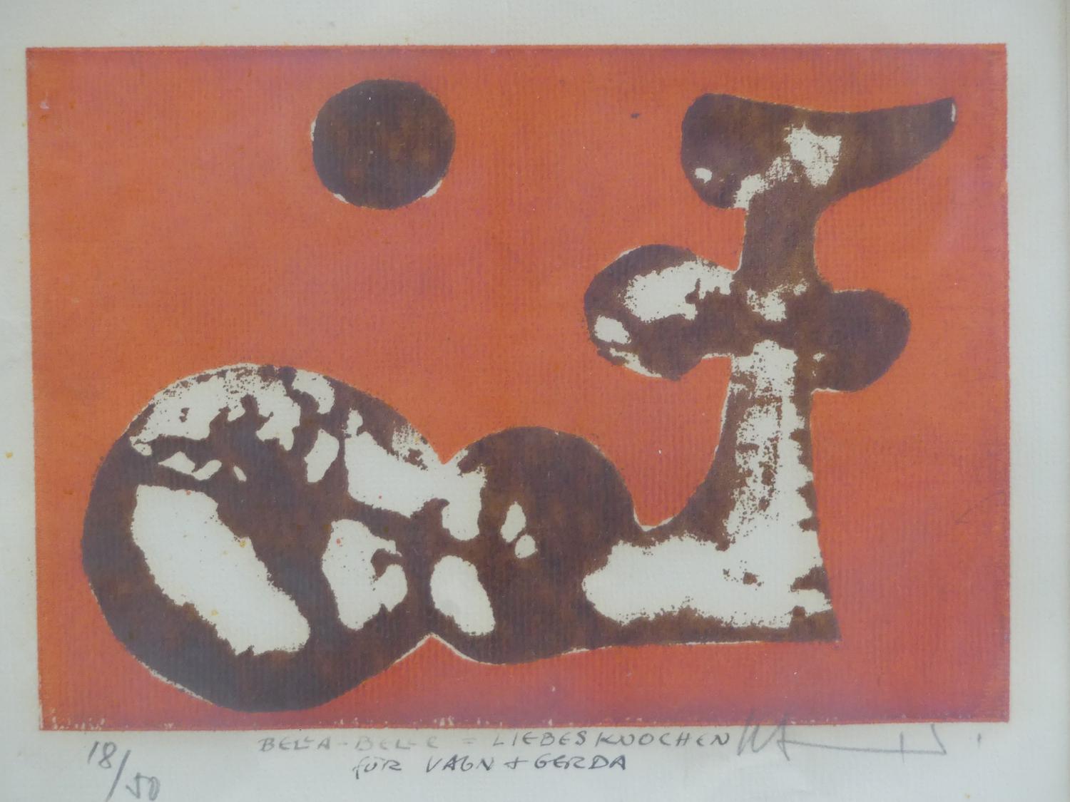 herbert siebner (1925-2003), serigraph in colours, 6" x 8 1/2", "bella-bella = liebesknochen - for vagn & gerda"