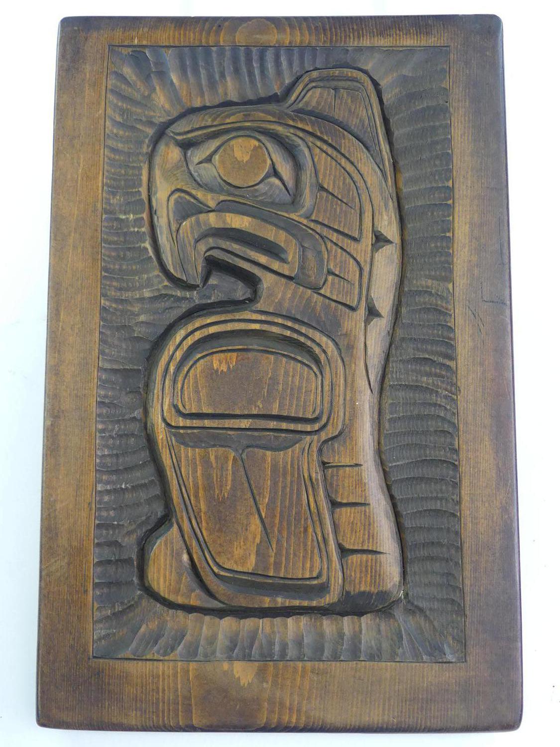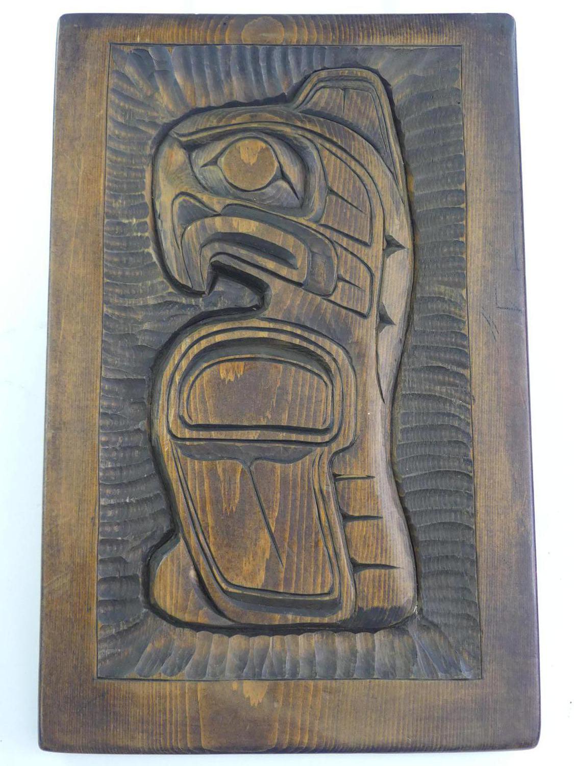 west coast carved plaque by dennis matilipi "thunderbirds"