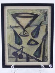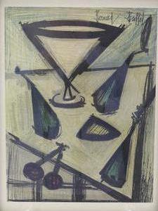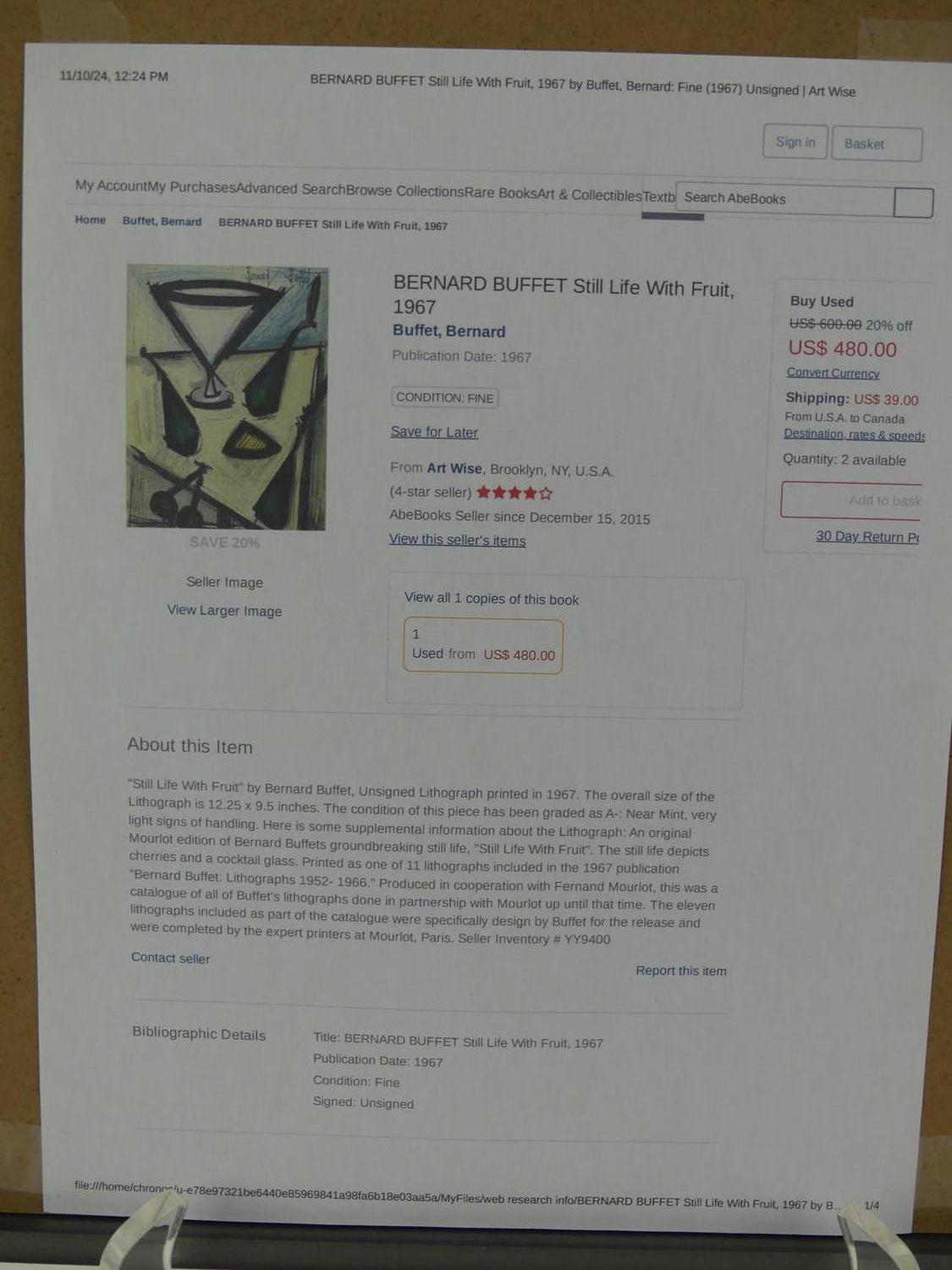 bernard buffet (1928-1999), lithograph in colours circa 1967, 12 1/4" x 9 1/2", "still life with fruit"