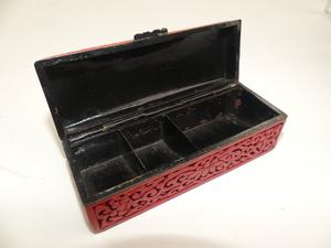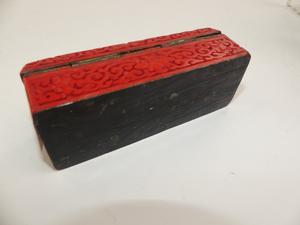 chinese carved cinnabar stamp box, 1 1/2" x 4 1/2" x 1 3/4"