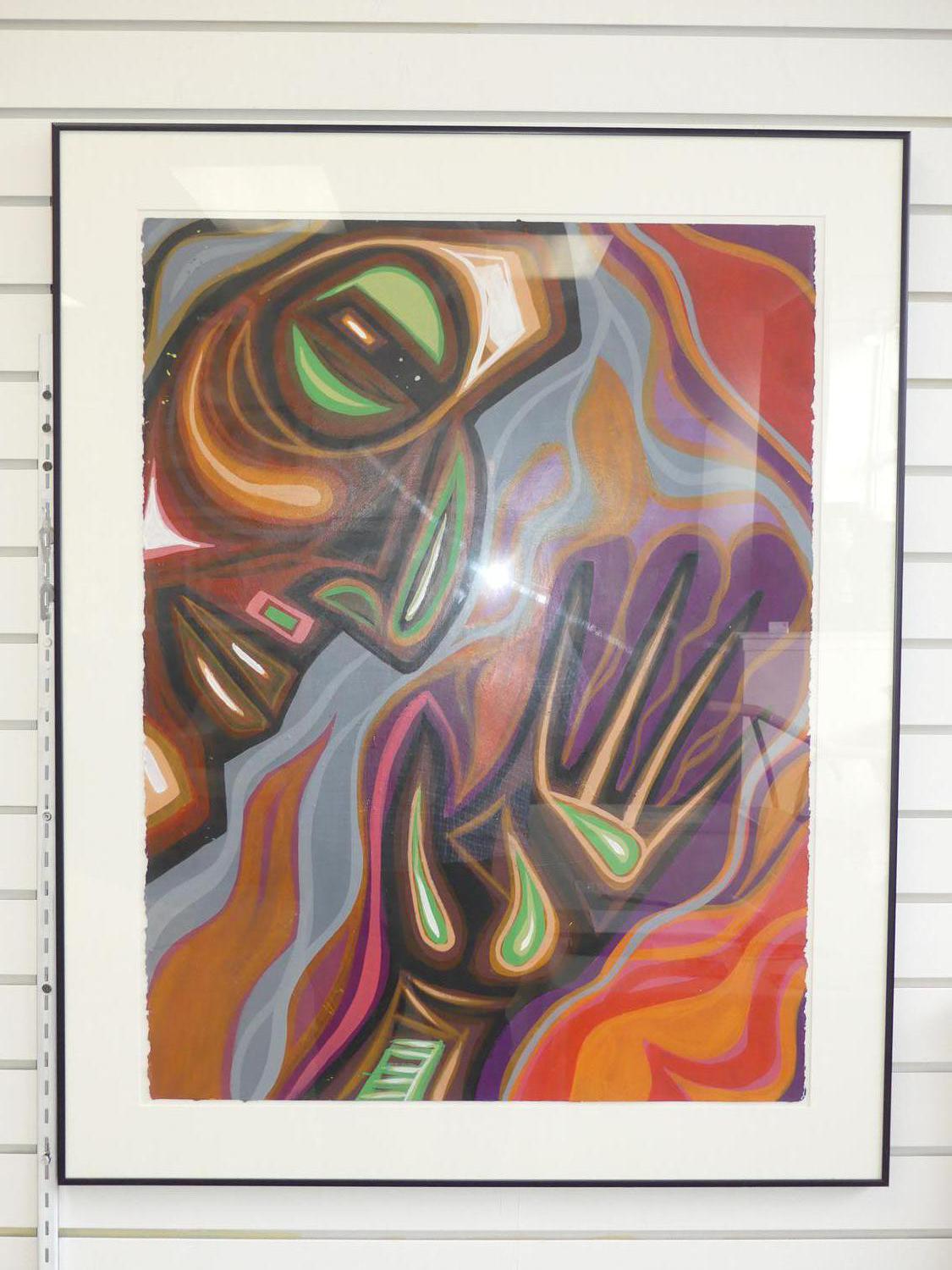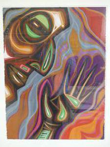 note: D.J. Tapaquon (Darnell) was born in 1977 in Regina, Saskatchewan, a member of the George Gordon First Nation. He started painting at age sixteen and gallery representation soon followed. From that time Tapaquon has split his time between Regina, Vancouver and Winnipeg.
