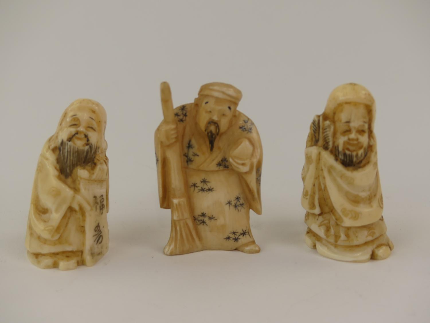 three japanese carved netsuke