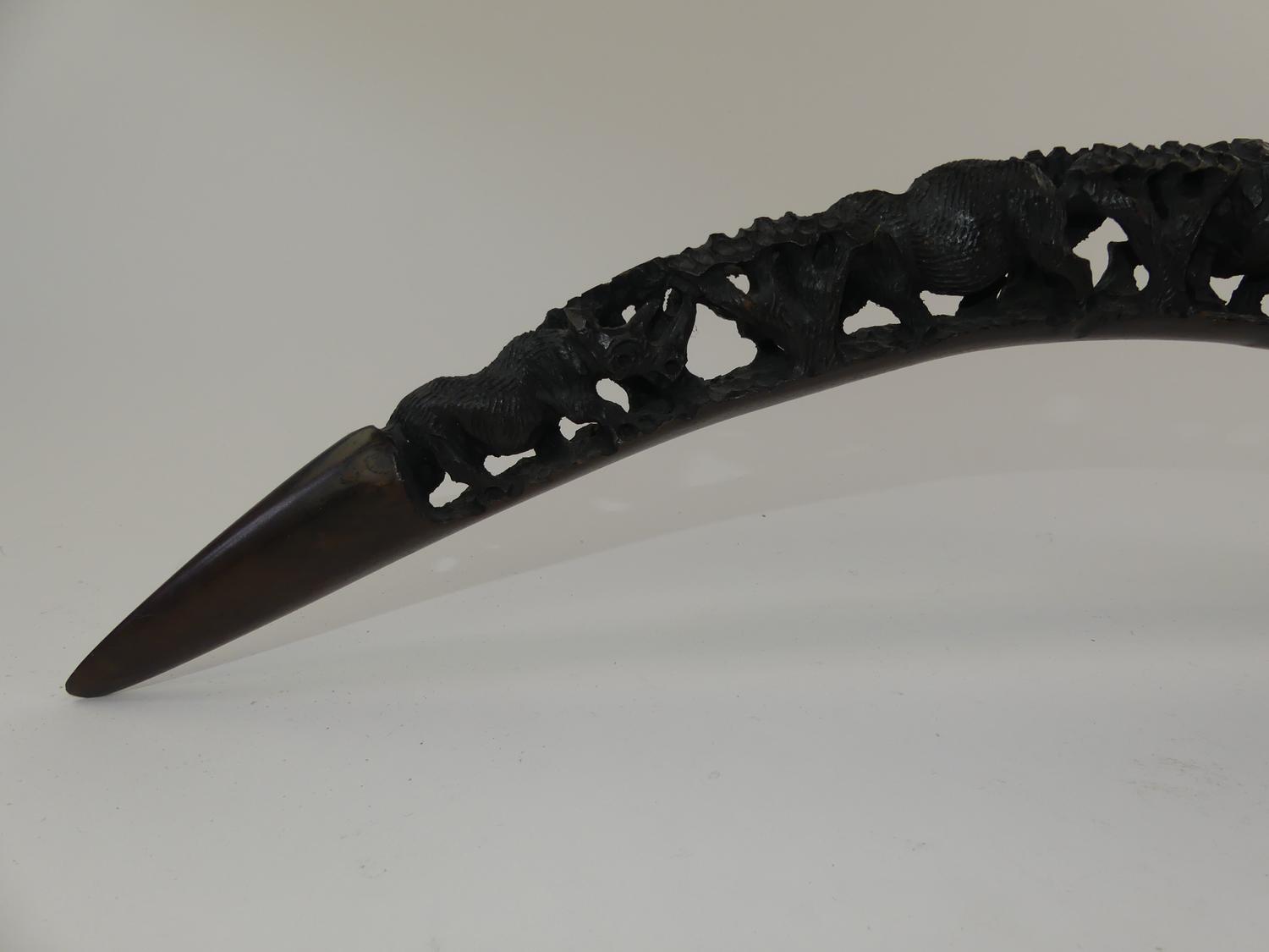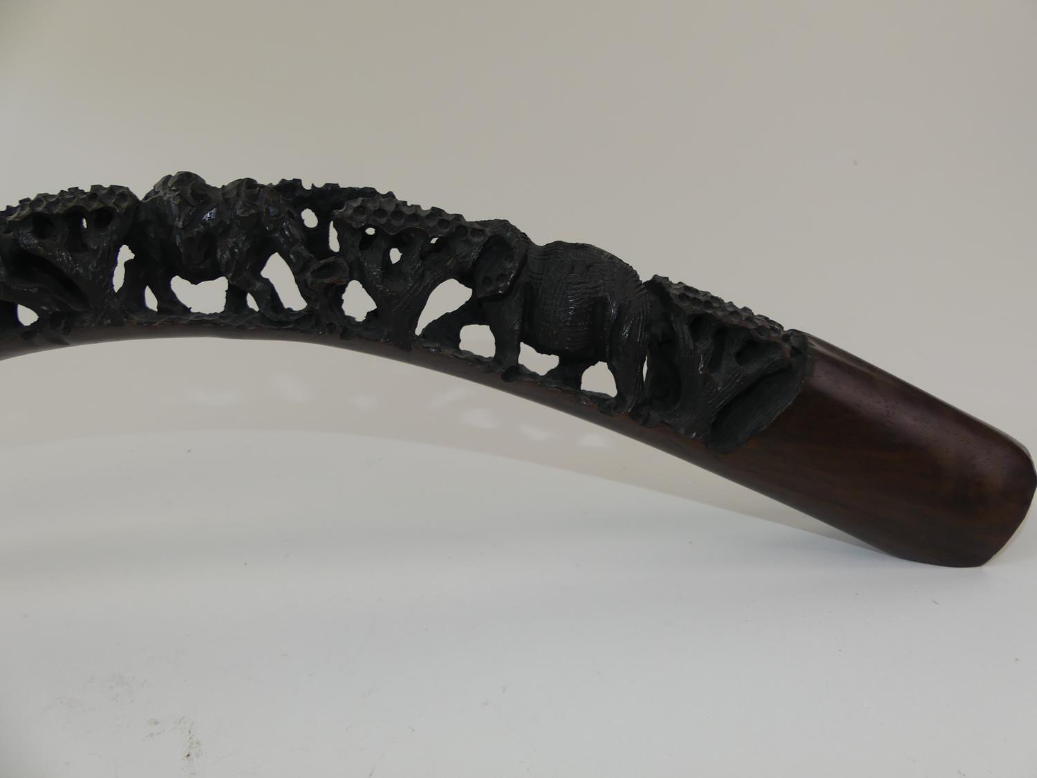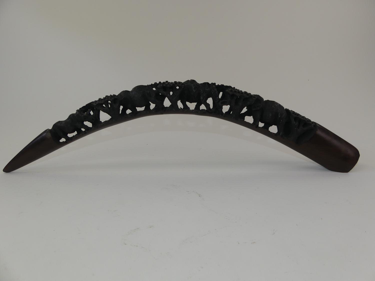 african carved ebony tusk-form totem, length 23"