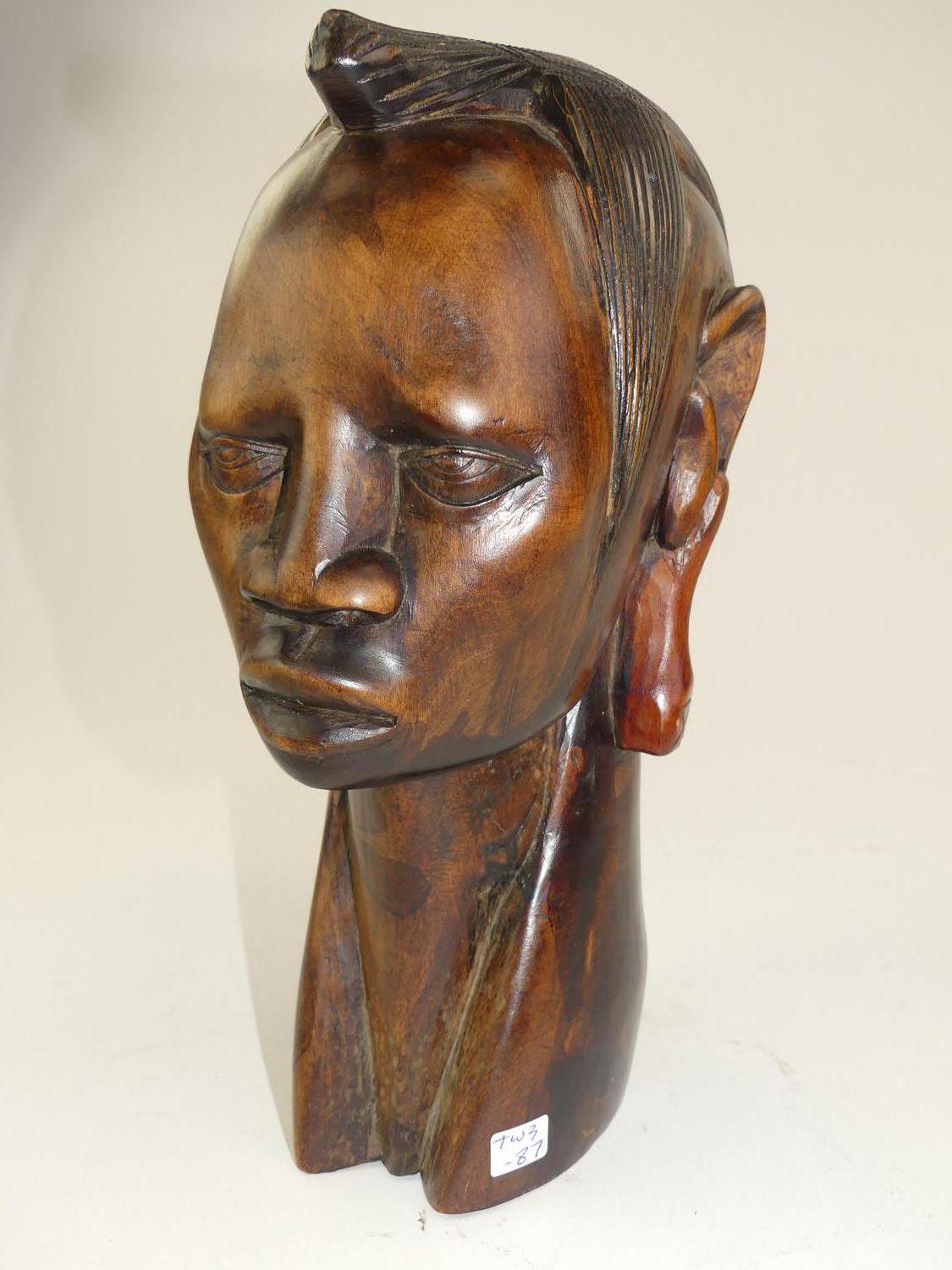 african carved bust of a woman, ht. 12"