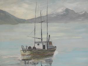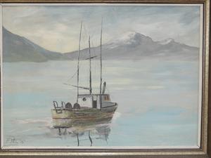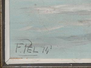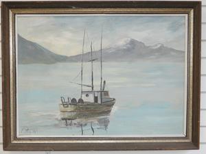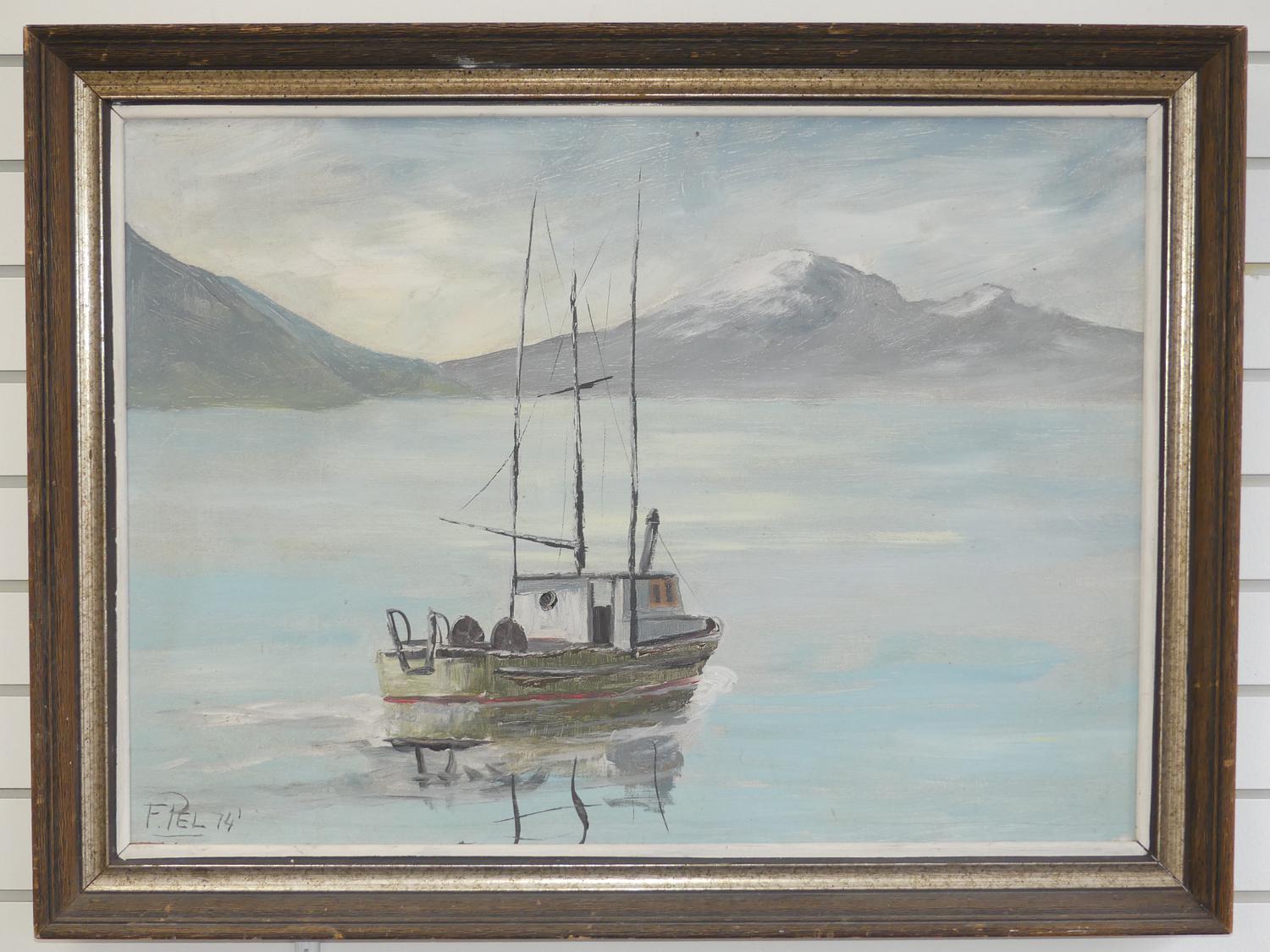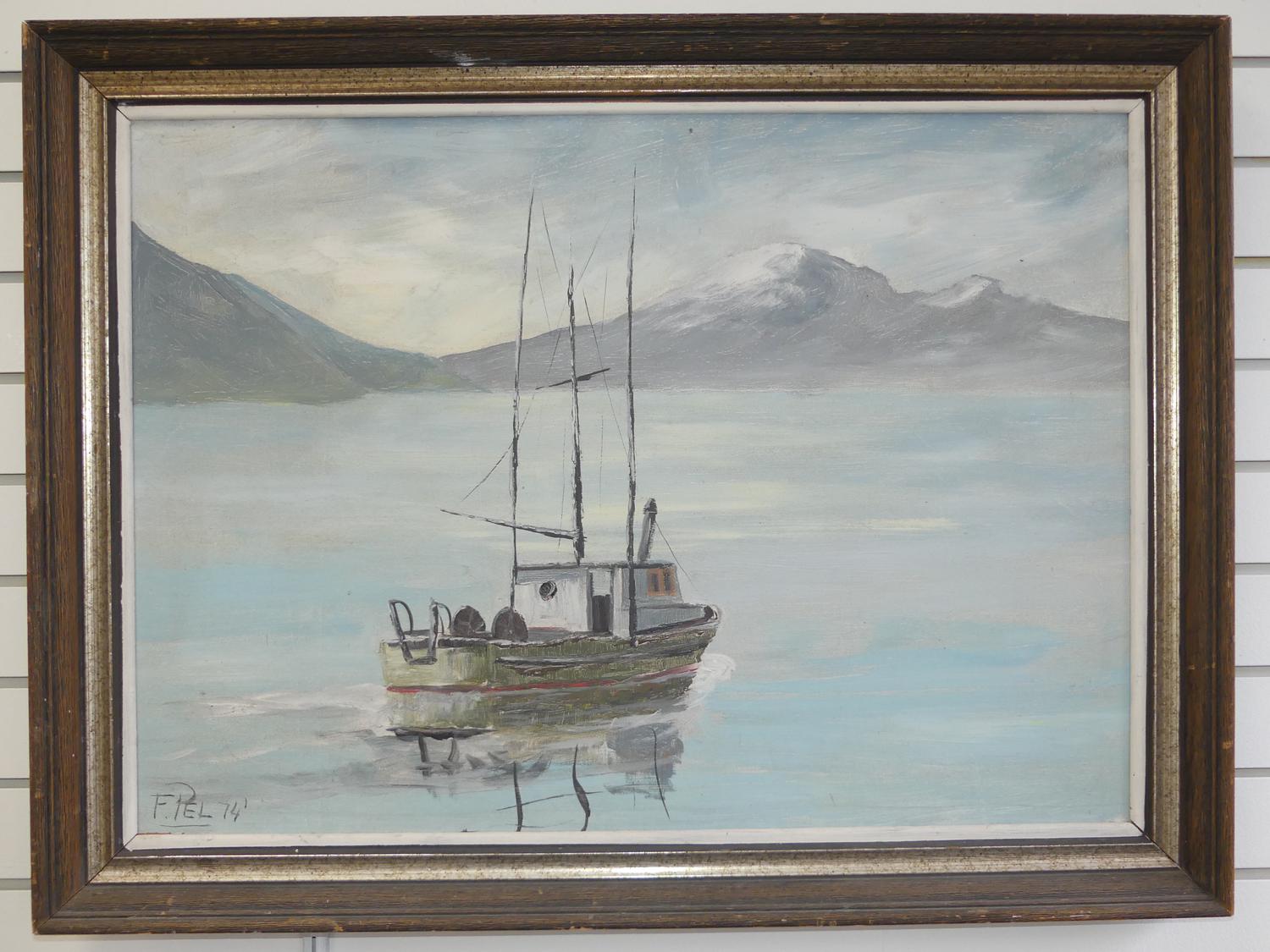 f. pel, d. 1974, 21" x 29", o/b, "sea scape with fishing bowl"