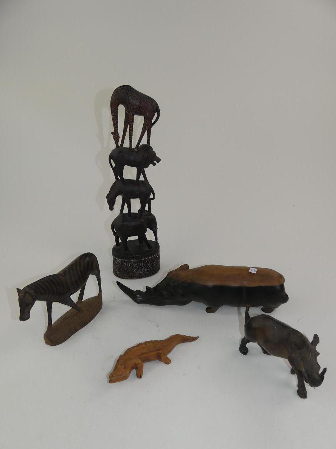 six african carved animal figures