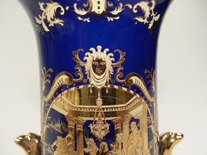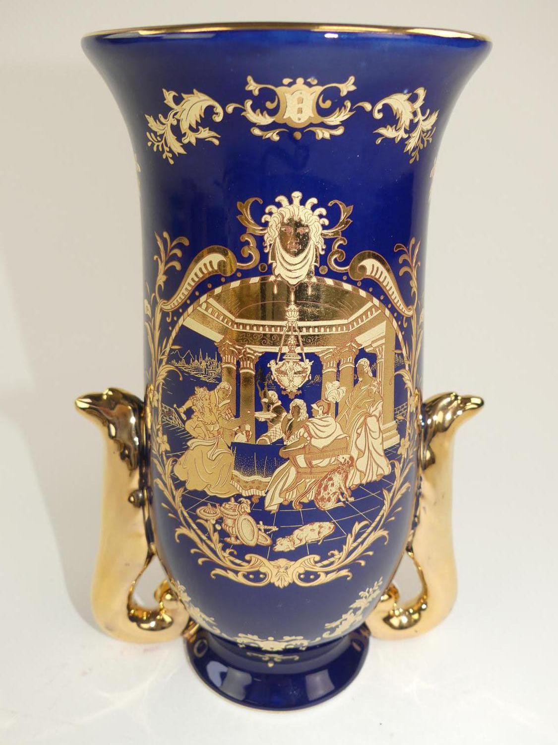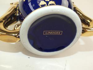 limoges gilt decorated cobalt blue vase, ht. 8 1/2"