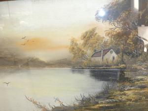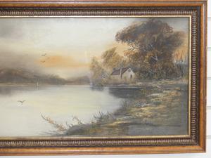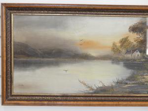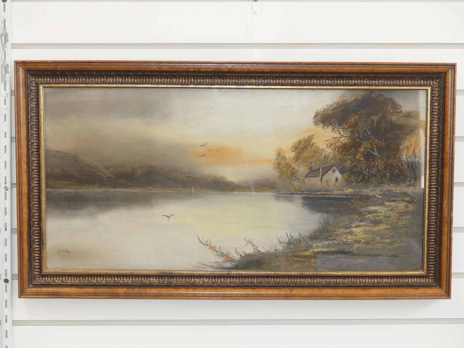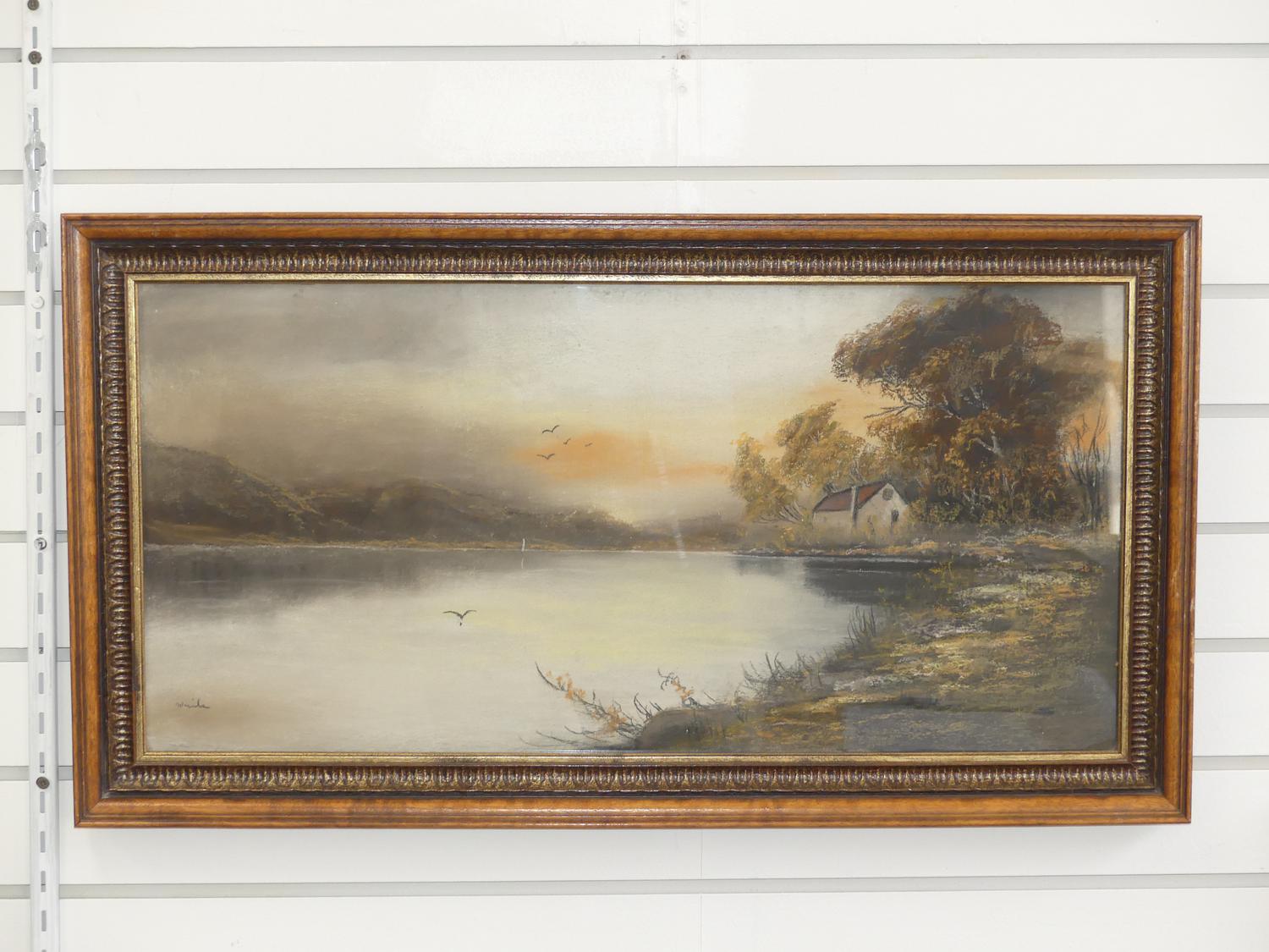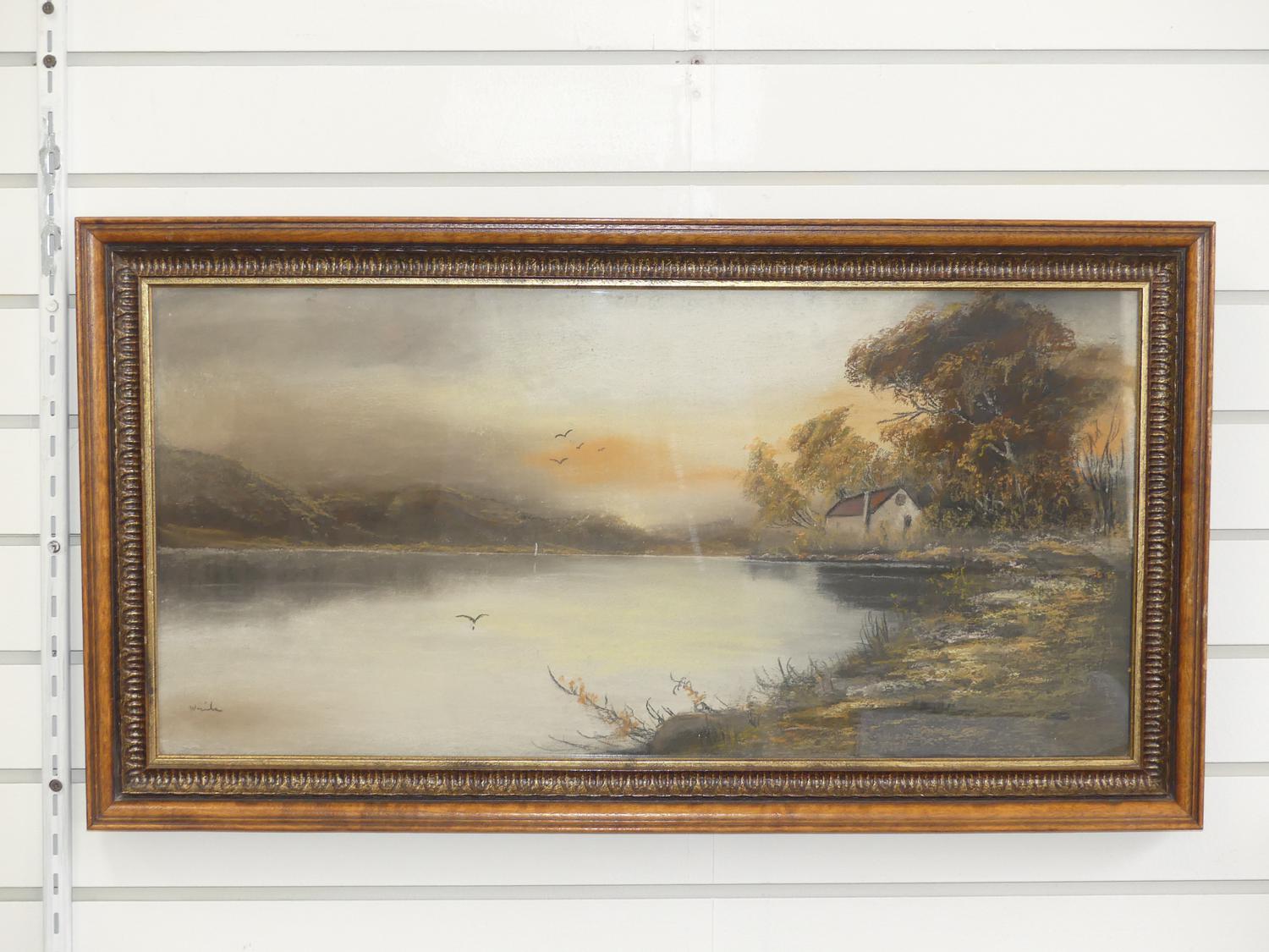 maisie wride (1892-1973), pastel, 12" x 24", " landscape with lake"