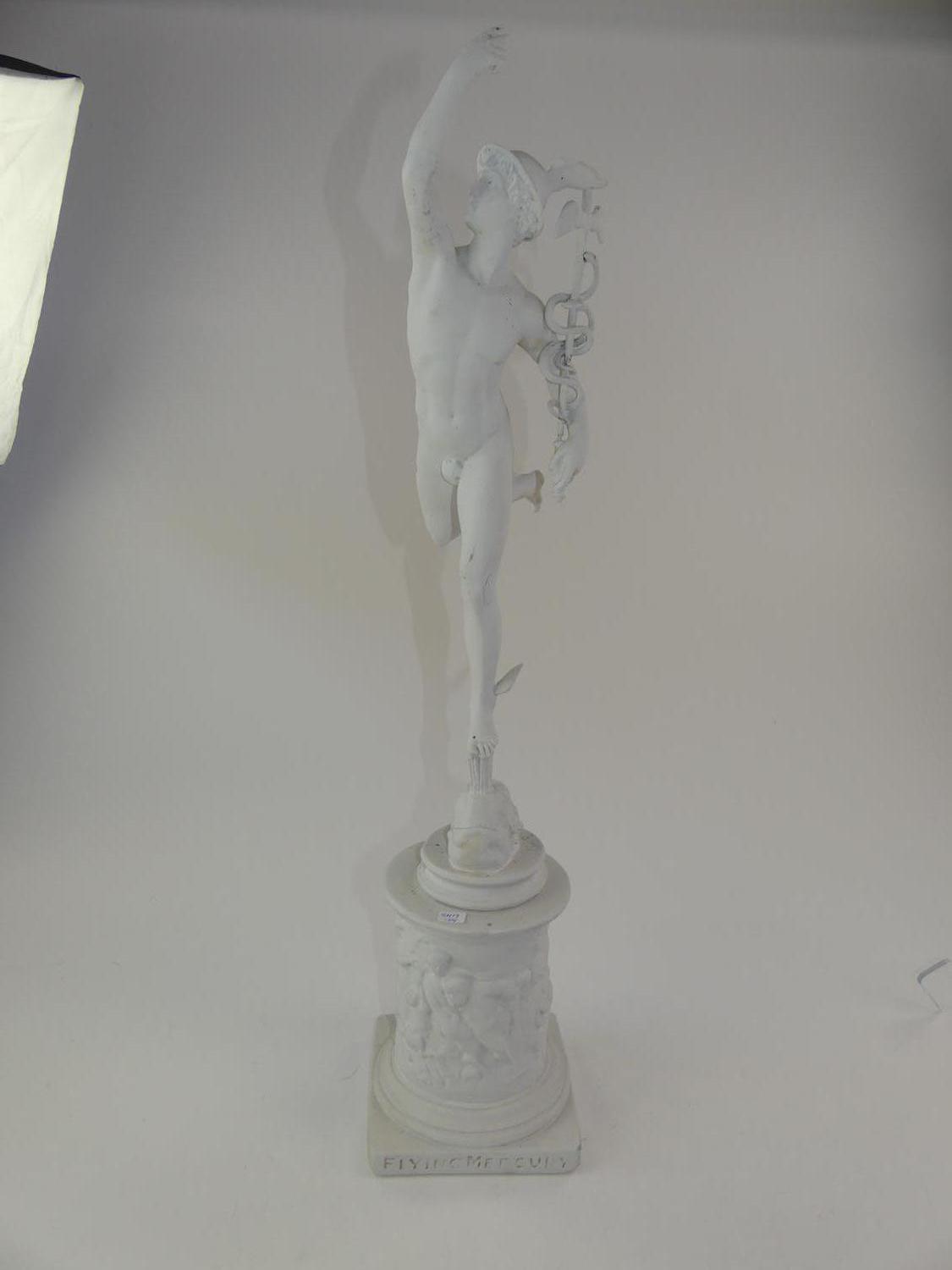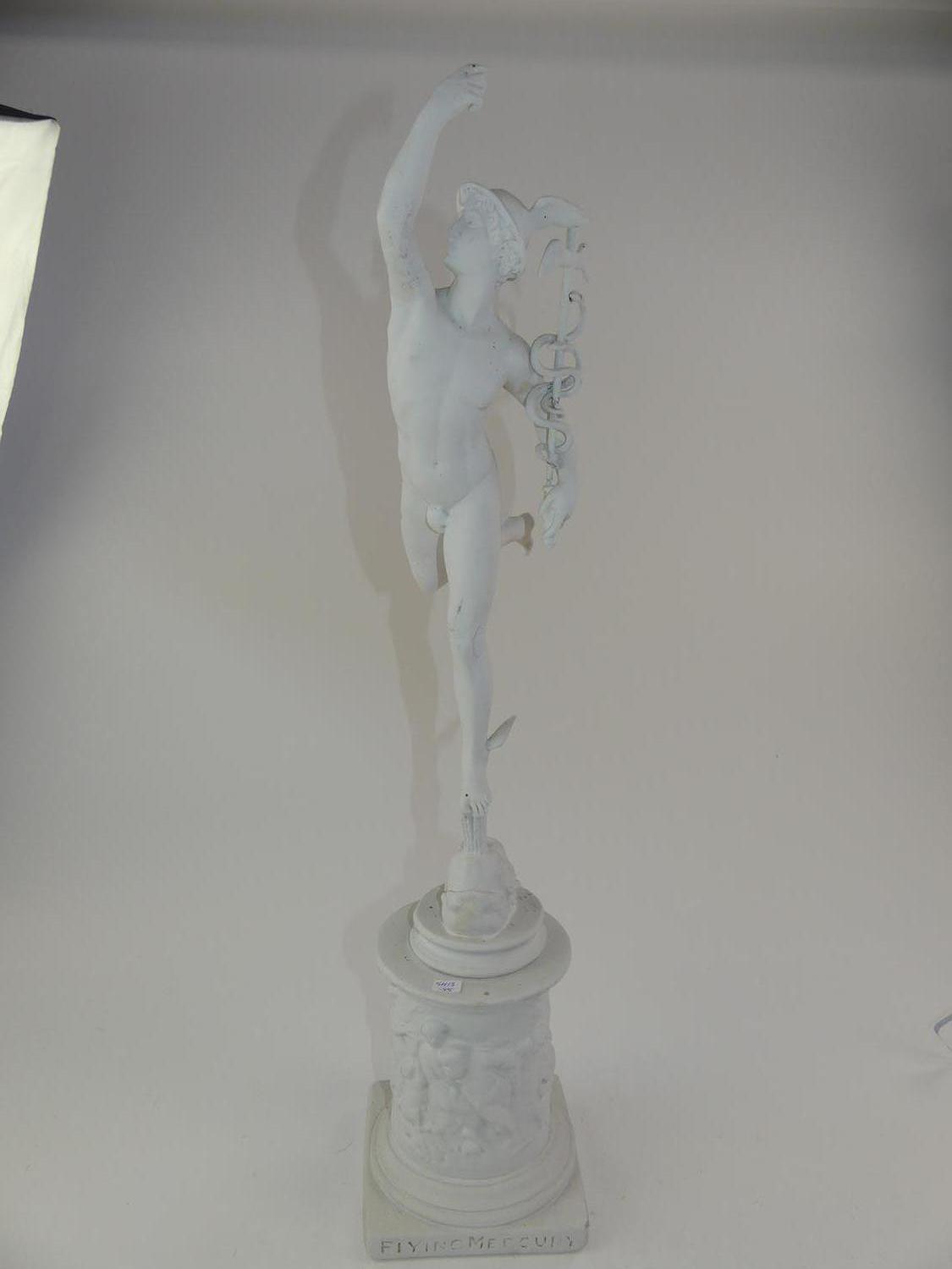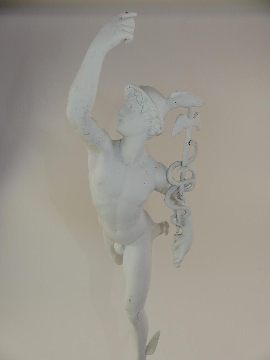 painted cast figure of murcury on pedestal, ht. 30"