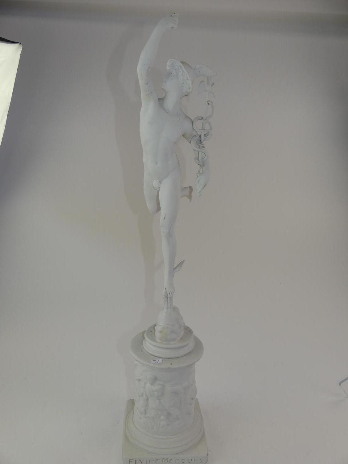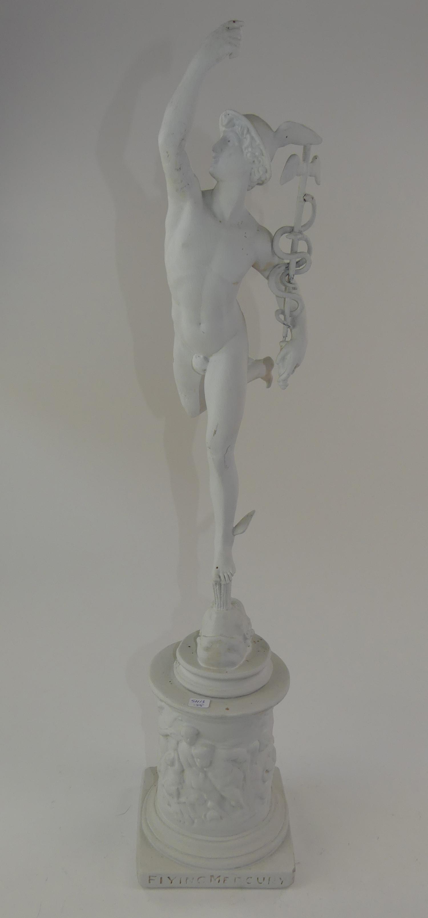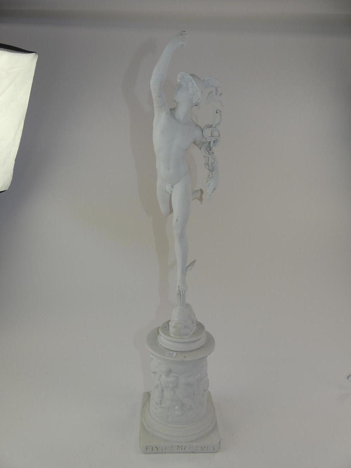 painted cast figure of murcury on pedestal, ht. 30"