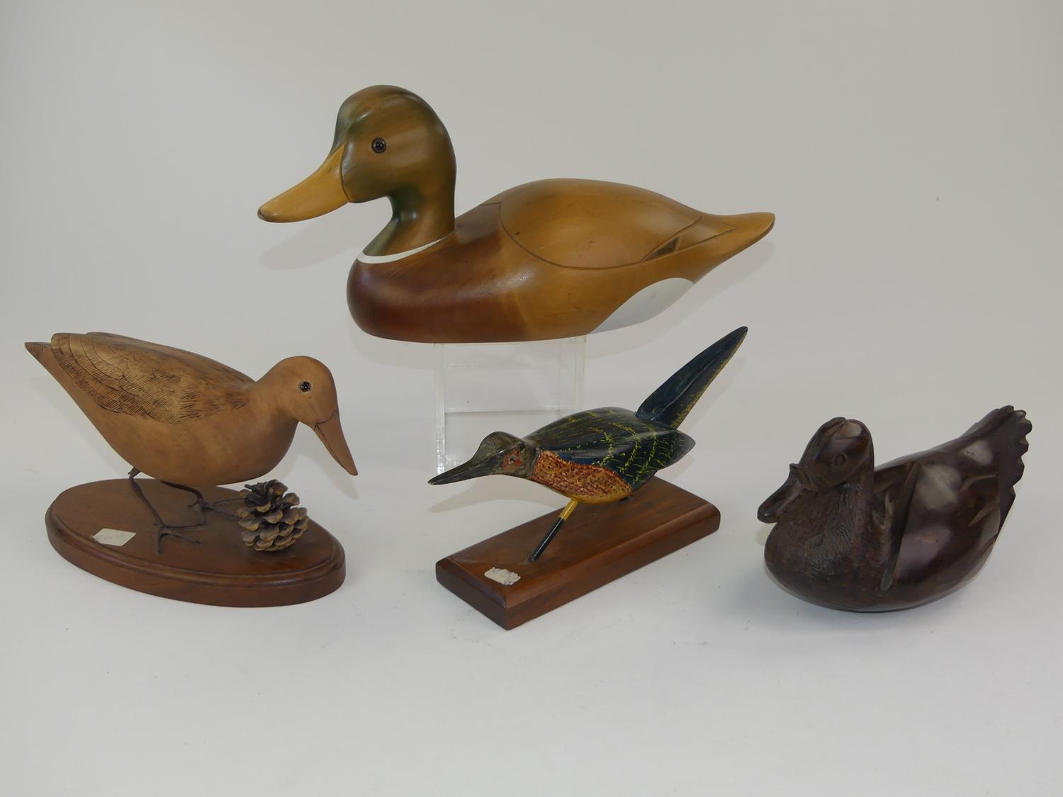 four decorative carved bird decoys