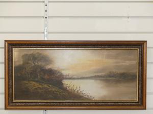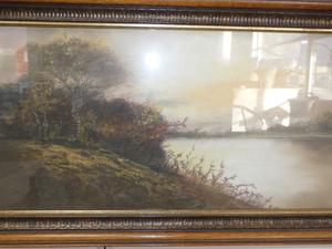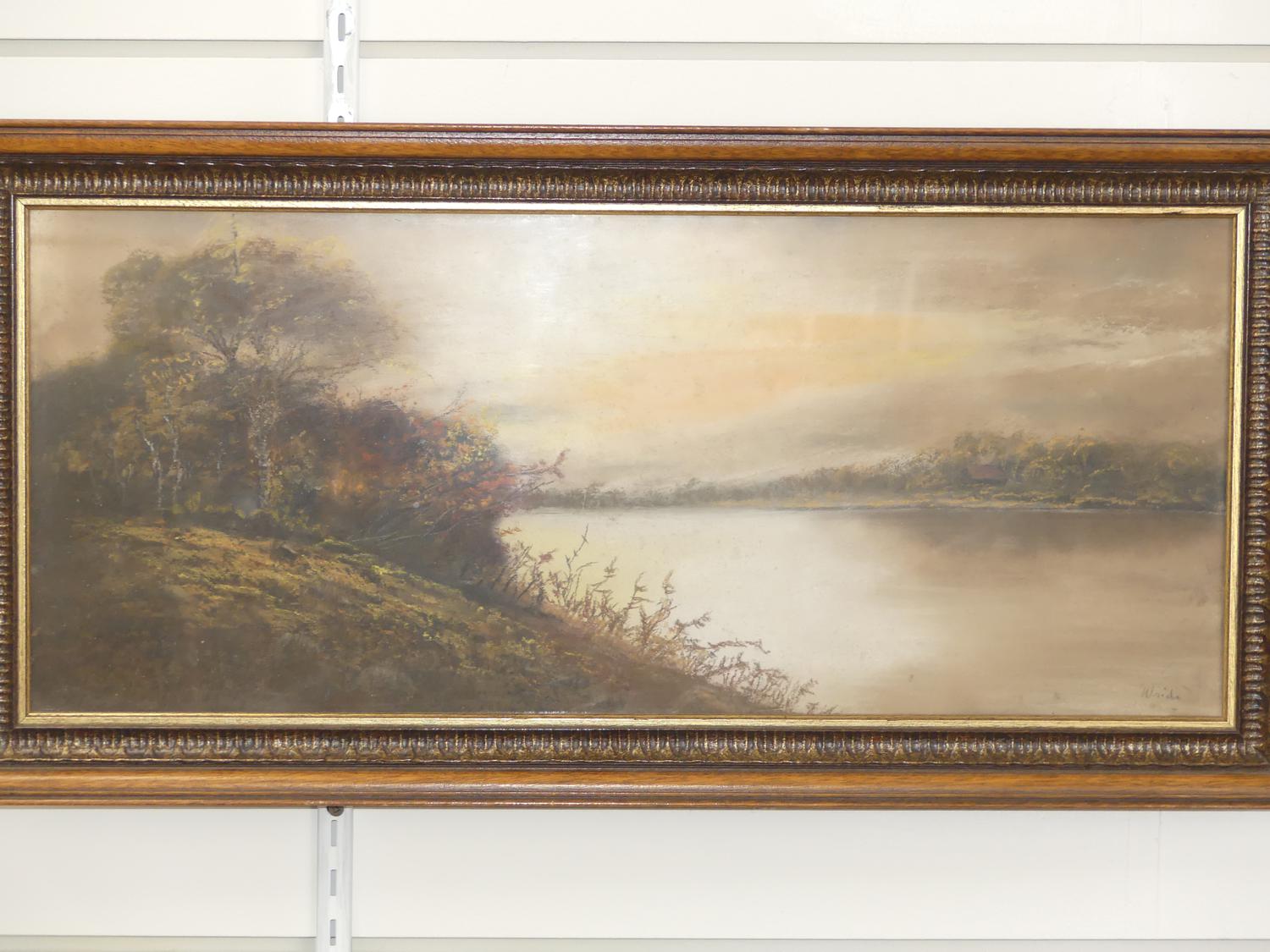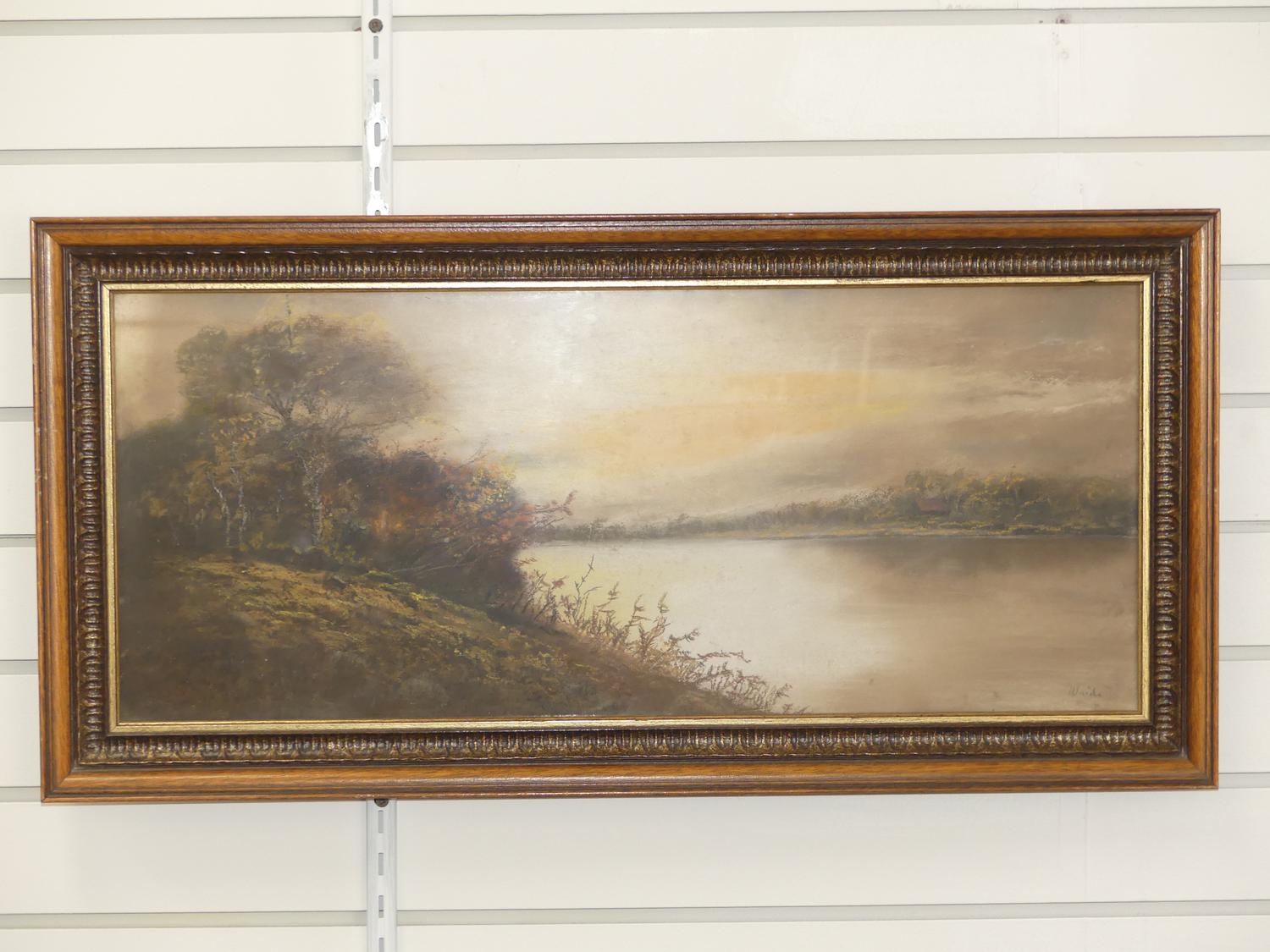 maisie wride (1892-1973), pastel, 10" x 23", "landscape with river"