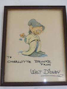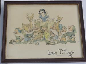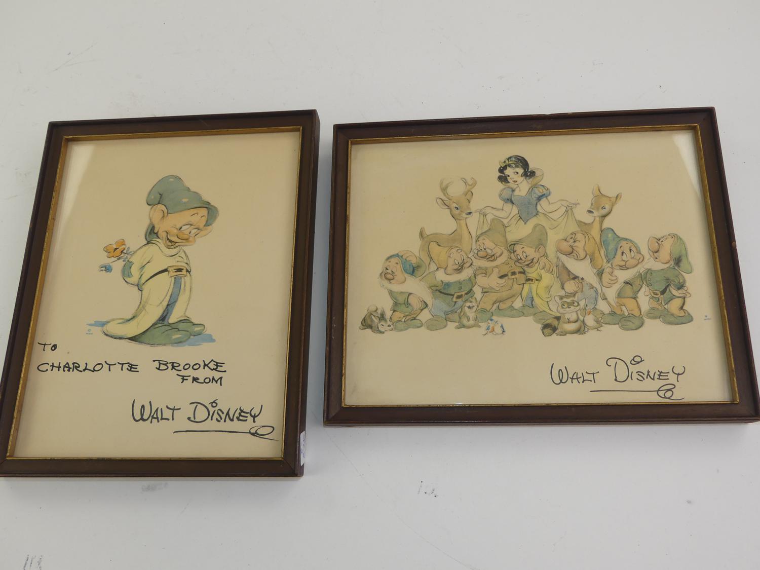 two vintage framed snow white and the seven dwarfs prints, personalized and signed by walt disney, overall 10" x 8"
