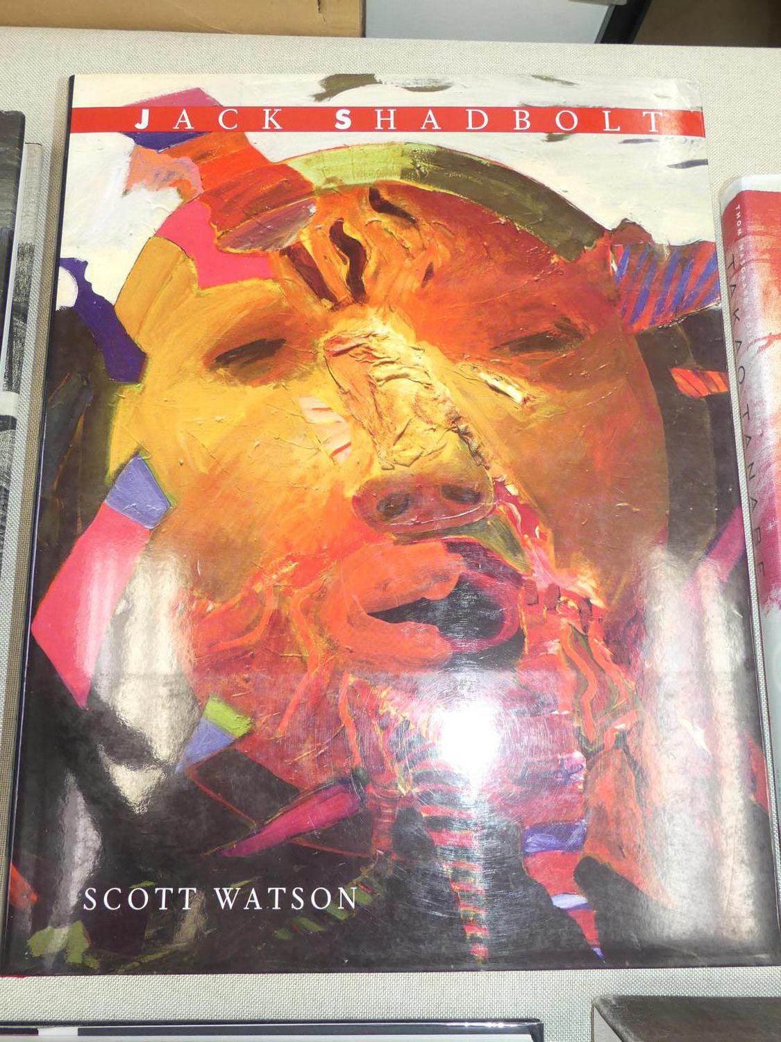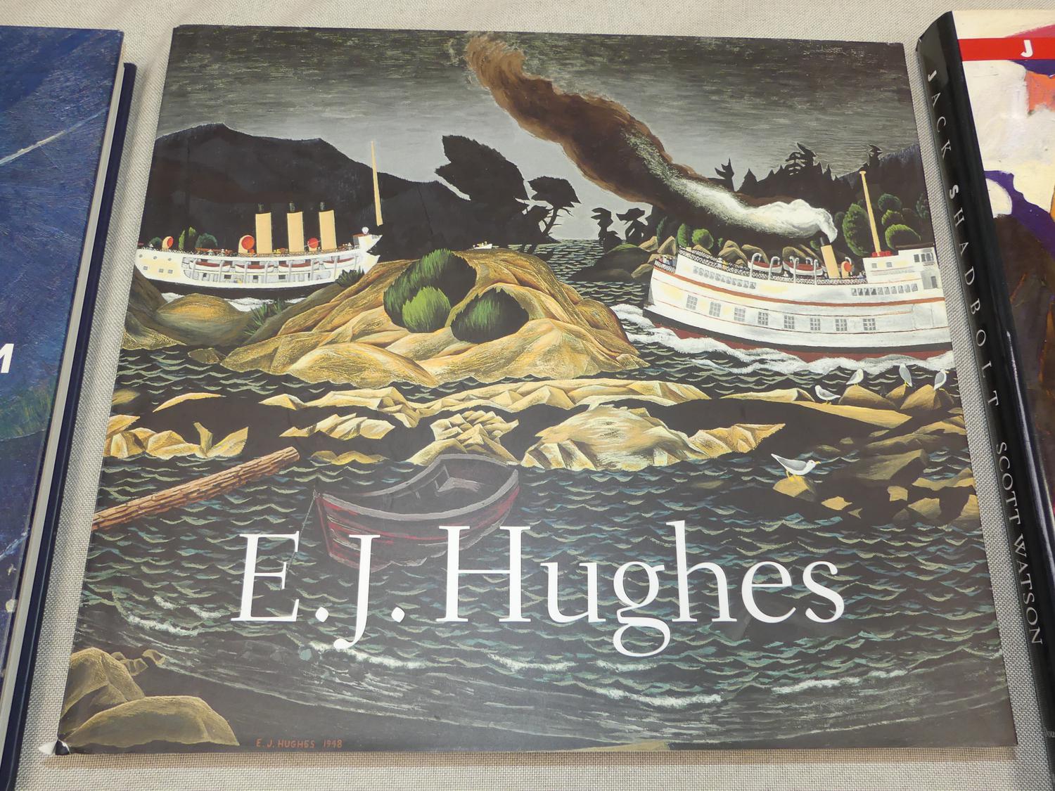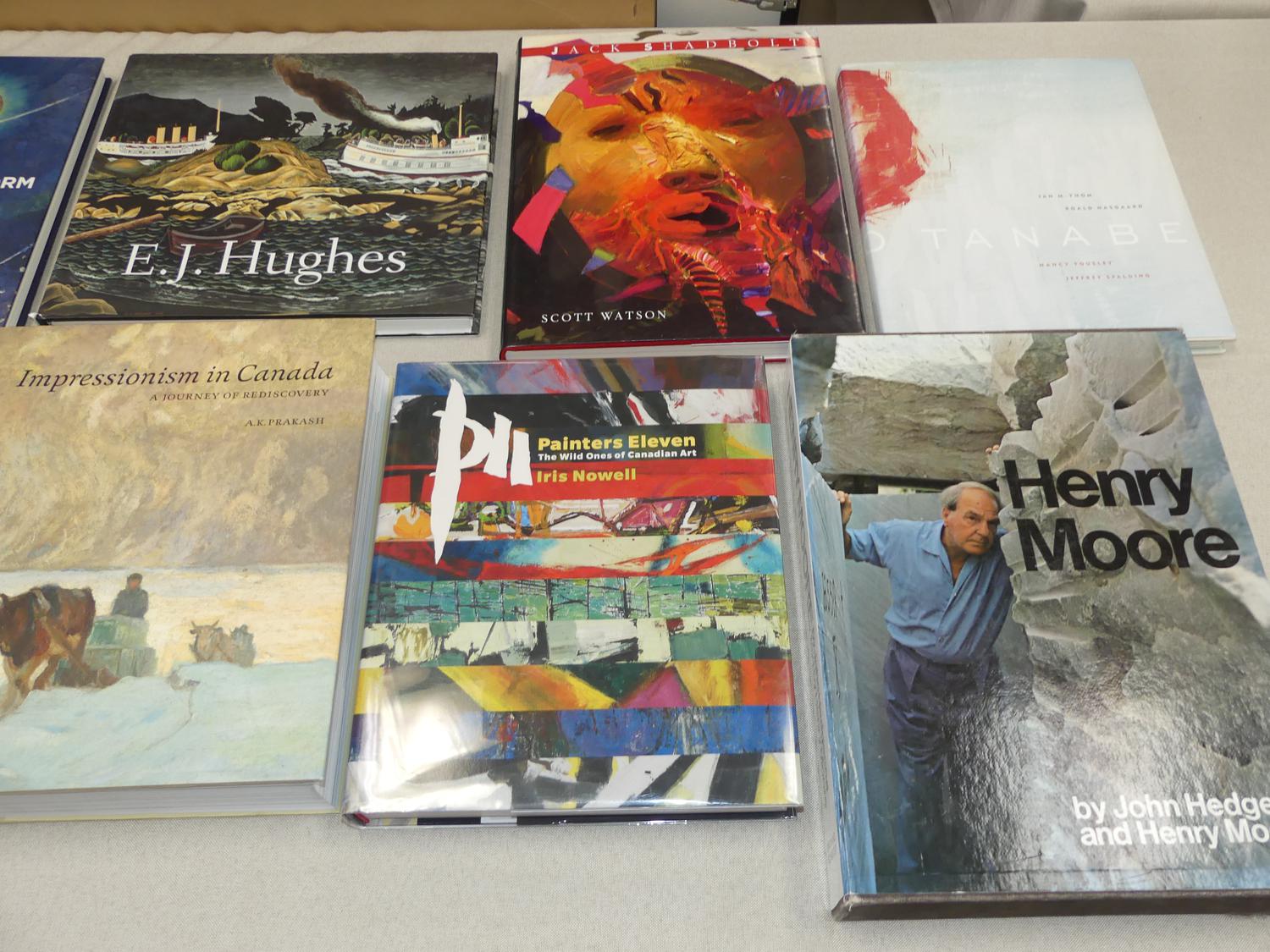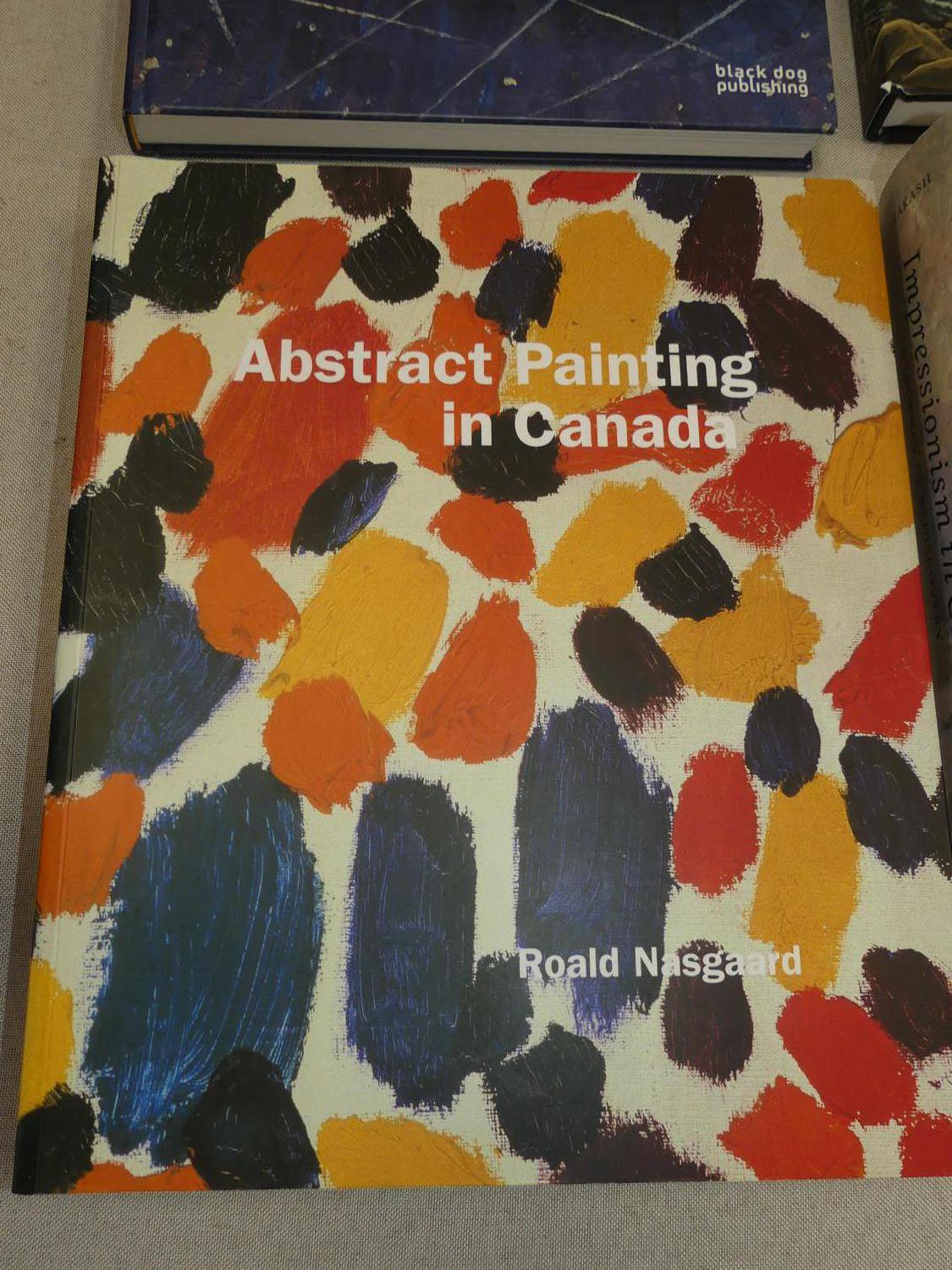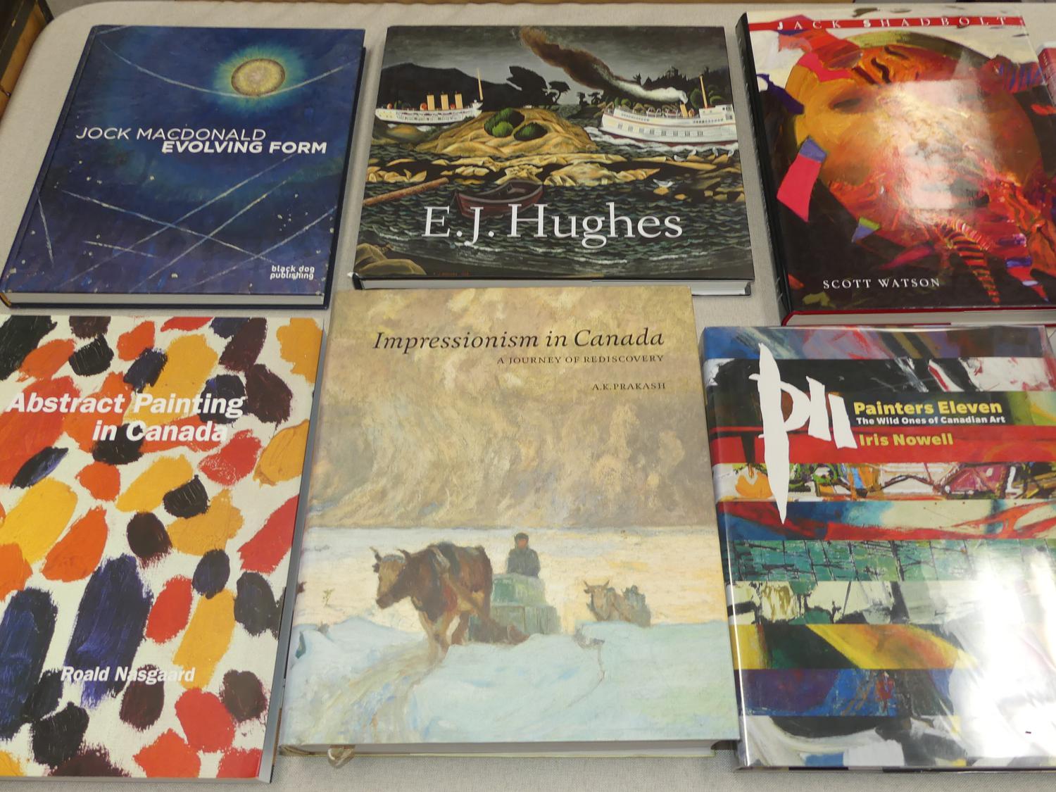 8 books: "abstract painting in canada" by ronald nasgaard, "impressionism in canada" by a.k. prakash, "painters eleven - the wild ones of canadian art" by iris nowell, "e.j. hughes" by ian thom, "jack shadbolt" by scott watson, "jock macdonald - evolving