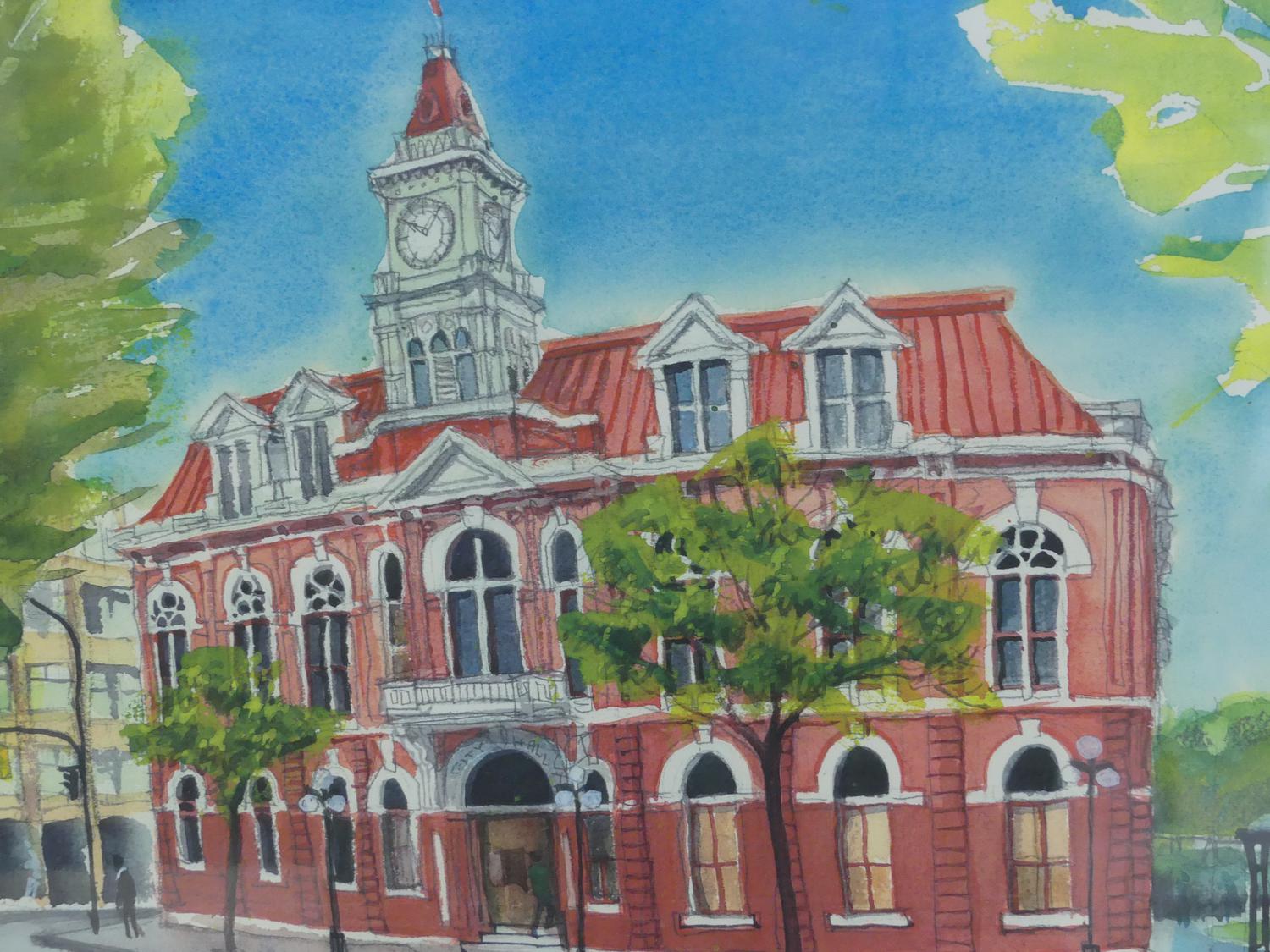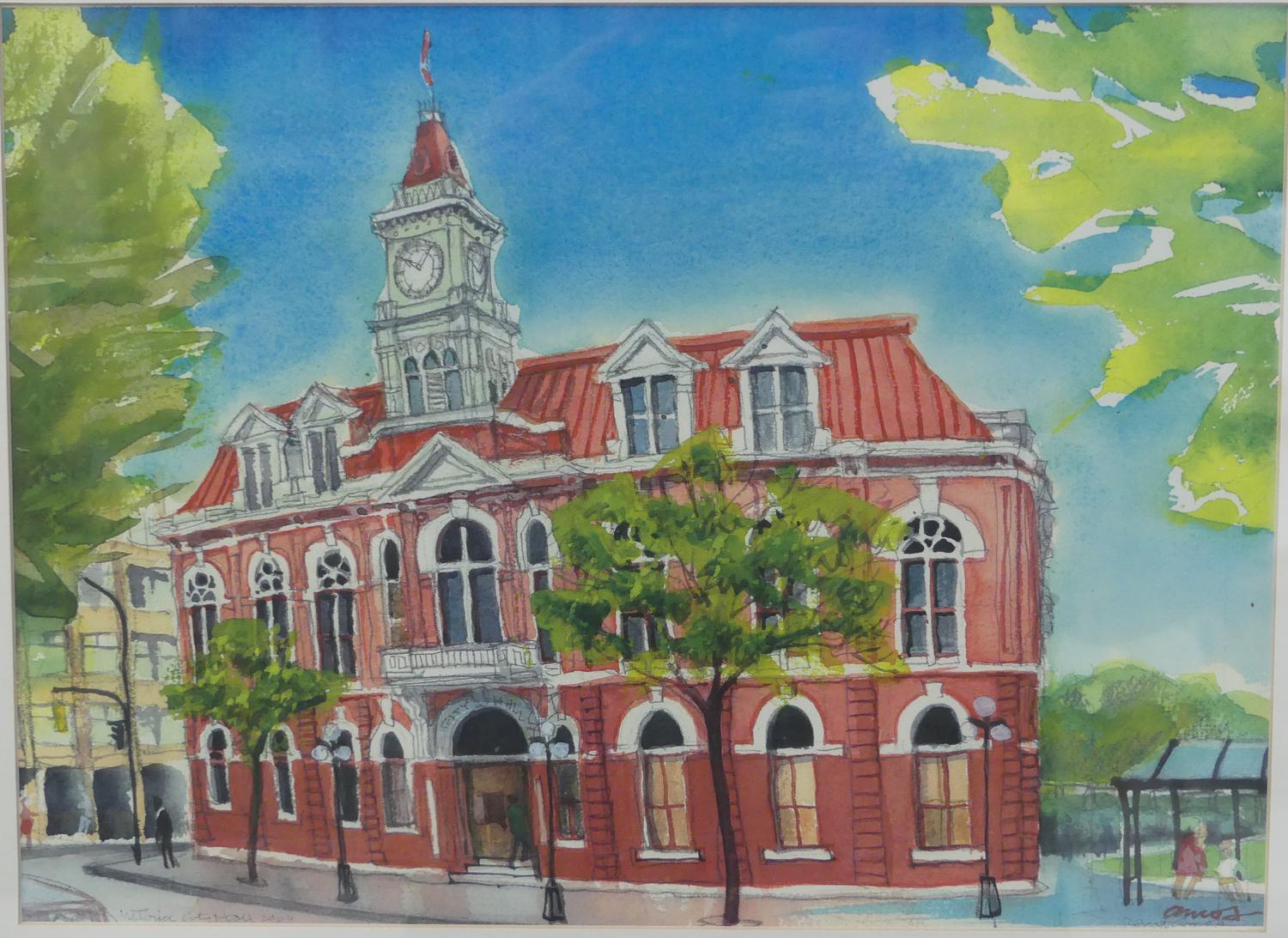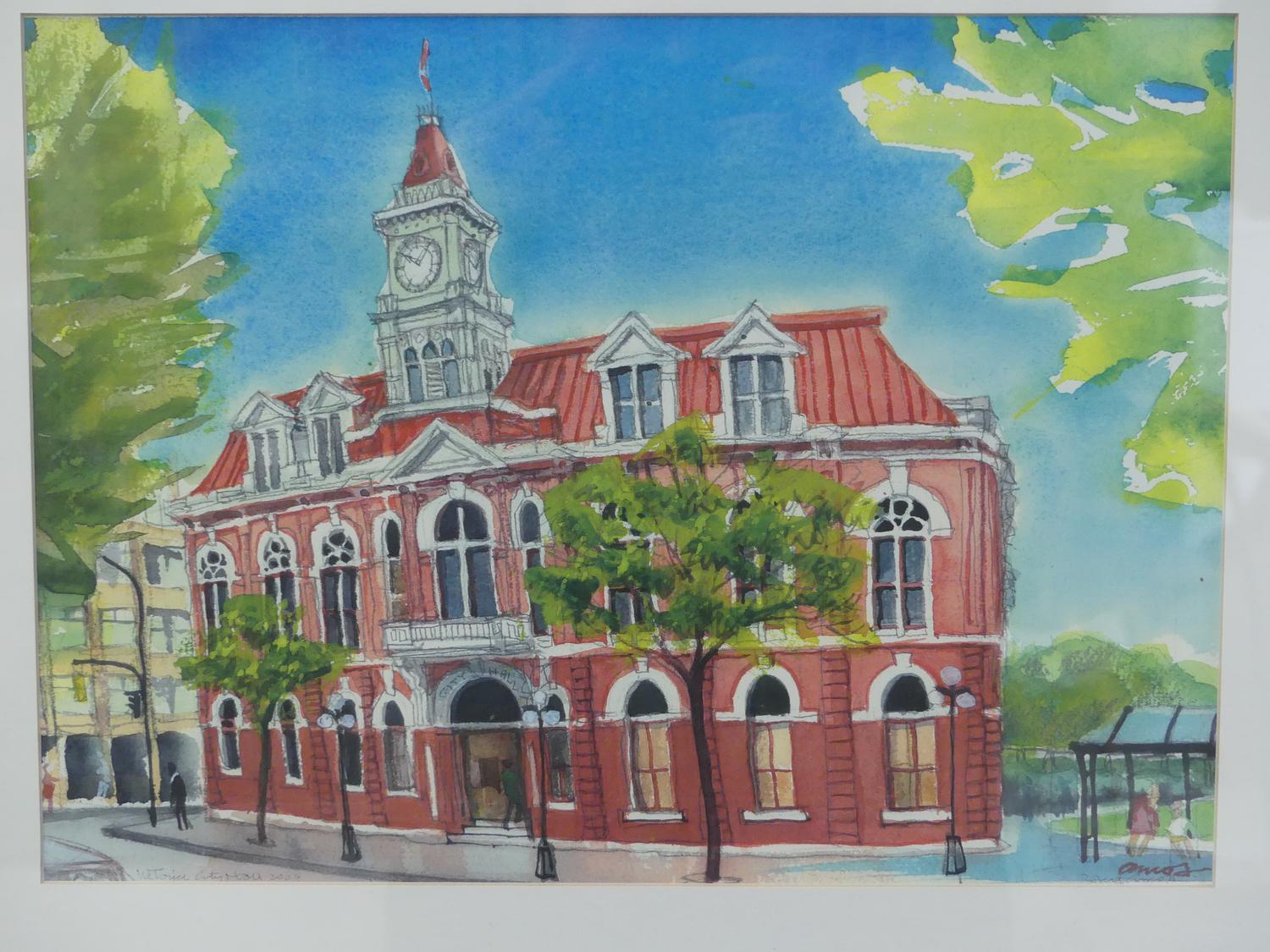 robert edward amos (b.1950), watercolour, dated 2003, 10" x 14", "victoria city hall"