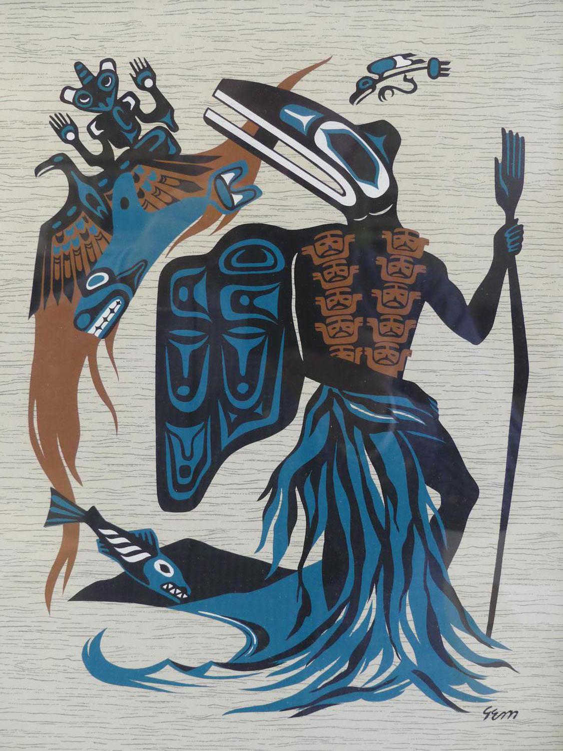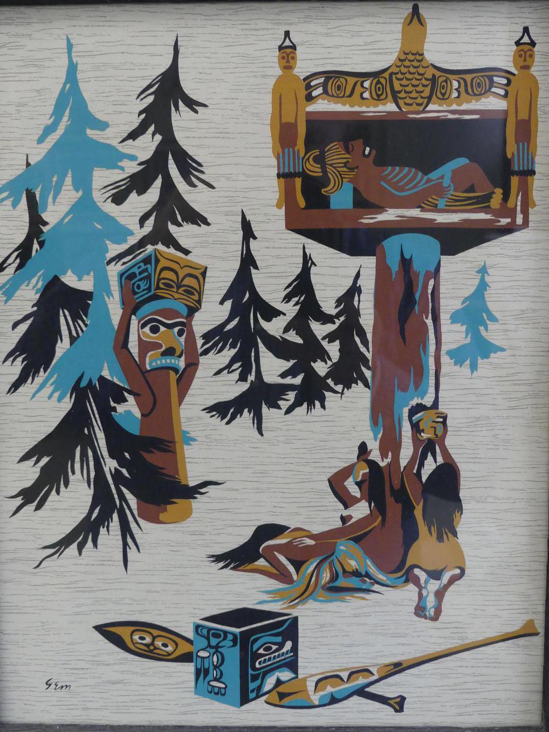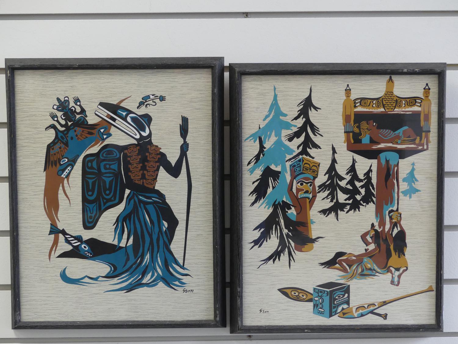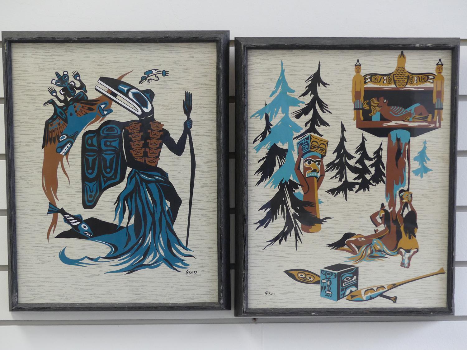 gem- pair of colour prints, 13 1/2" x 10", "west coast native scenes"