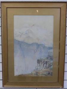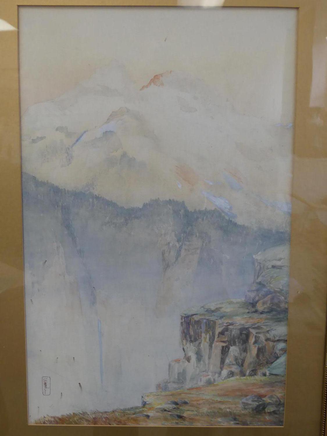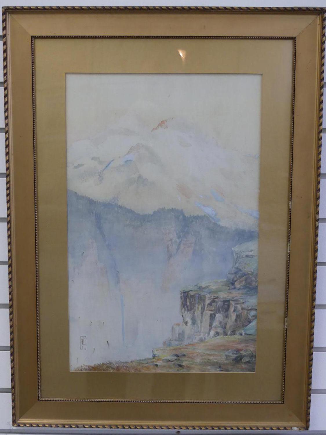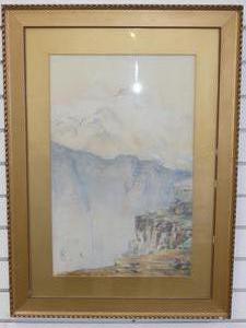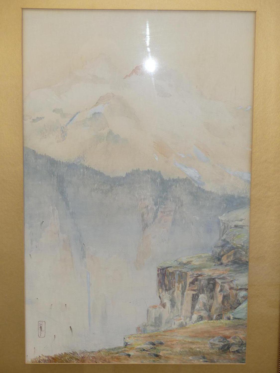 indistinctly signed watercolour, 20" x 12 1/2", "mountain landscape"