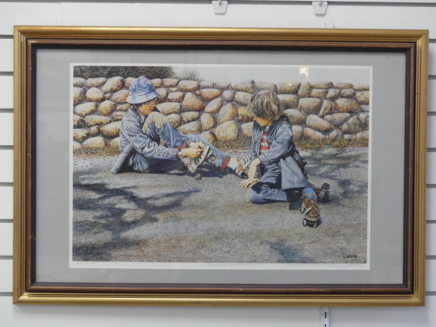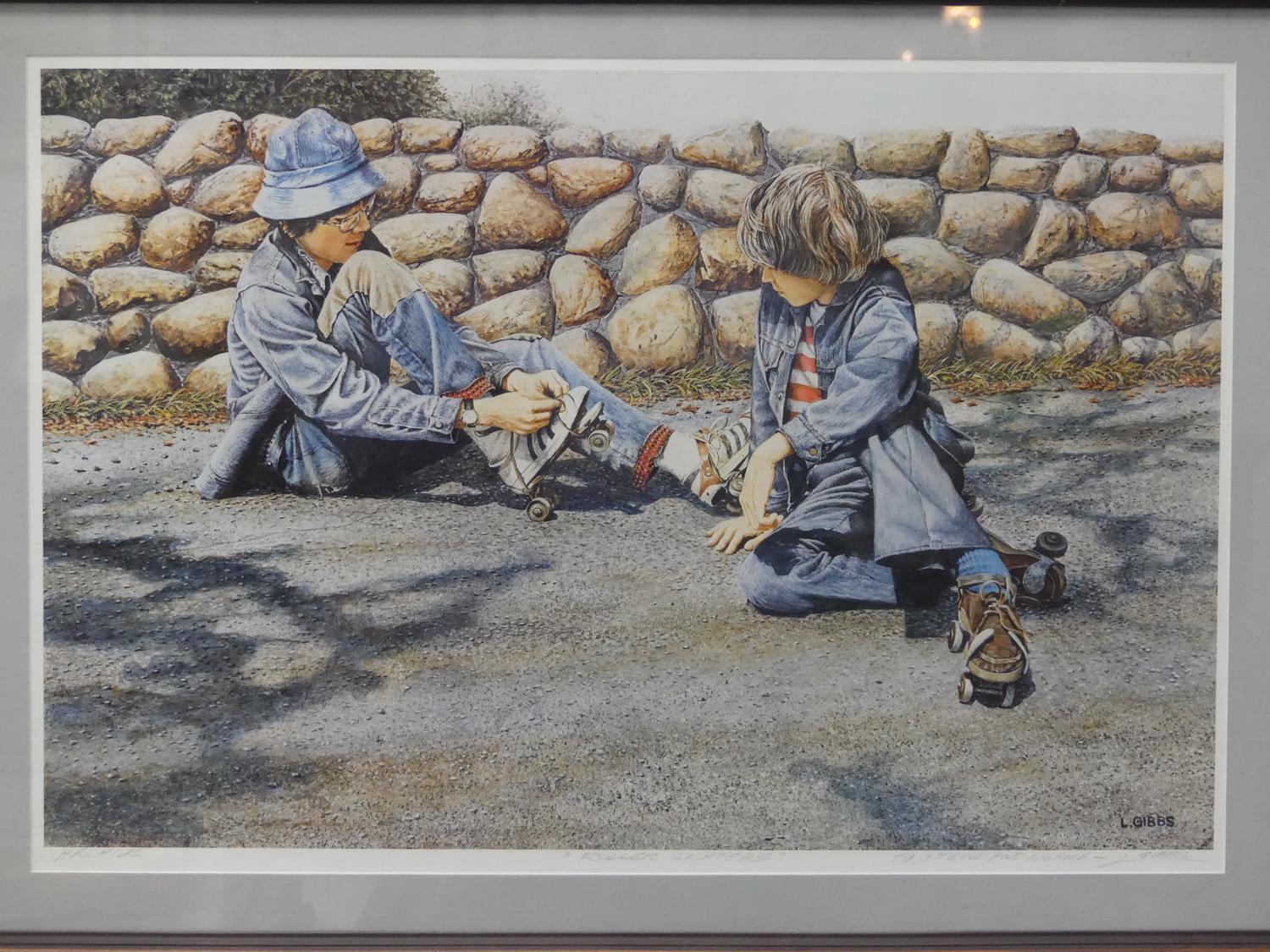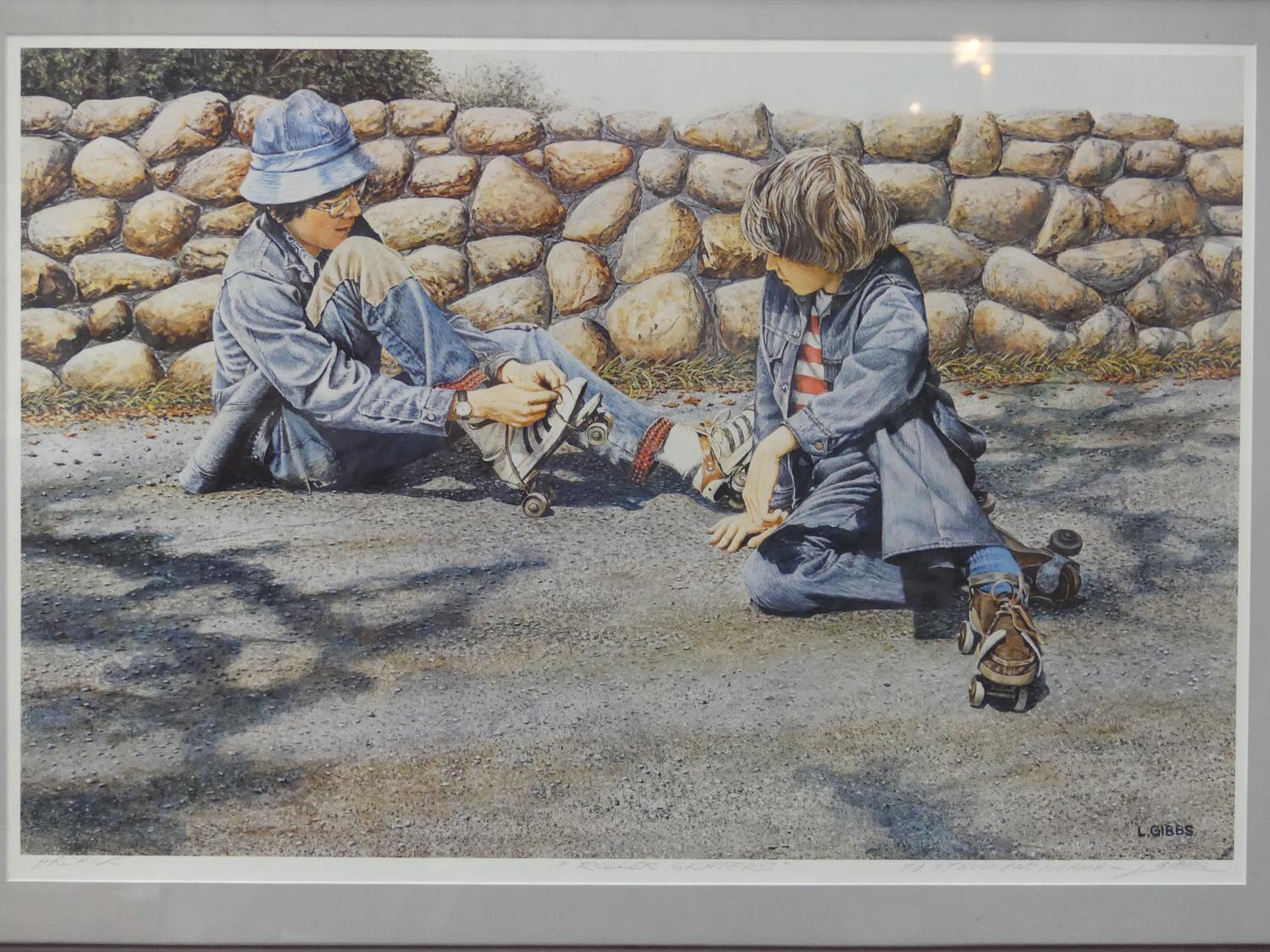 leonard gibbs (1929-2010), archive print, 16" x 24", "roller skaters"